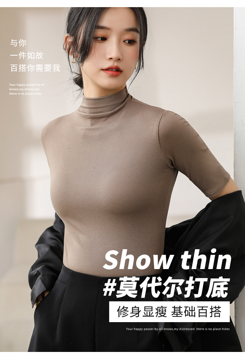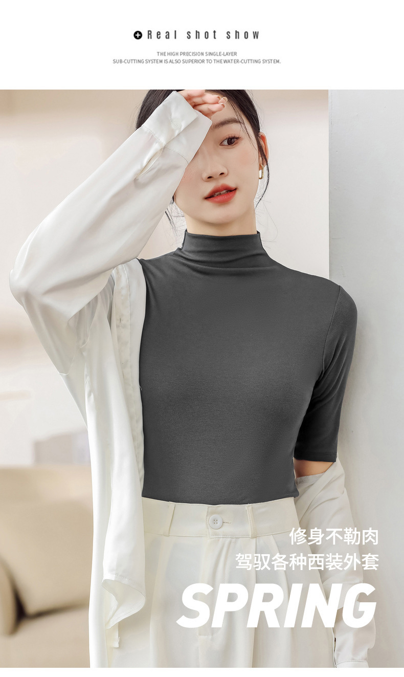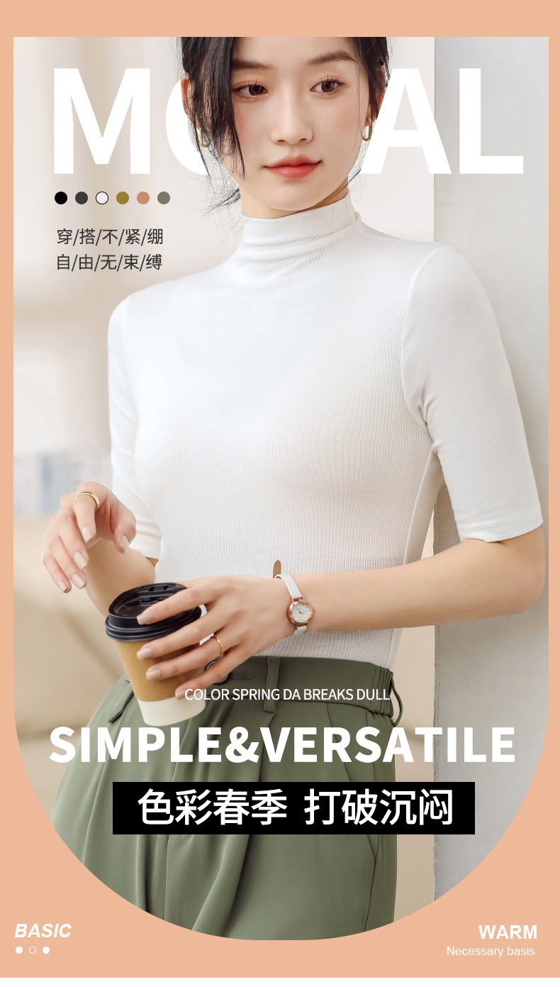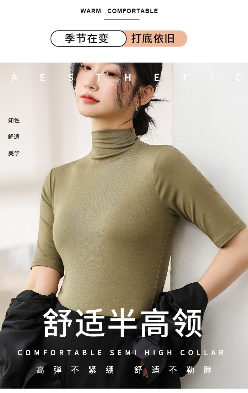 H999 봄 여름 신상 모달 5부소매 슬림핏 베이스 레이어 반팔 티셔츠 중간소매 다용도 솔리드 컬러 여성용 상의