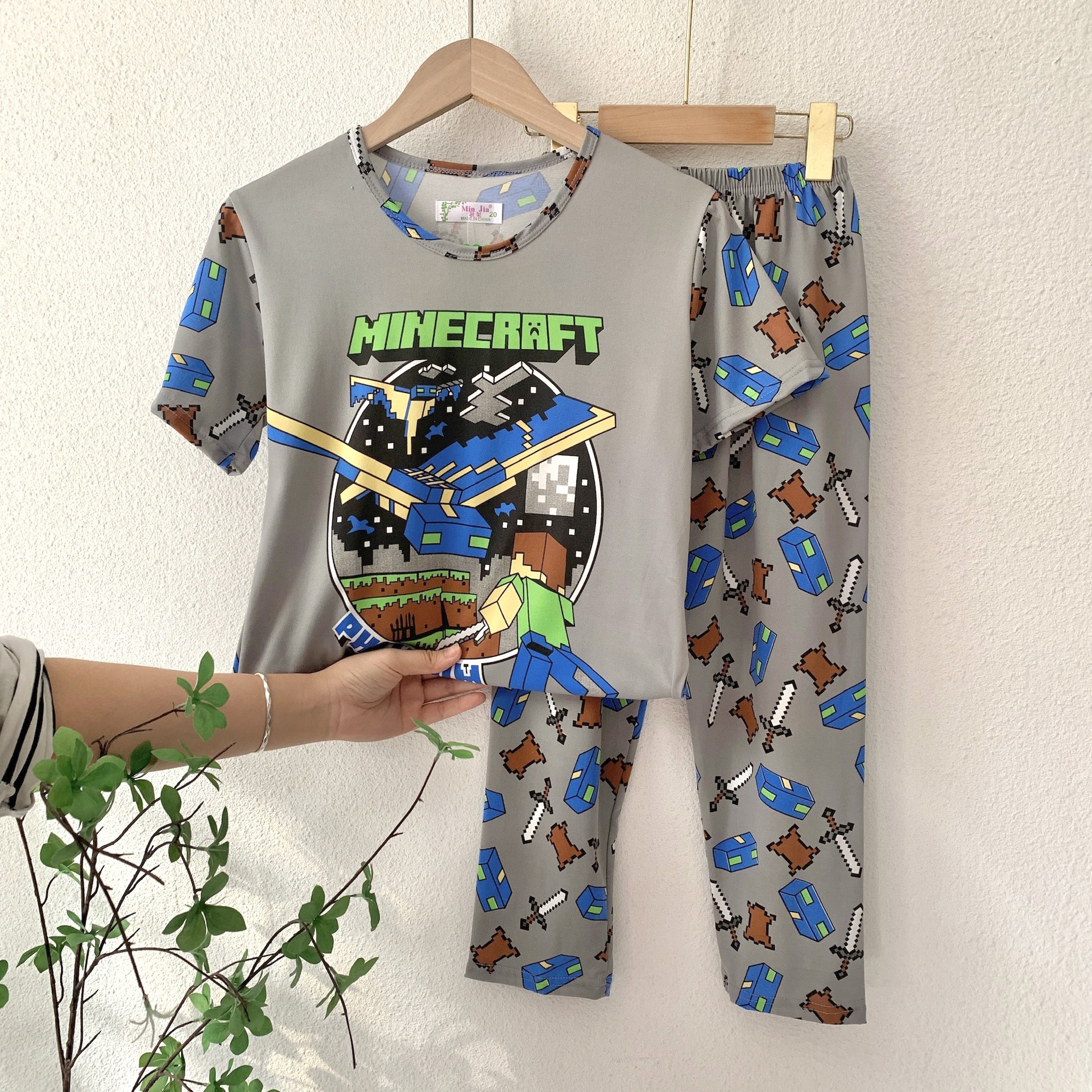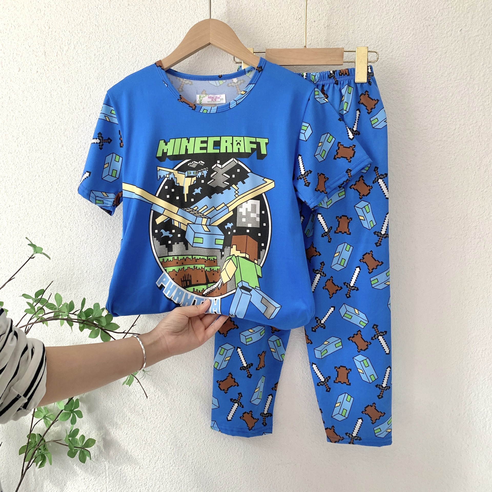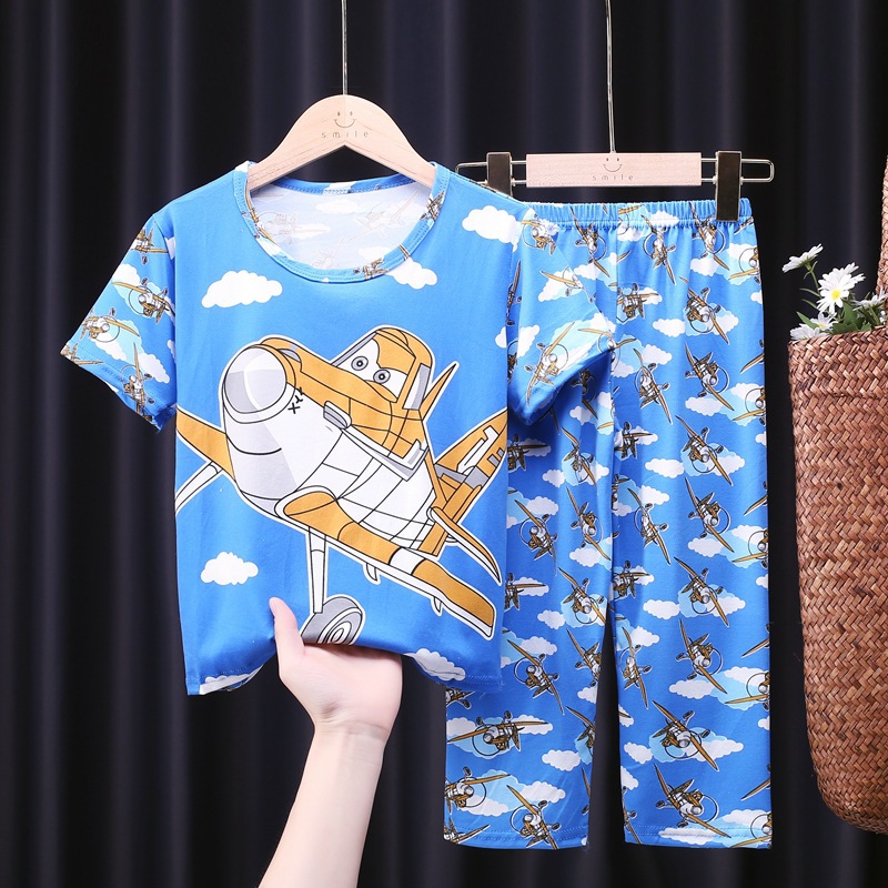 어린이 잠옷, 남아 여름용 얇은 잠옷, 여아 반팔 긴바지, 남아 아동 여름용 홈웨어, 속건성스토어 가기