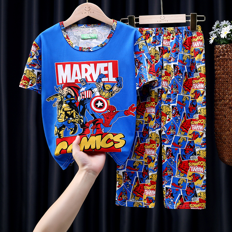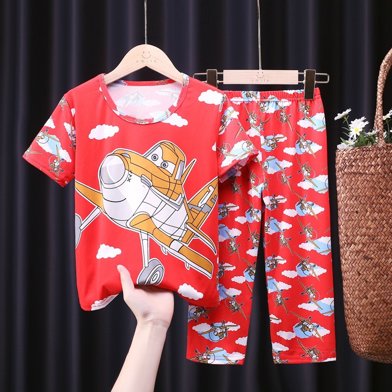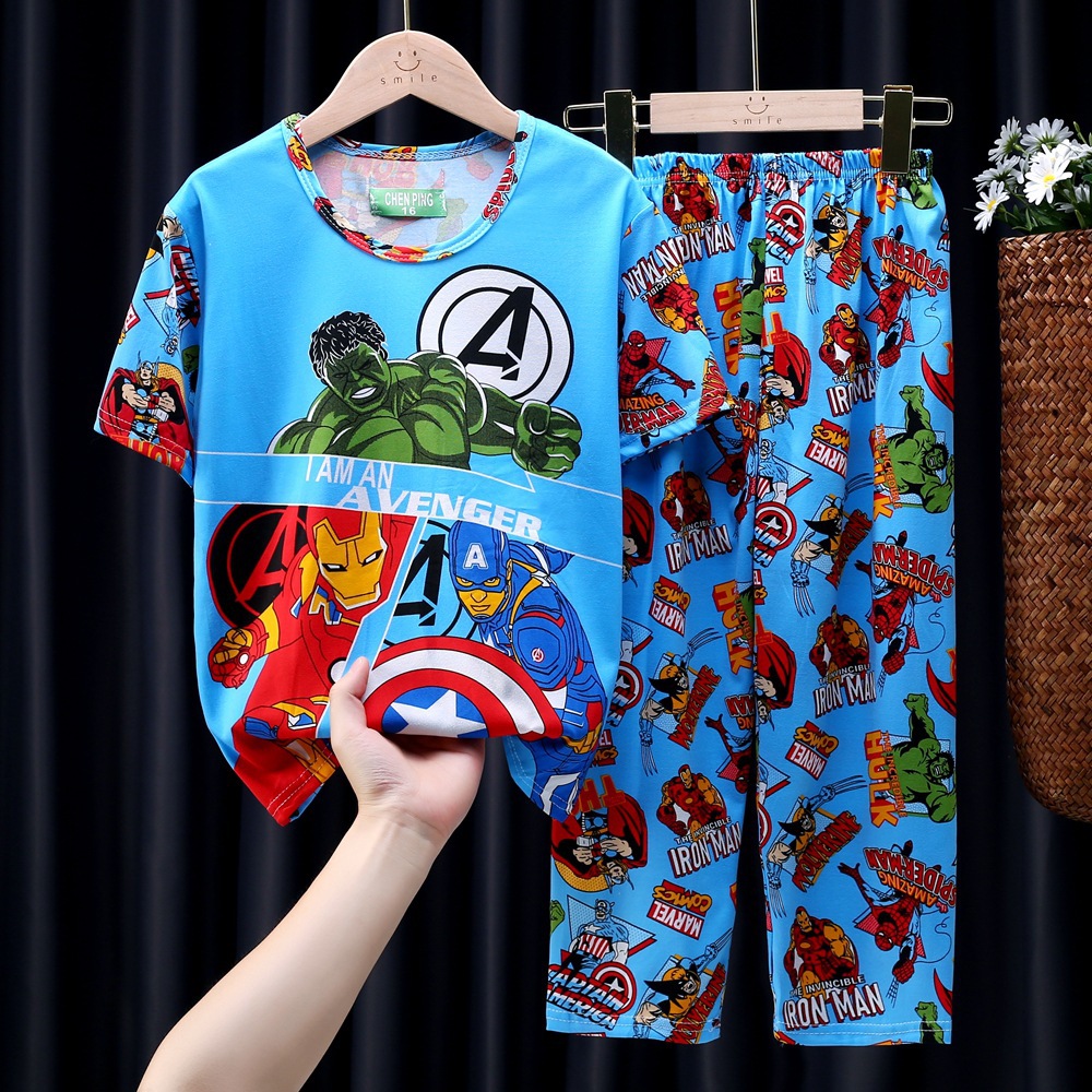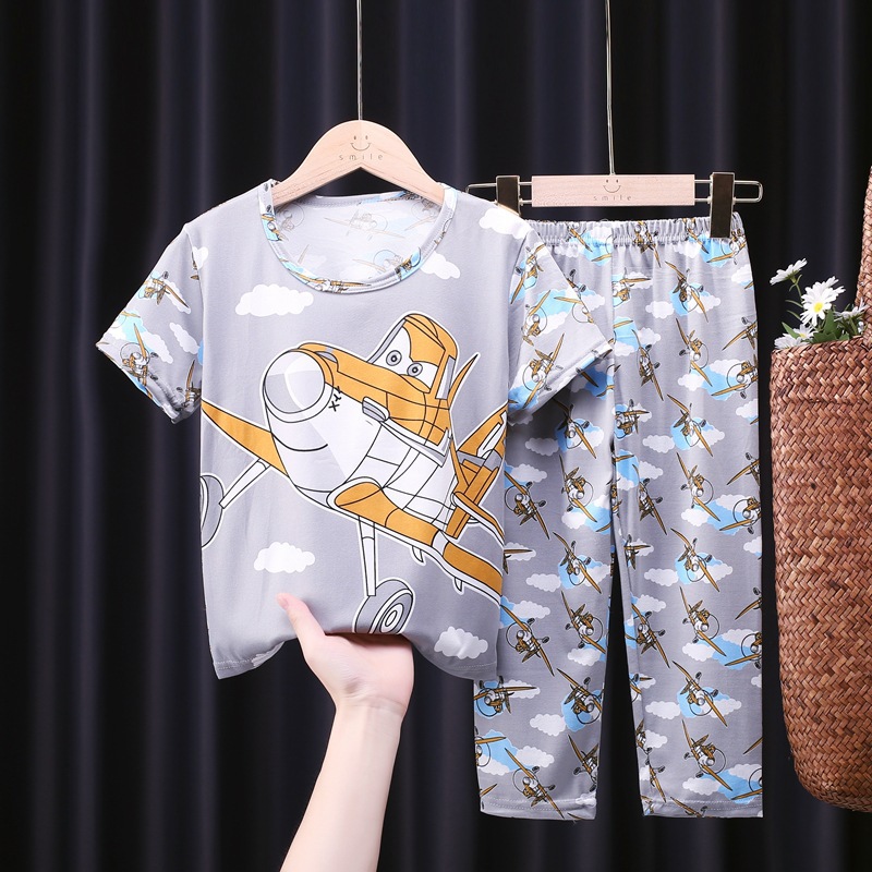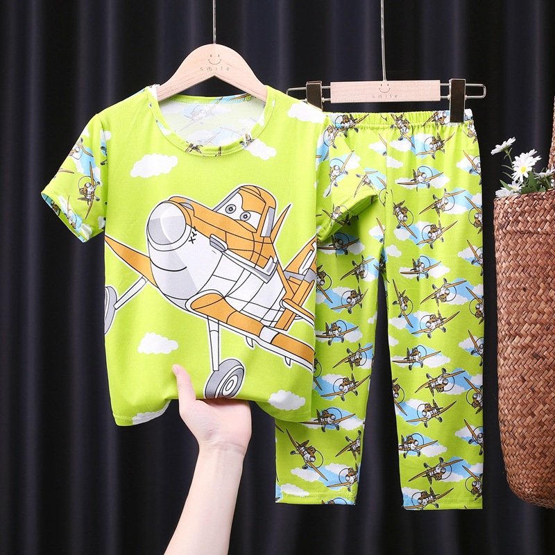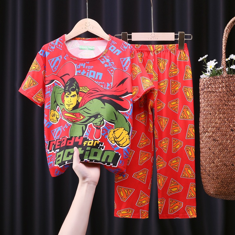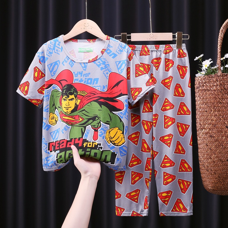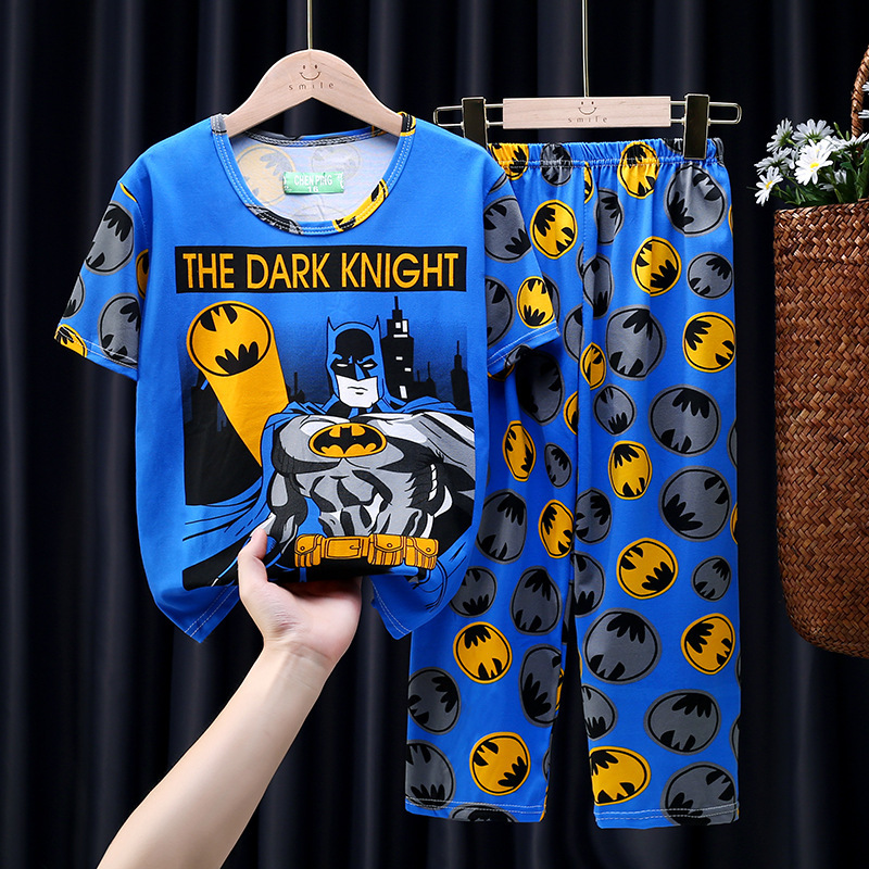 어린이 잠옷, 남아 여름용 얇은 잠옷, 여아 반팔 긴바지, 남아 아동 여름용 홈웨어, 속건성