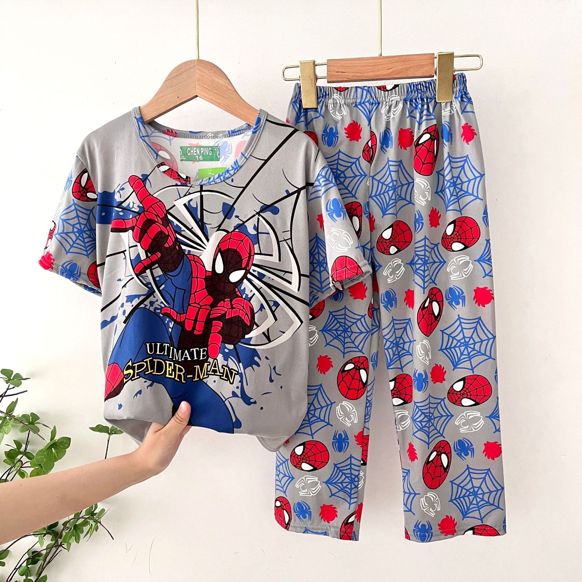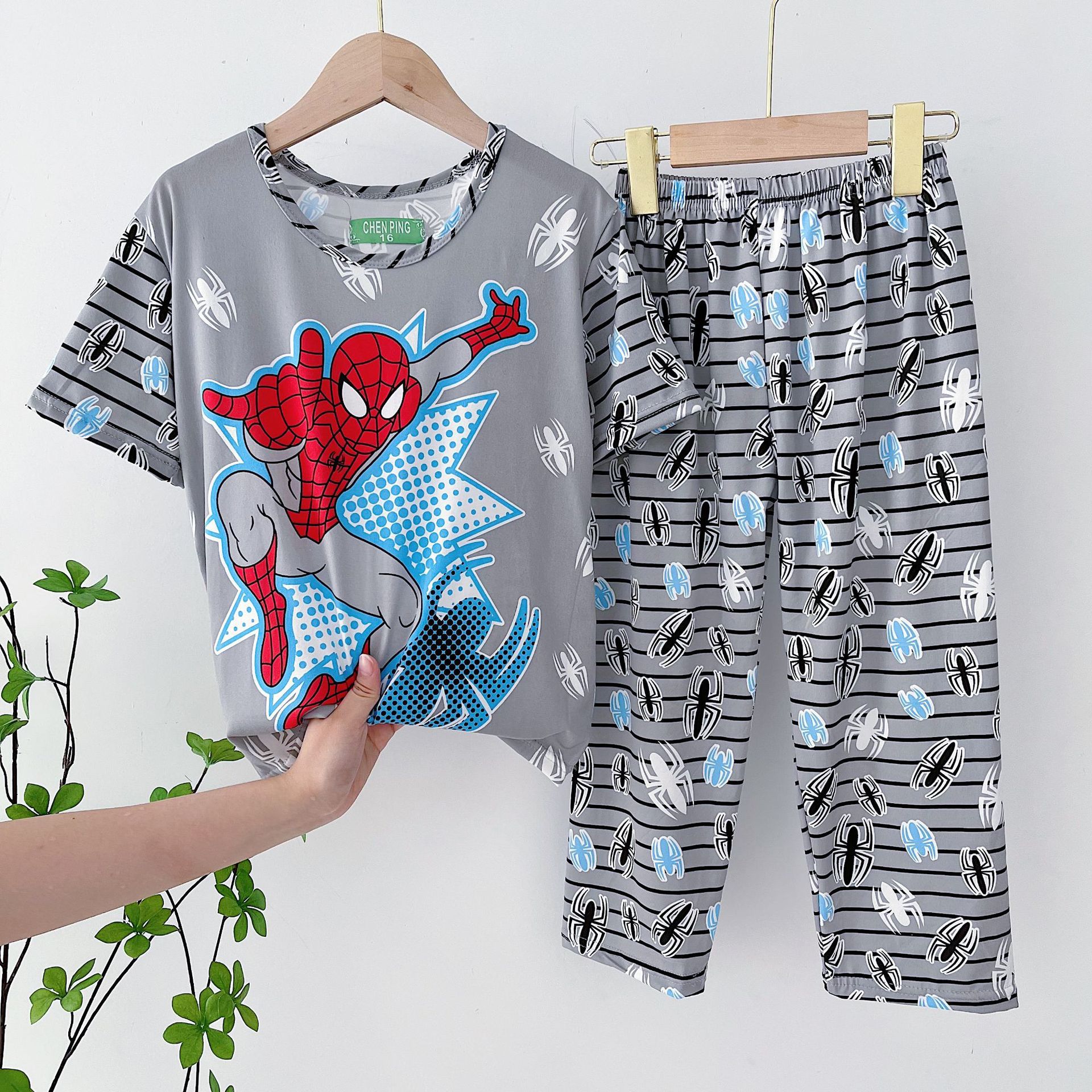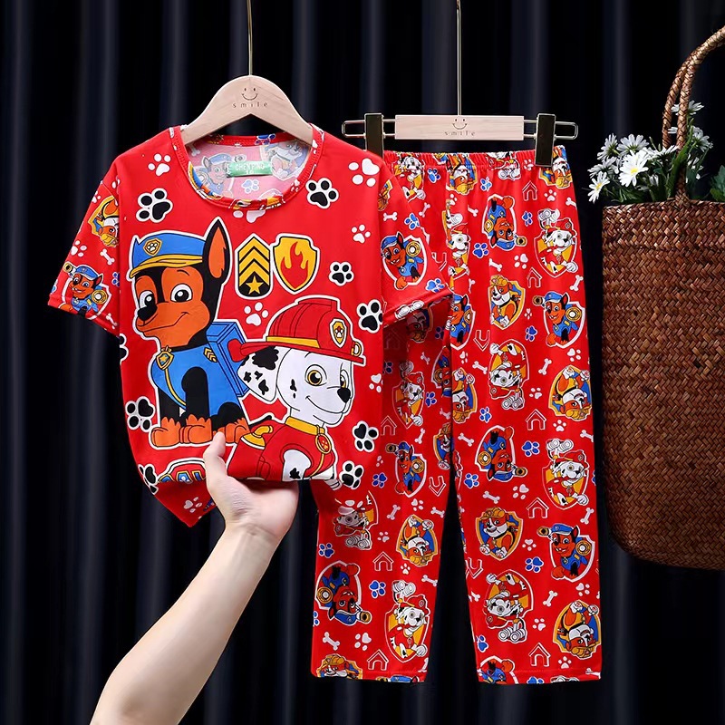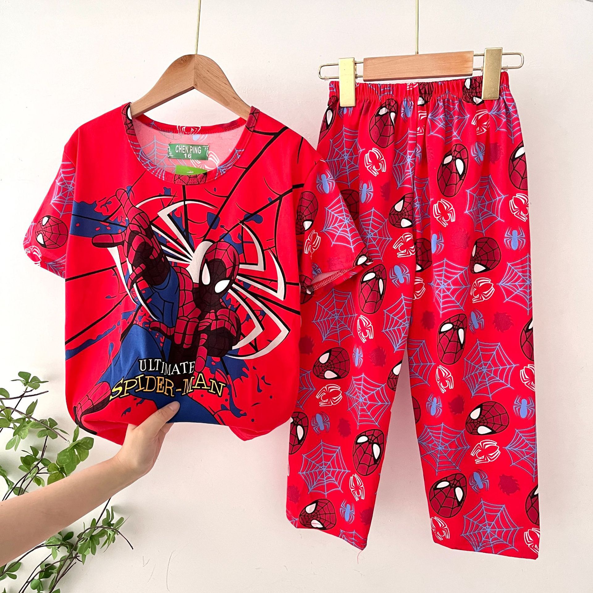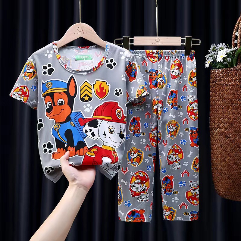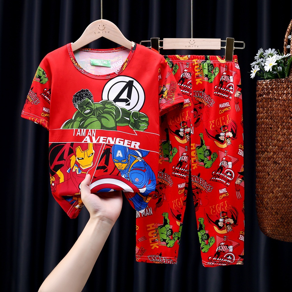 어린이 잠옷, 남아 여름용 얇은 잠옷, 여아 반팔 긴바지, 남아 아동 여름용 홈웨어, 속건성