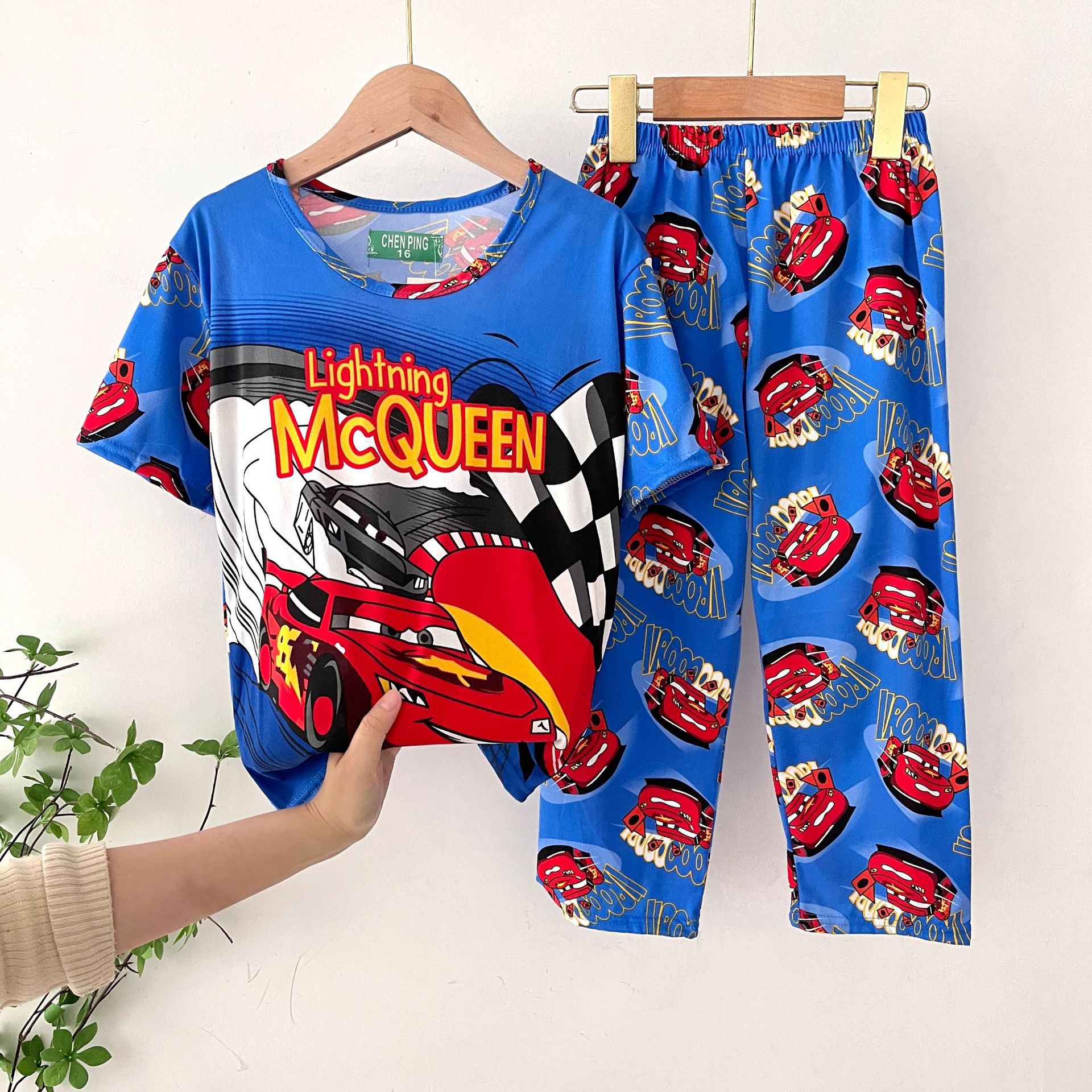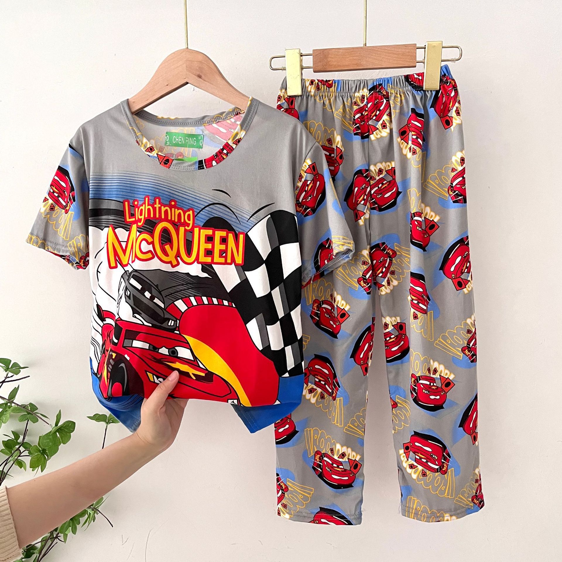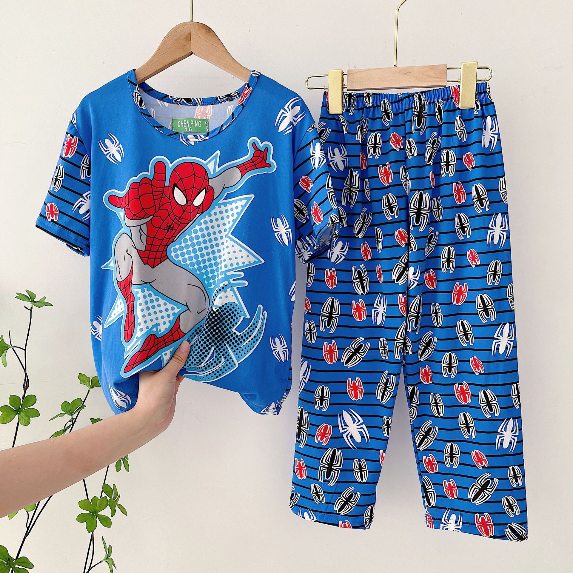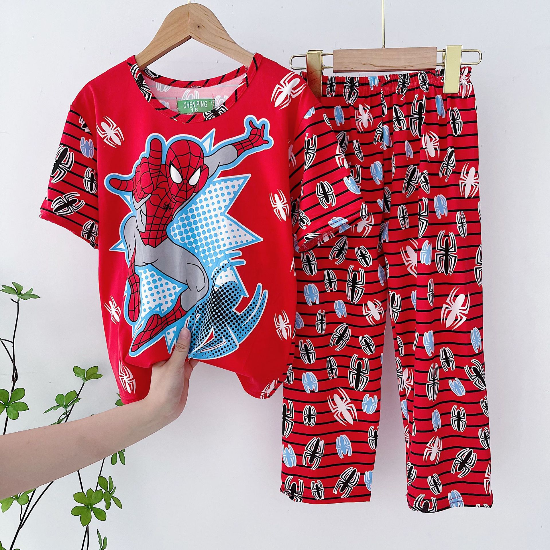 어린이 잠옷, 남아 여름용 얇은 잠옷, 여아 반팔 긴바지, 남아 아동 여름용 홈웨어, 속건성