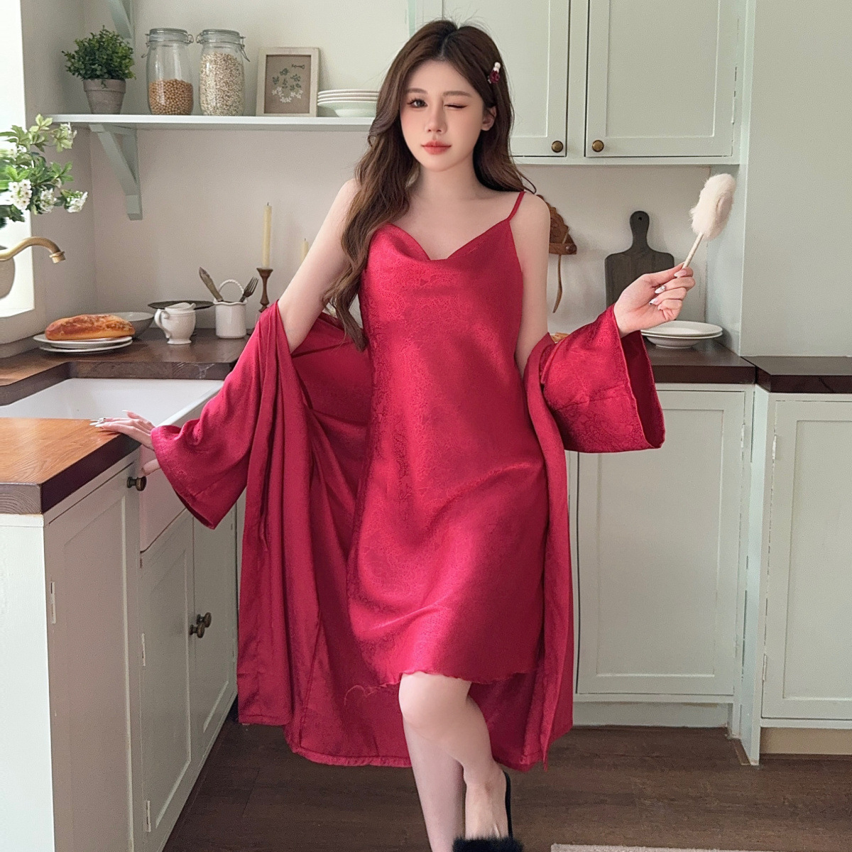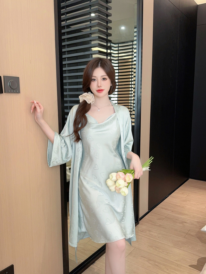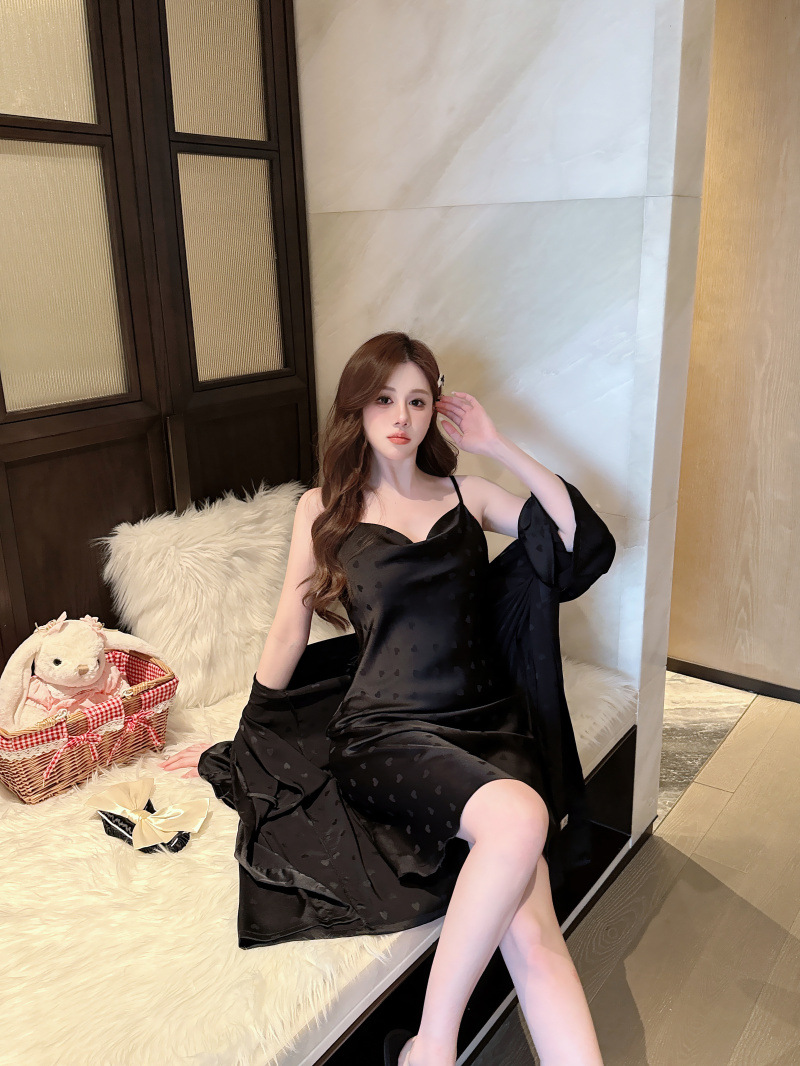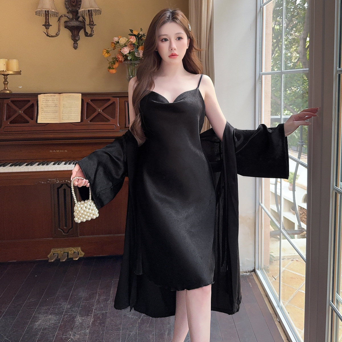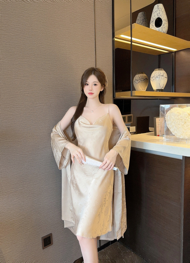여름 하이 엔드 아이스 실크 나이트 가운 투피스 잠옷 여성용 얇은 자카드 칼라 순수한 욕망 스타일 홈 옷스토어 가기