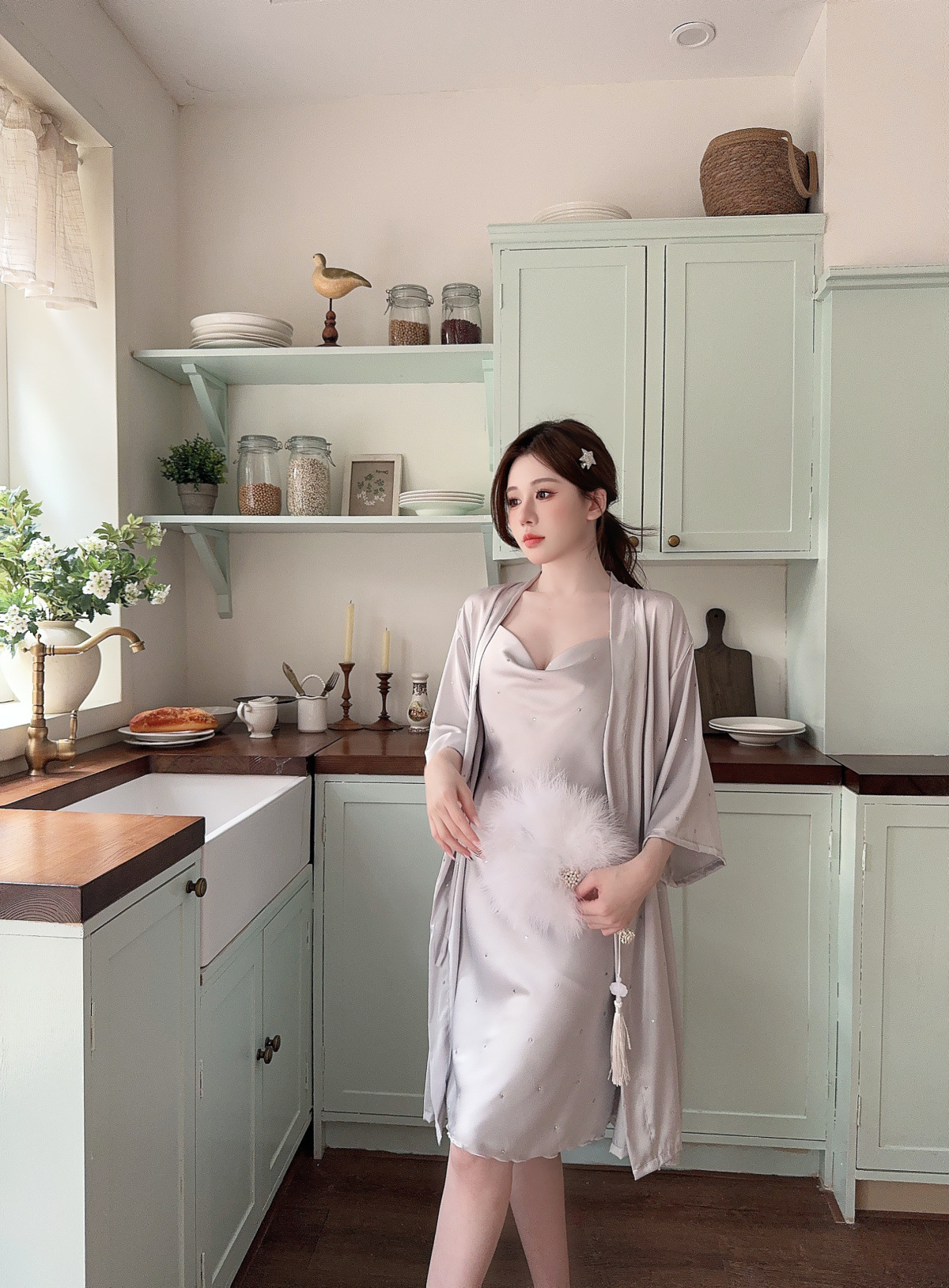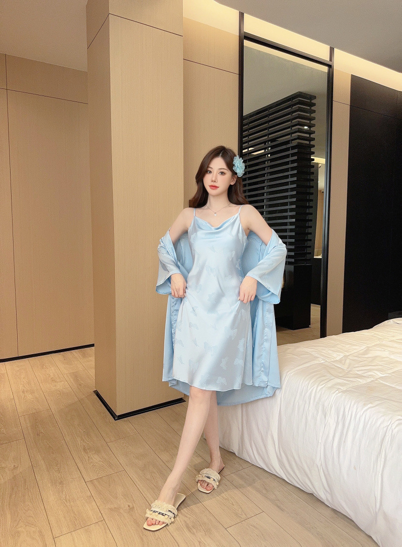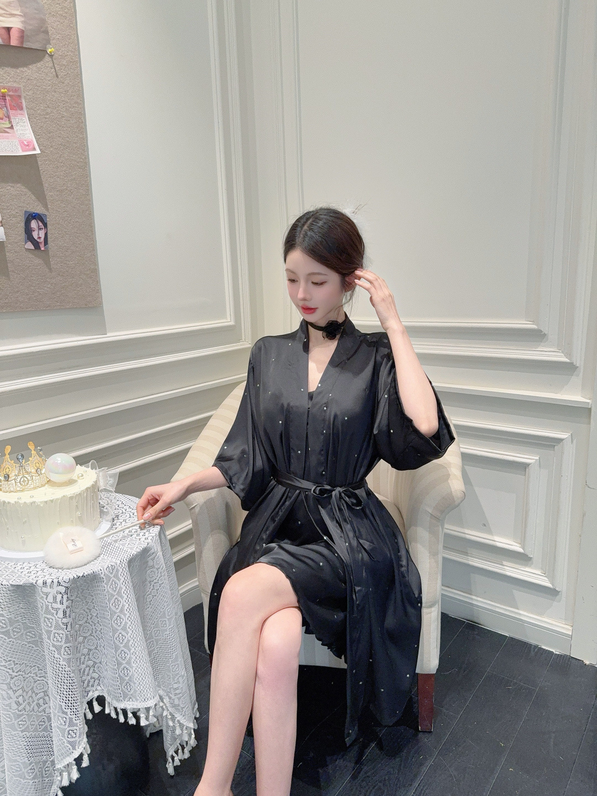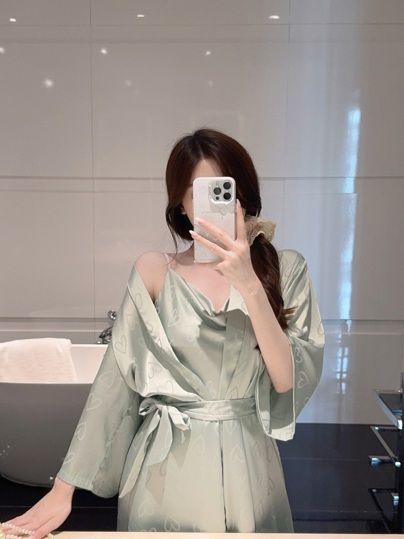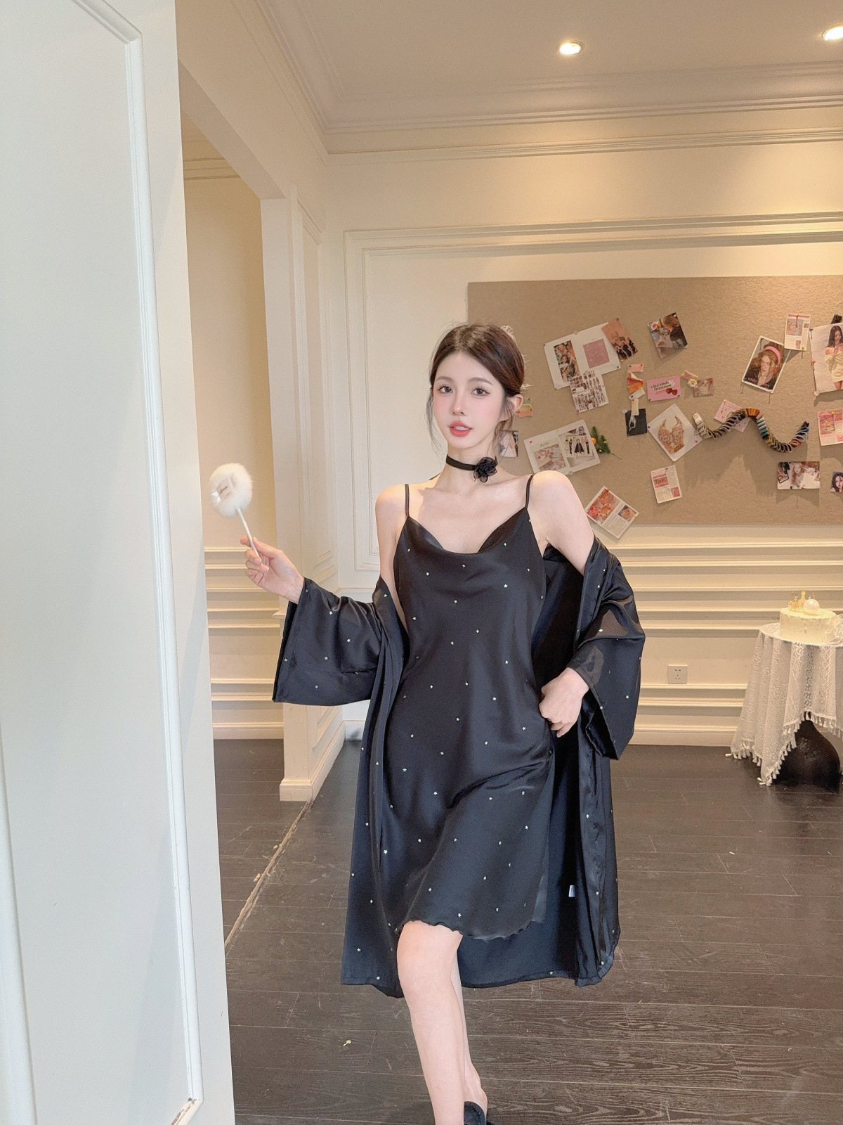 여름 하이 엔드 아이스 실크 나이트 가운 투피스 잠옷 여성용 얇은 자카드 칼라 순수한 욕망 스타일 홈 옷스토어 가기