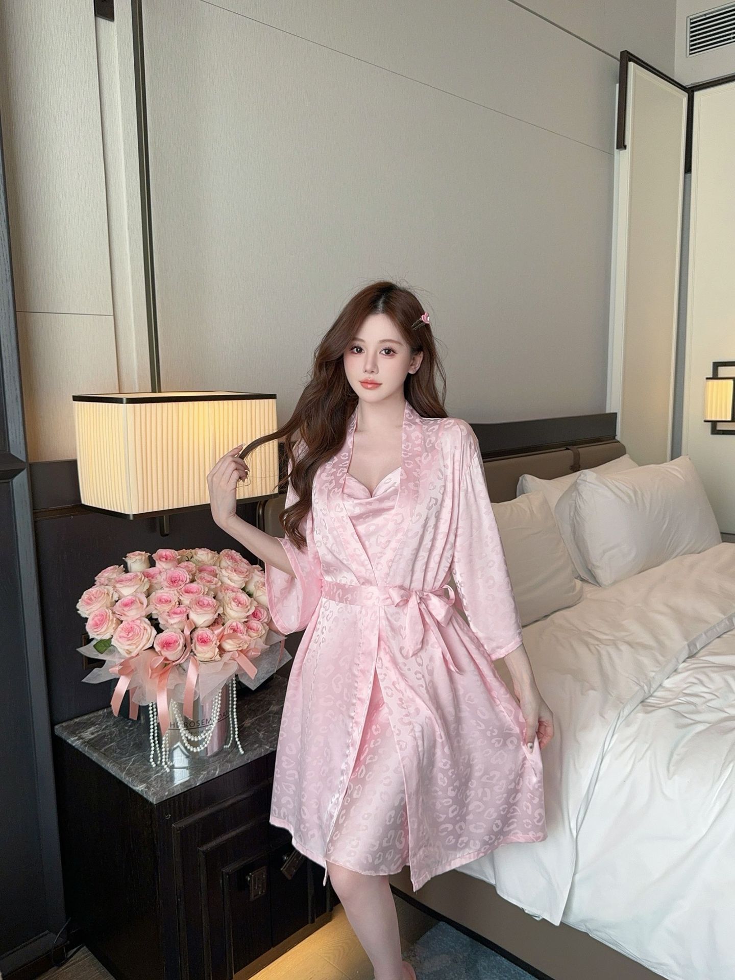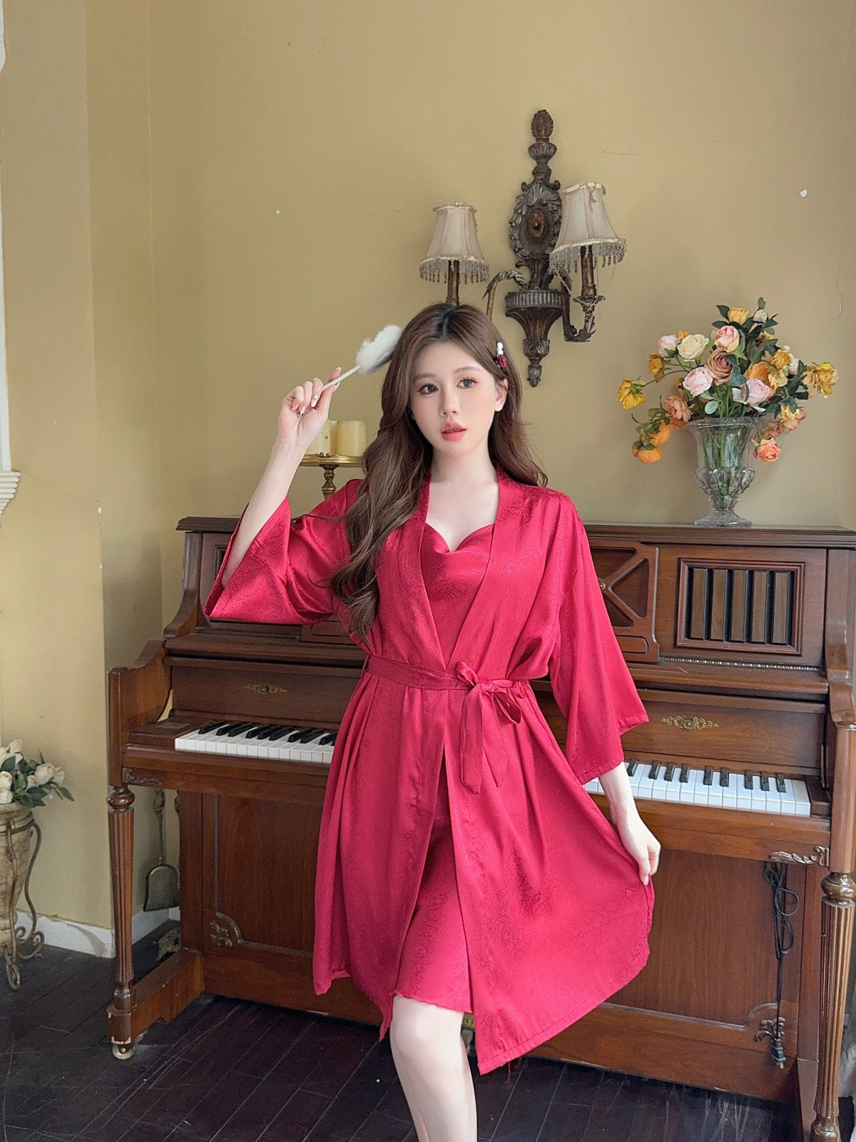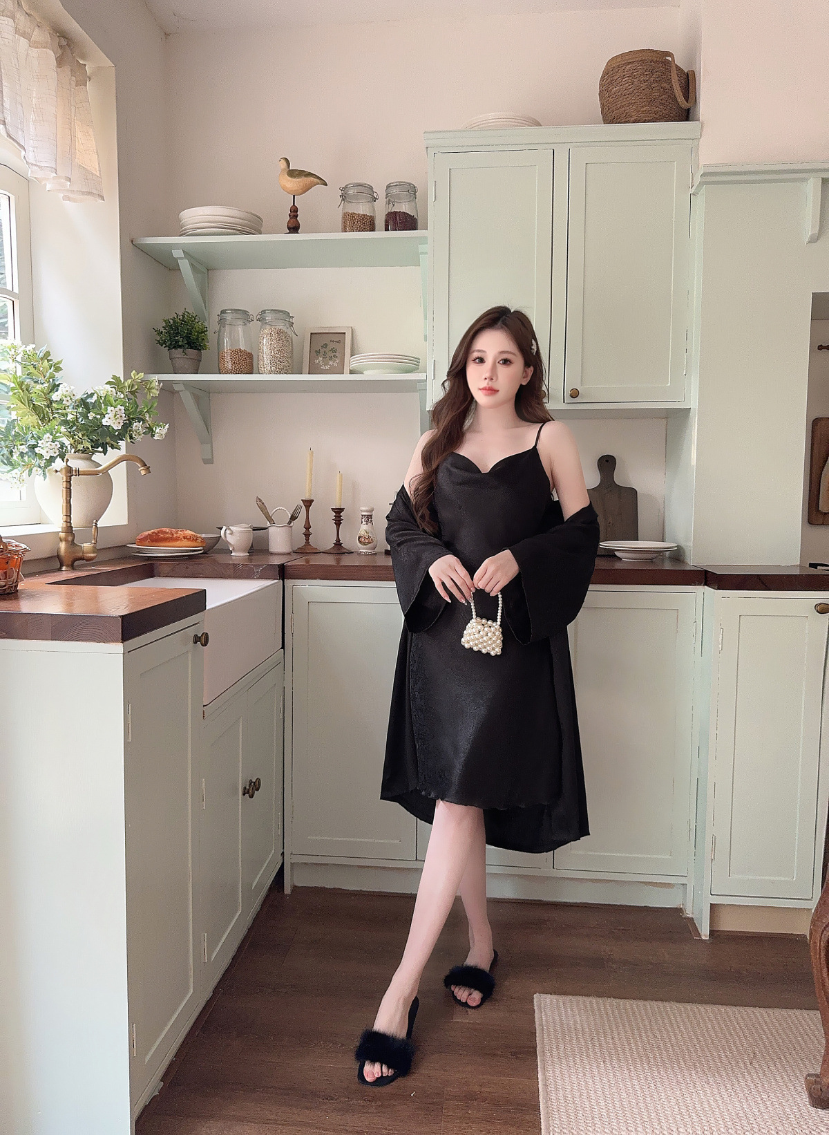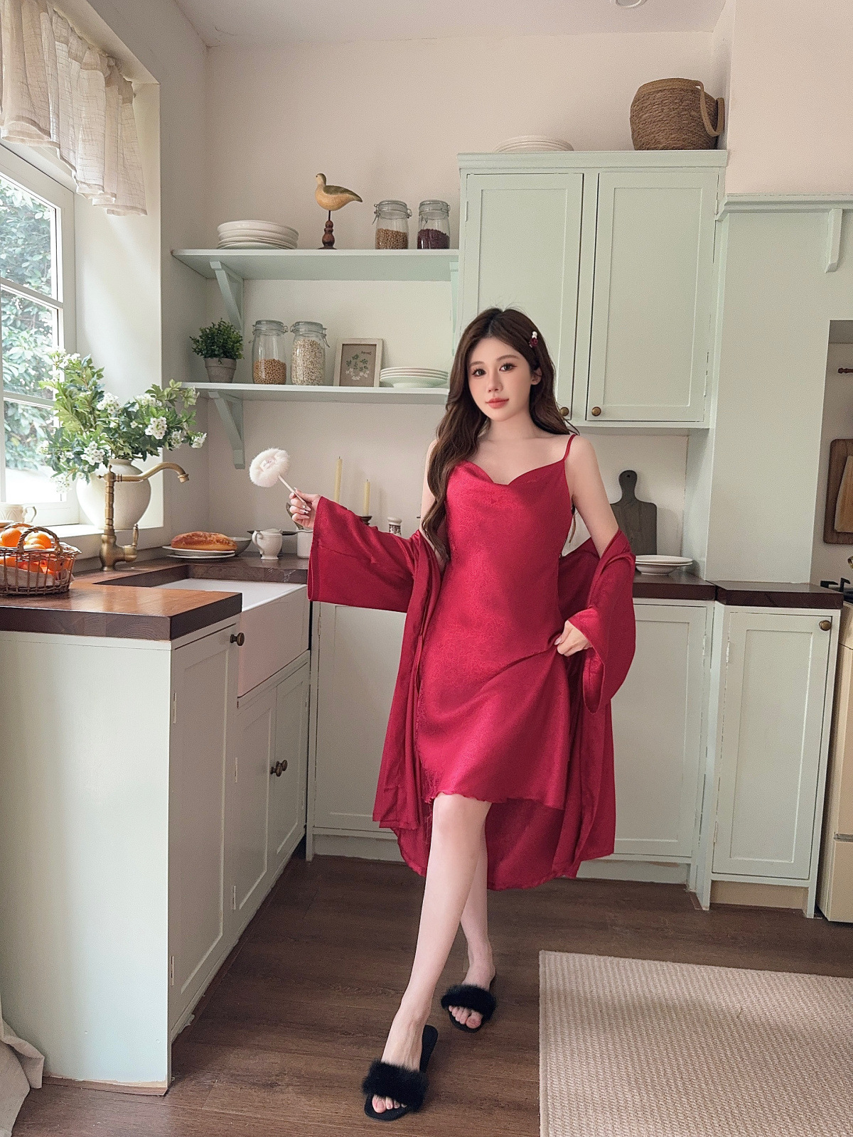 여름 하이 엔드 아이스 실크 나이트 가운 투피스 잠옷 여성용 얇은 자카드 칼라 순수한 욕망 스타일 홈 옷스토어 가기