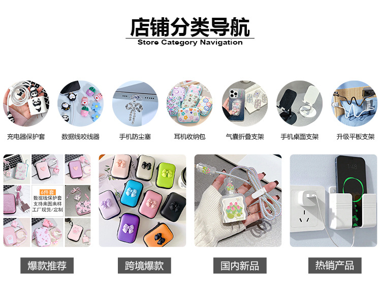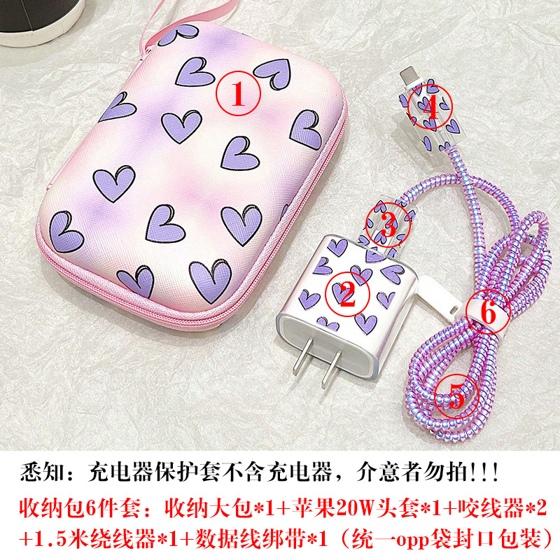 만화 휴대용 6종 세트 애플 20W15 데이터 케이블 보호 케이스 충전 케이블 보호기 수납 가방스토어 가기