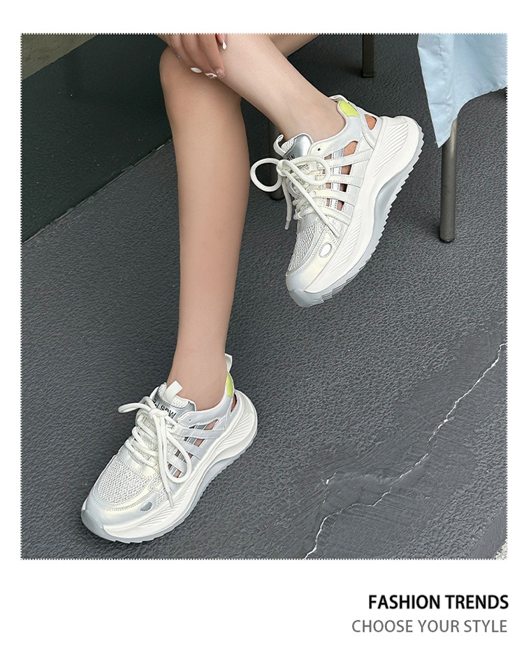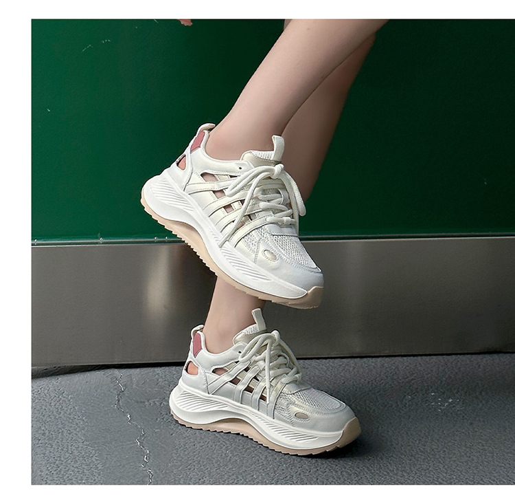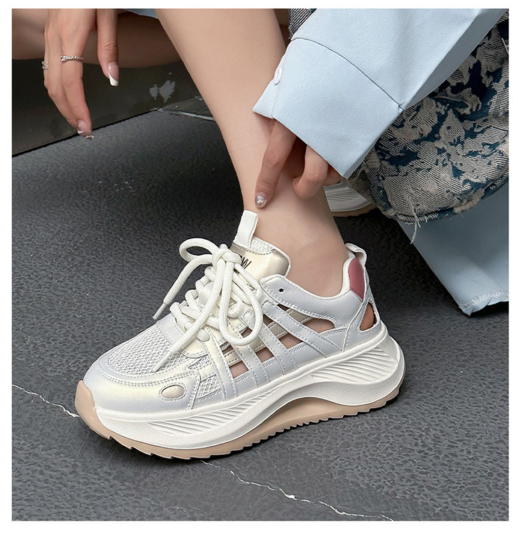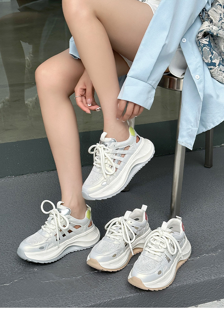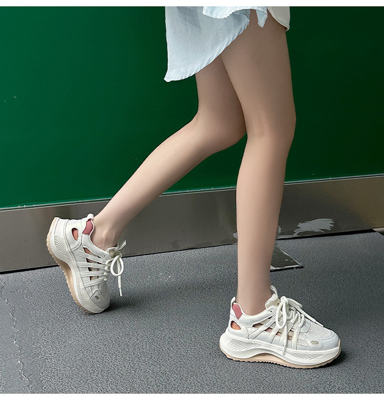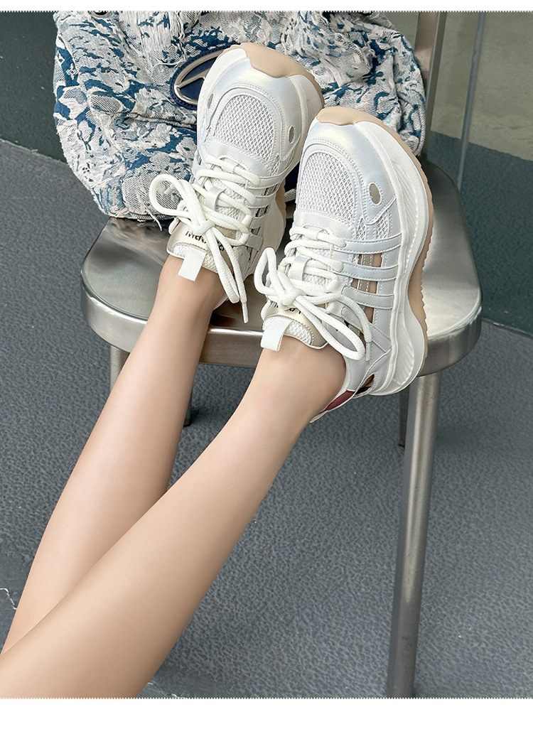 여성용 천연 가죽 컷아웃 런닝화 2026 여름 신상품 다용도 메쉬 통기성 두꺼운 밑창 캐주얼 스포츠 인기 샌들스토어 가기