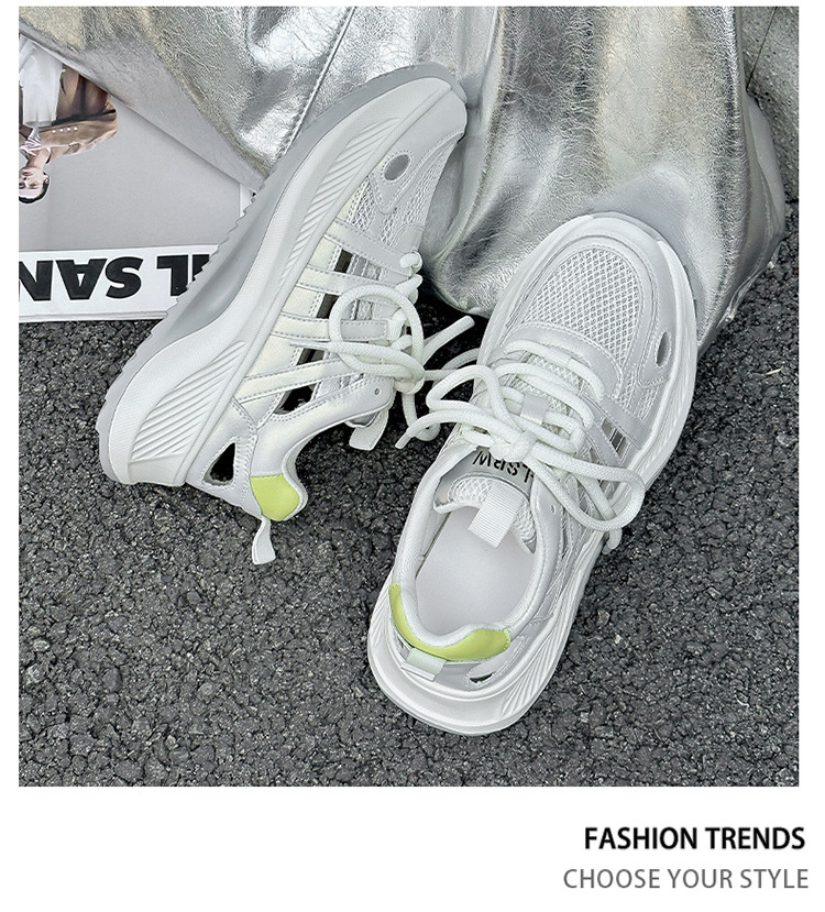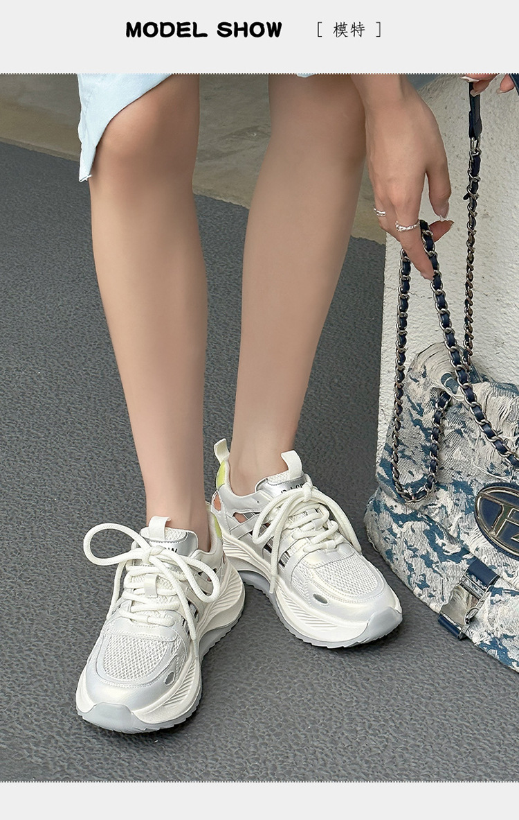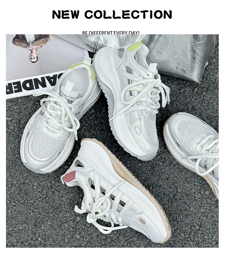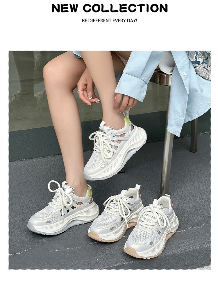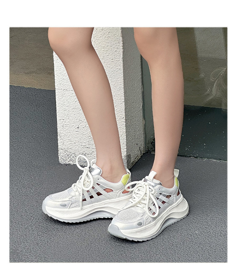 여성용 천연 가죽 컷아웃 런닝화 2026 여름 신상품 다용도 메쉬 통기성 두꺼운 밑창 캐주얼 스포츠 인기 샌들스토어 가기