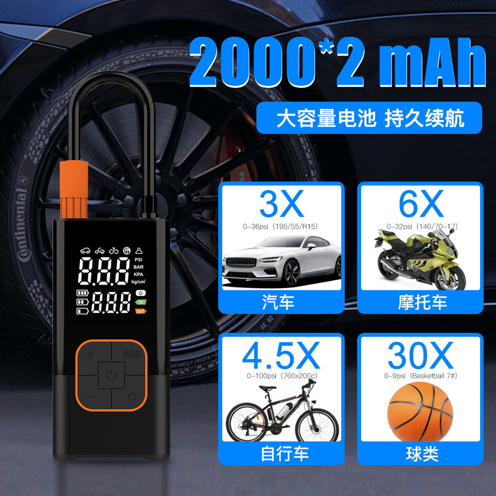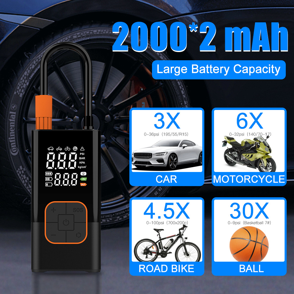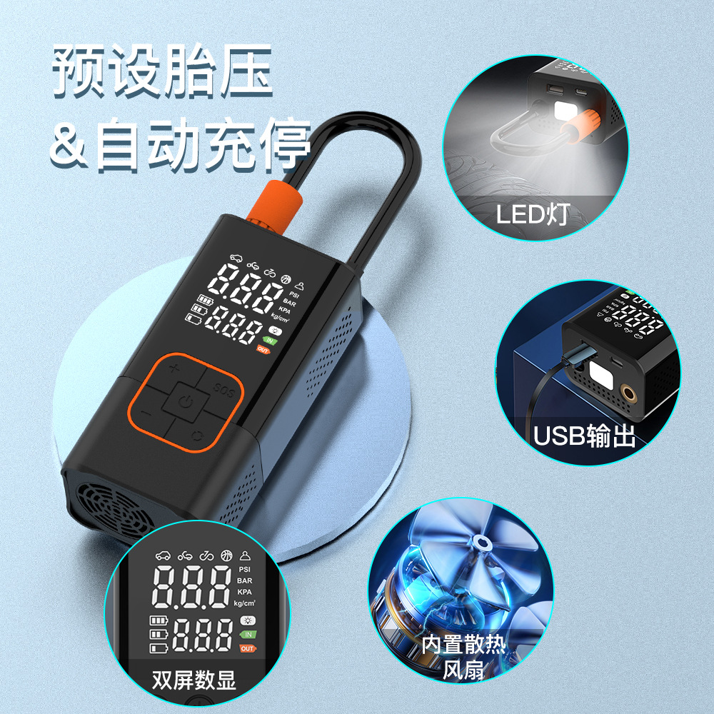 듀얼 스크린 디지털 디스플레이 휴대용 미니 자동차 공기 펌프 전기 타이어 펌프 공기 펌프 휴대용 무선 충전