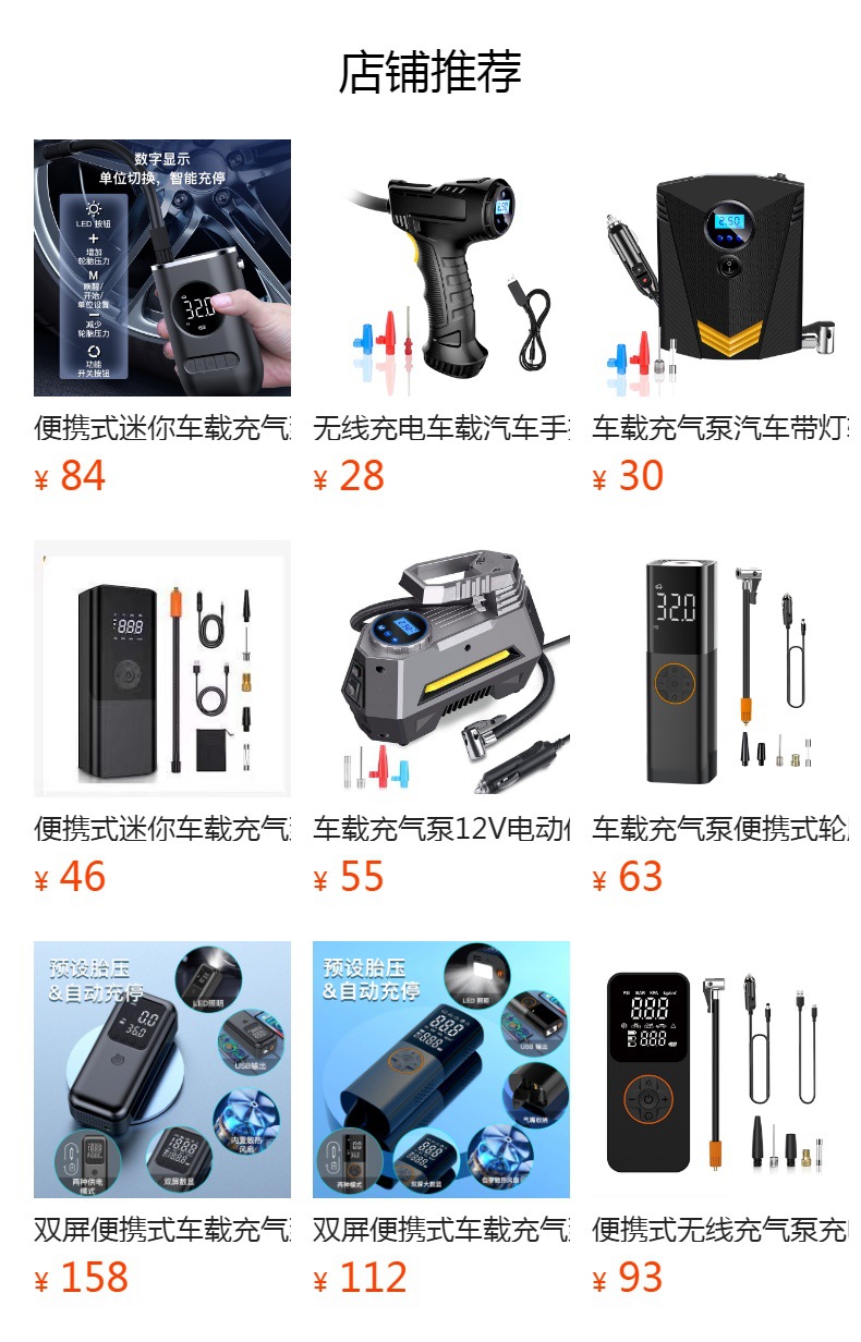 듀얼 스크린 디지털 디스플레이 휴대용 미니 자동차 공기 펌프 전기 타이어 펌프 공기 펌프 휴대용 무선 충전스토어 가기