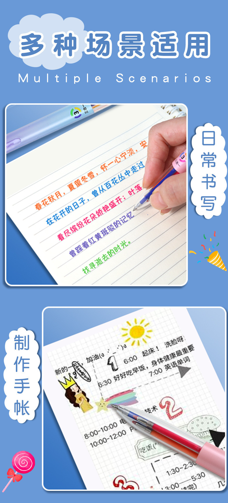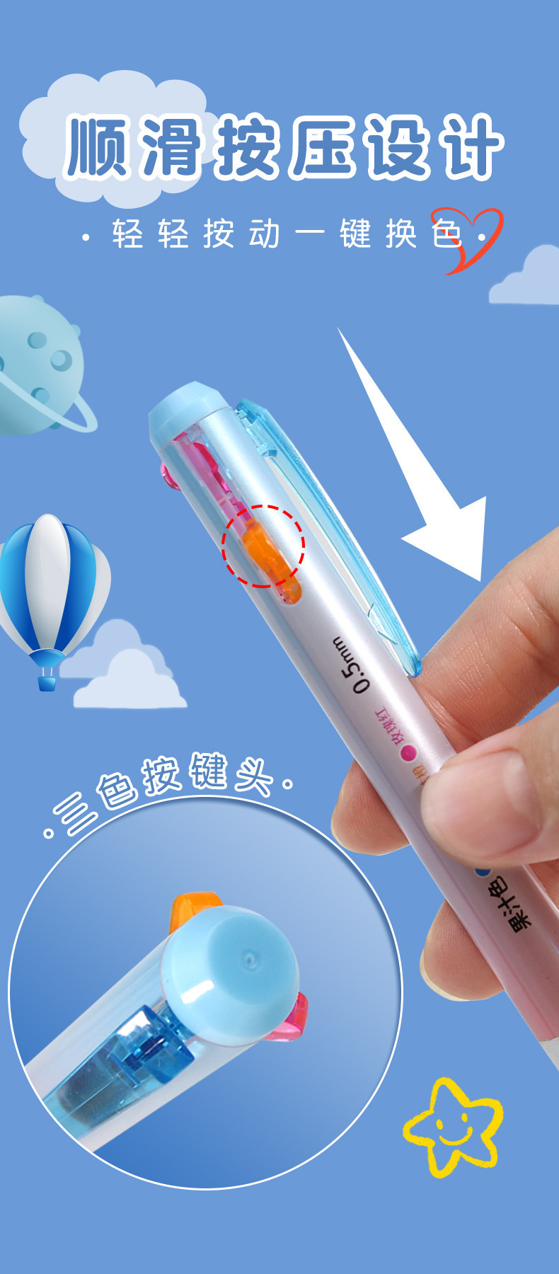 Net Red Tianzhuo Tri-color Gel Pen Press 손 계정 펜 0.5 학생들은 메모를 가지고 다색 총알 젤 펜