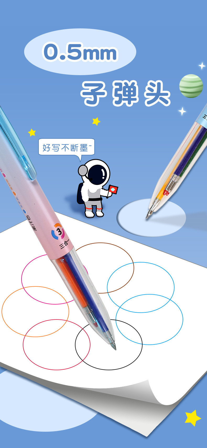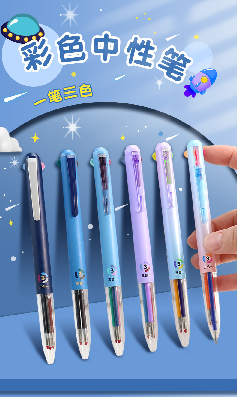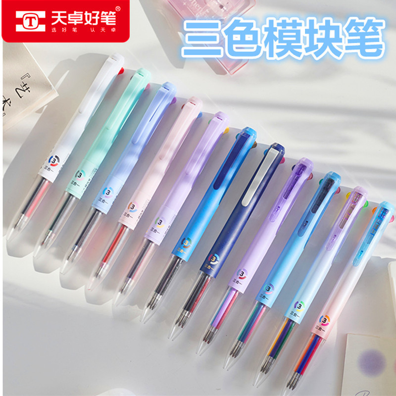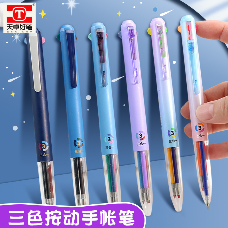 Net Red Tianzhuo Tri-color Gel Pen Press 손 계정 펜 0.5 학생들은 메모를 가지고 다색 총알 젤 펜스토어 가기