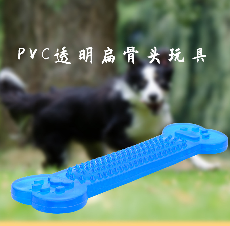 국경을 넘는 인기 애완동물 장난감 PVC 플랫 뼈 모양 내구성 있는 플라스틱 투명 뼈 강아지 장난감 도매