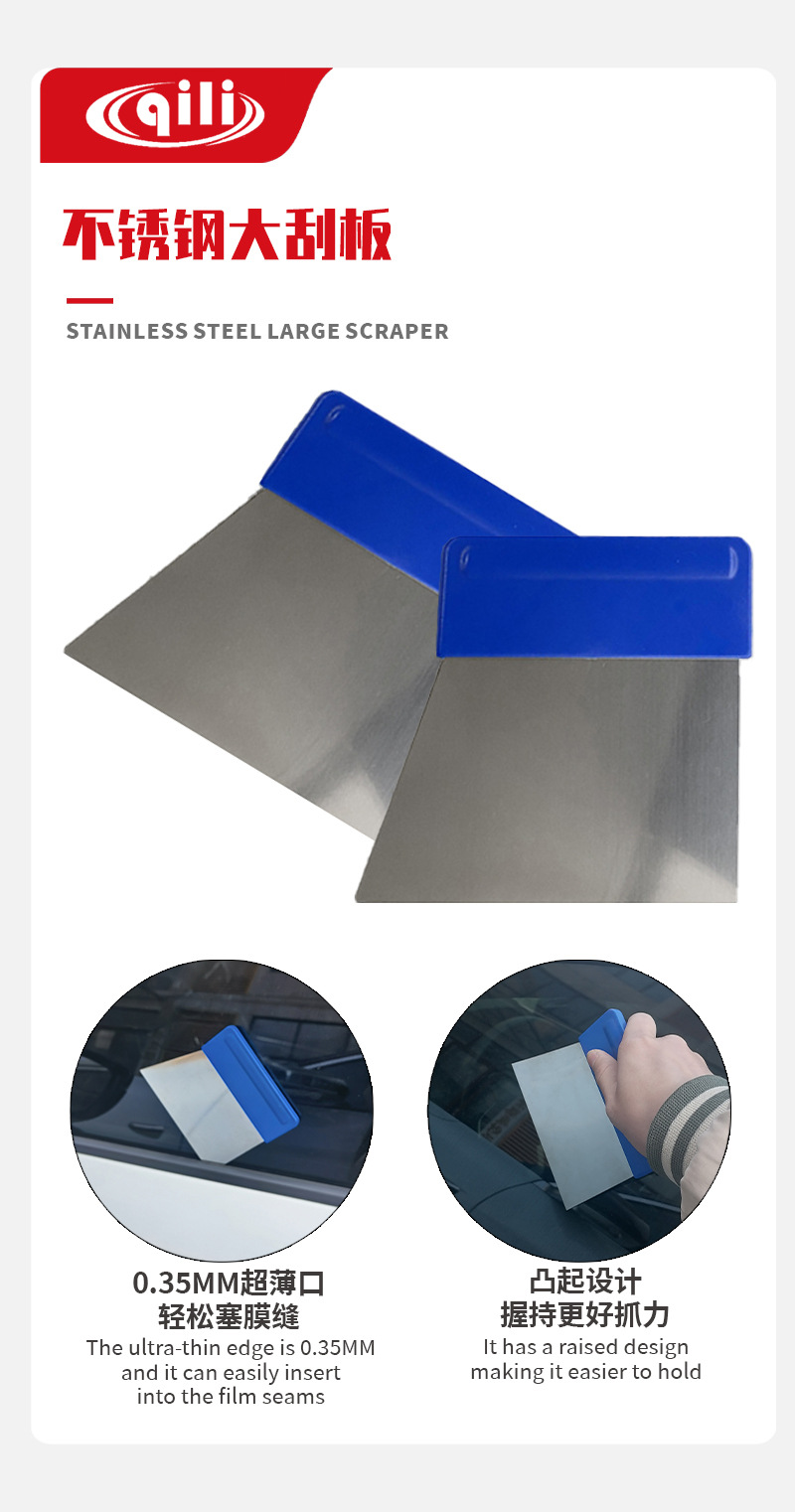 Qili 자동차 필름 도구 스테인레스 스틸 스크레이퍼 플러그 가장자리 철 스크레이퍼 태양 필름 창 필름 건설 다림질 필름 플러그 필름 플러그 솔기스토어 가기