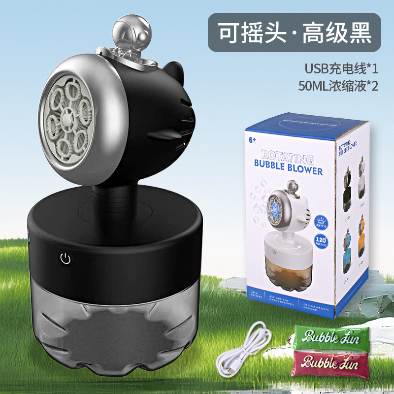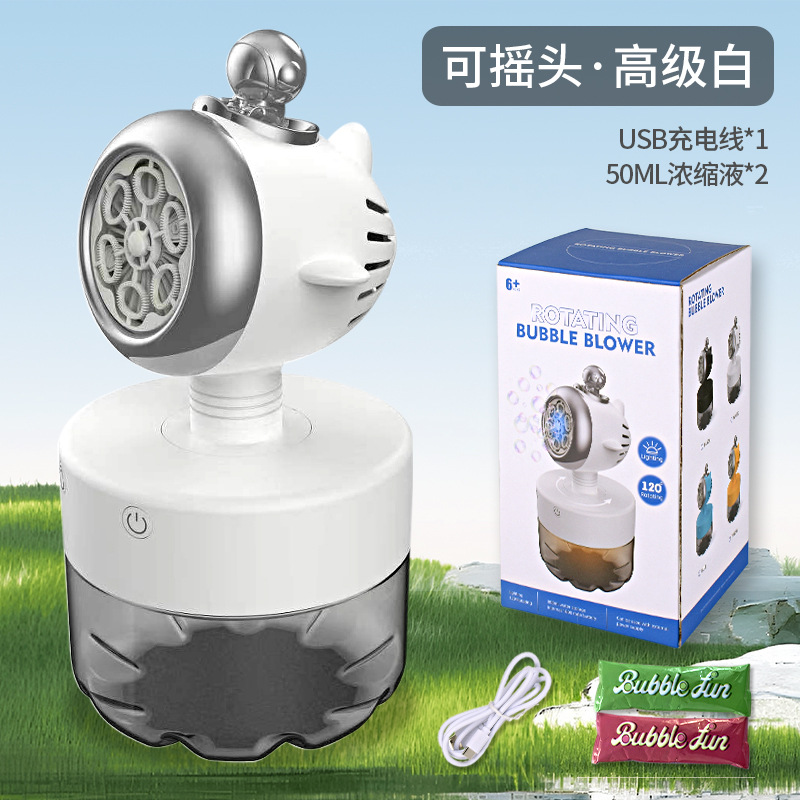 3.泡泡机可以连续使用70分钟左右,摇头功能出泡大约55分钟,低电量时停止旋转可再出泡15分钟;