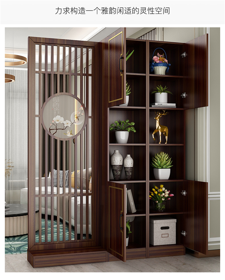 8V 거실 새로운 중국 스타일 스크린 파티션 장식 벽 그늘 단단한 나무 선반 빈 현대 빛 럭셔리 입구 복도