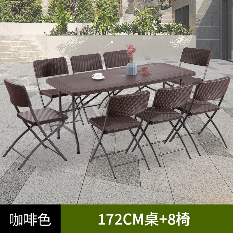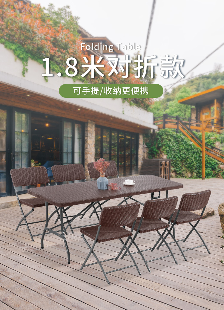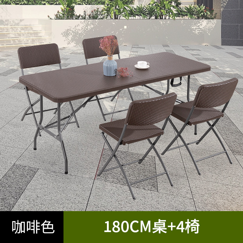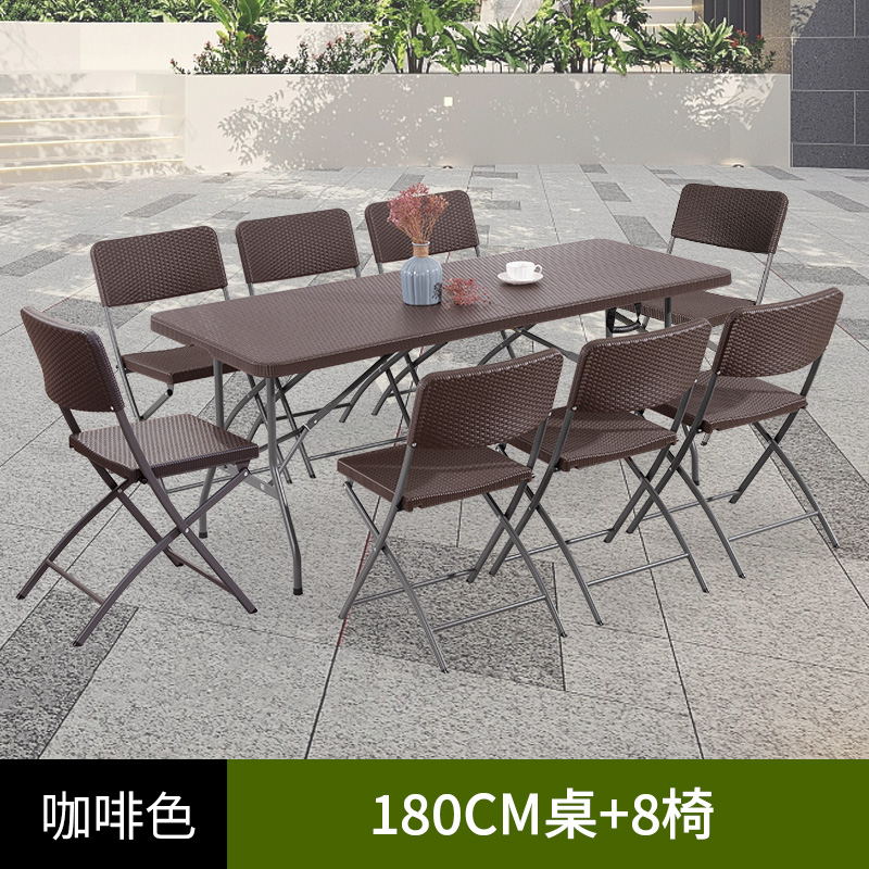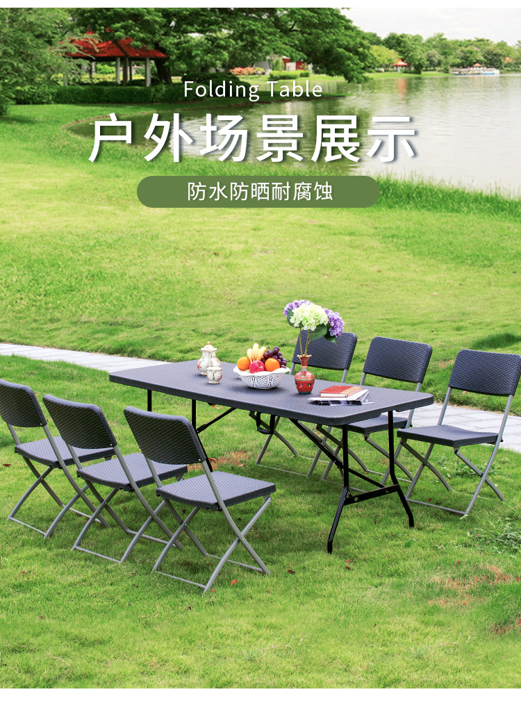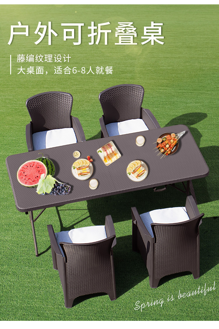 9U 야외 접이식 테이블 방수 태양 방지 테이블 및 의자 테이블 야외 캠핑 직사각형 식탁 정원 안뜰 모조 등나무스토어 가기
