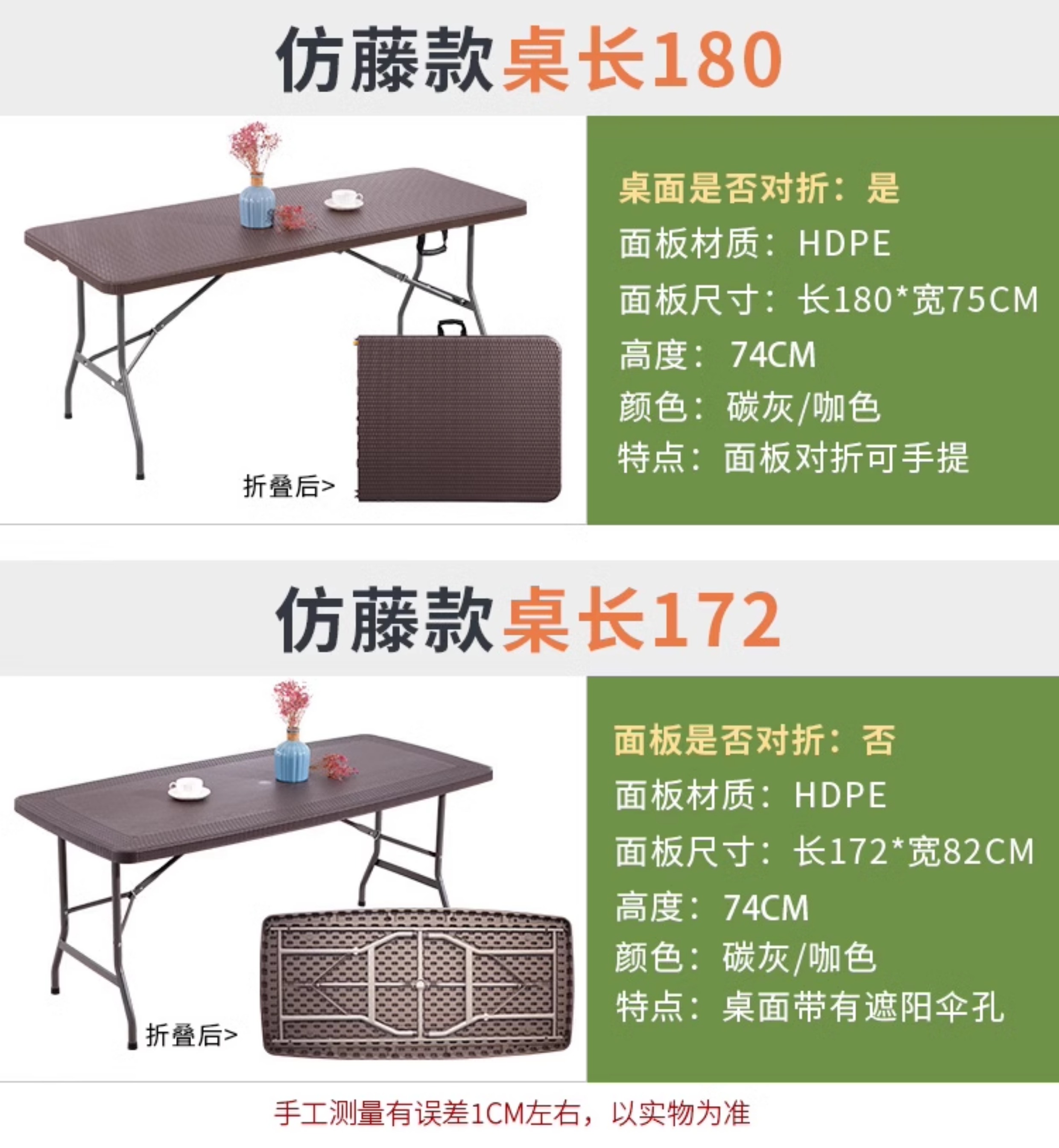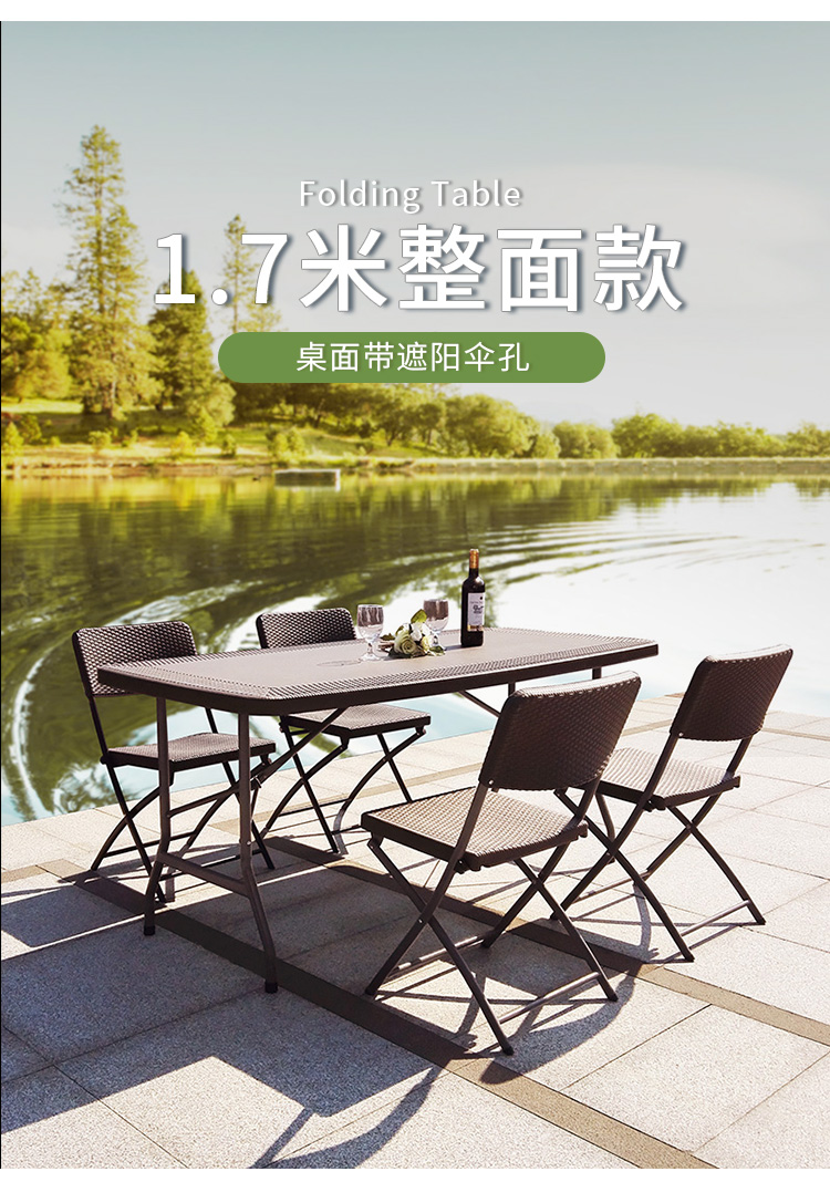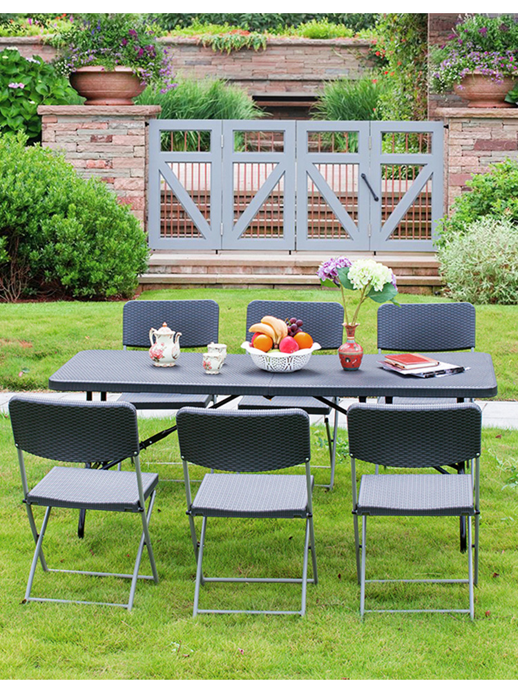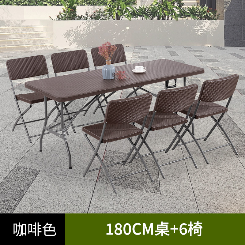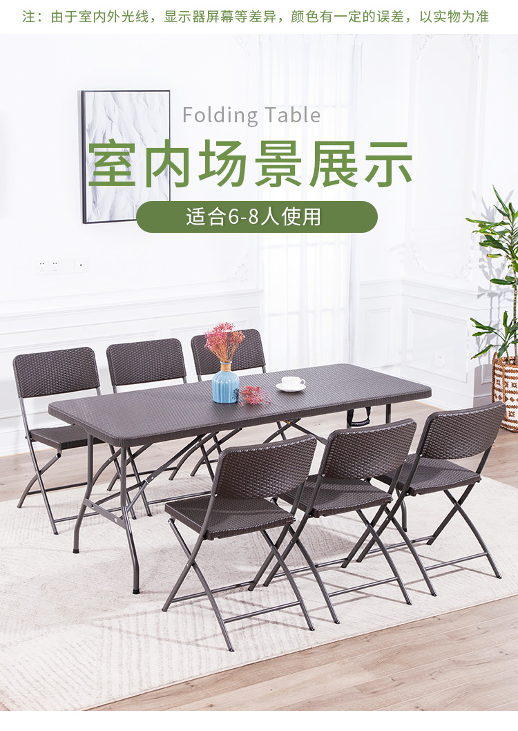 9U 야외 접이식 테이블 방수 태양 방지 테이블 및 의자 테이블 야외 캠핑 직사각형 식탁 정원 안뜰 모조 등나무스토어 가기