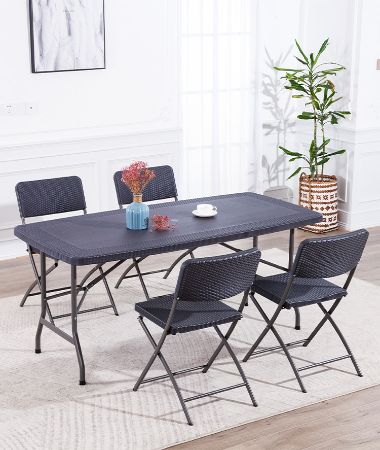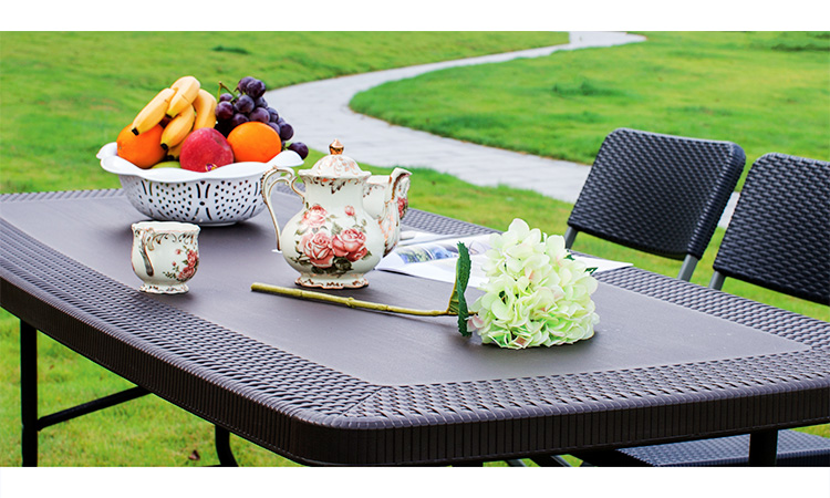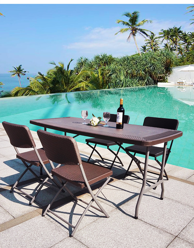 9U 야외 접이식 테이블 방수 태양 방지 테이블 및 의자 테이블 야외 캠핑 직사각형 식탁 정원 안뜰 모조 등나무