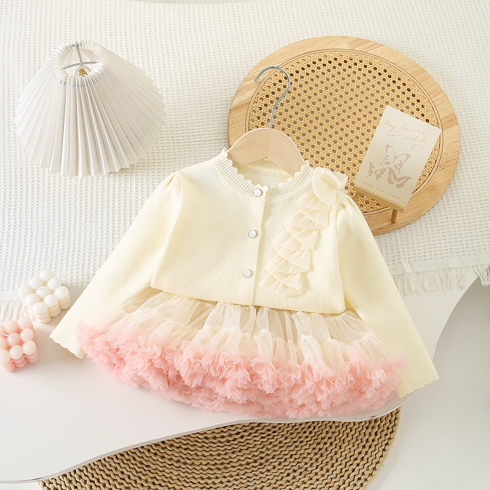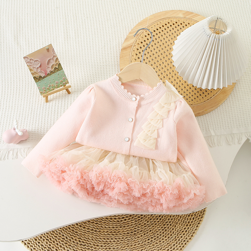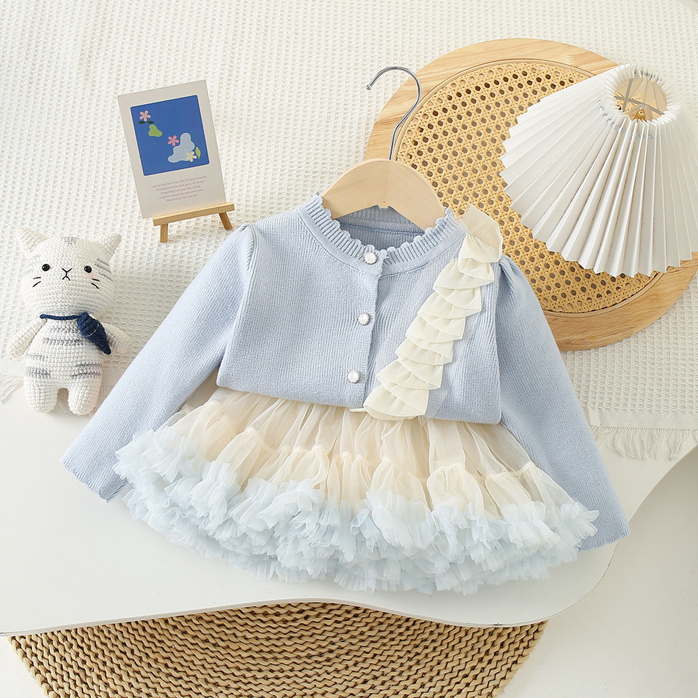 여자 스웨터 카디건 아기 소녀의 새로운 니트 탑 메쉬 퍼프 원피스 세련된 패션 스웨터 원피스 한국 스타일스토어 가기