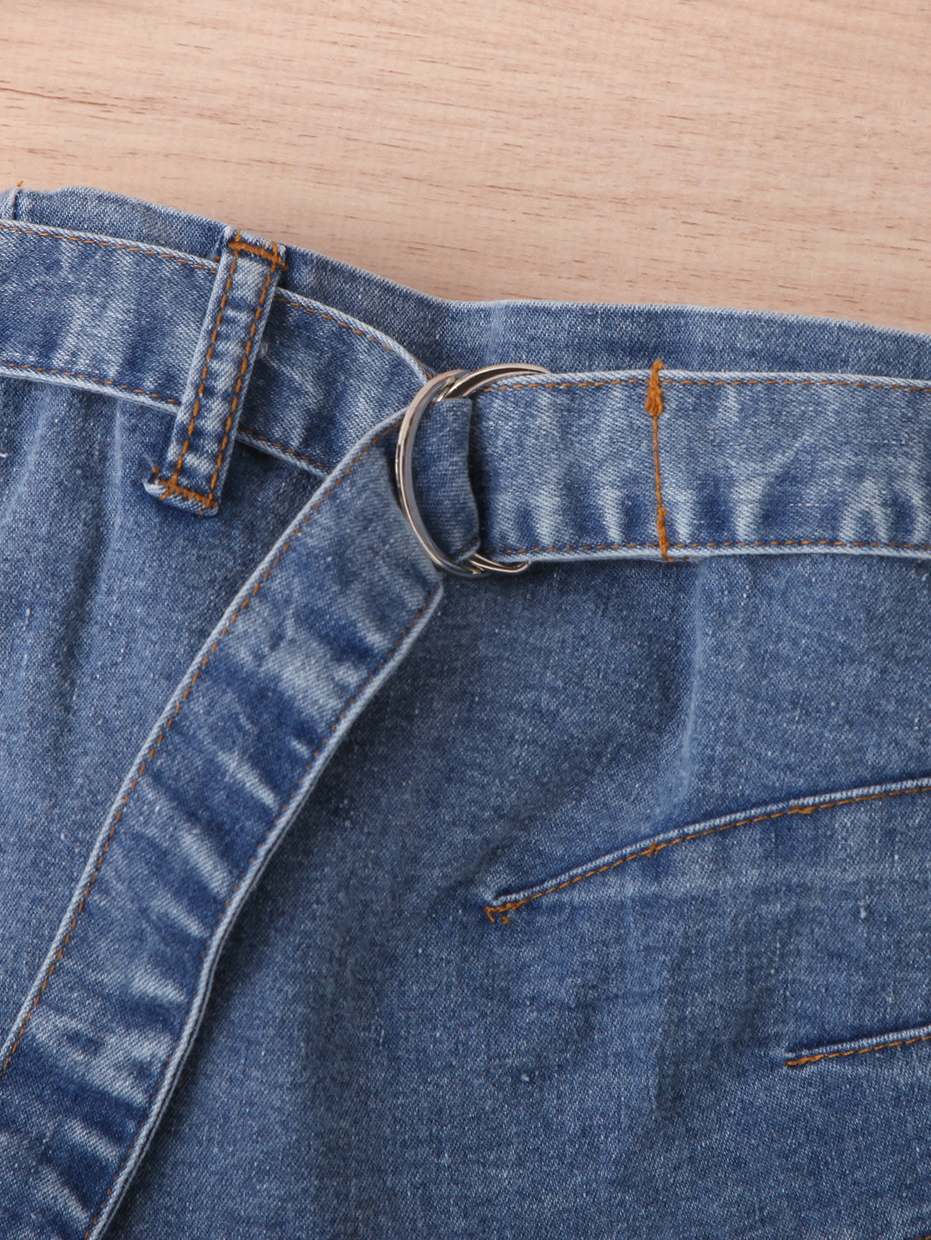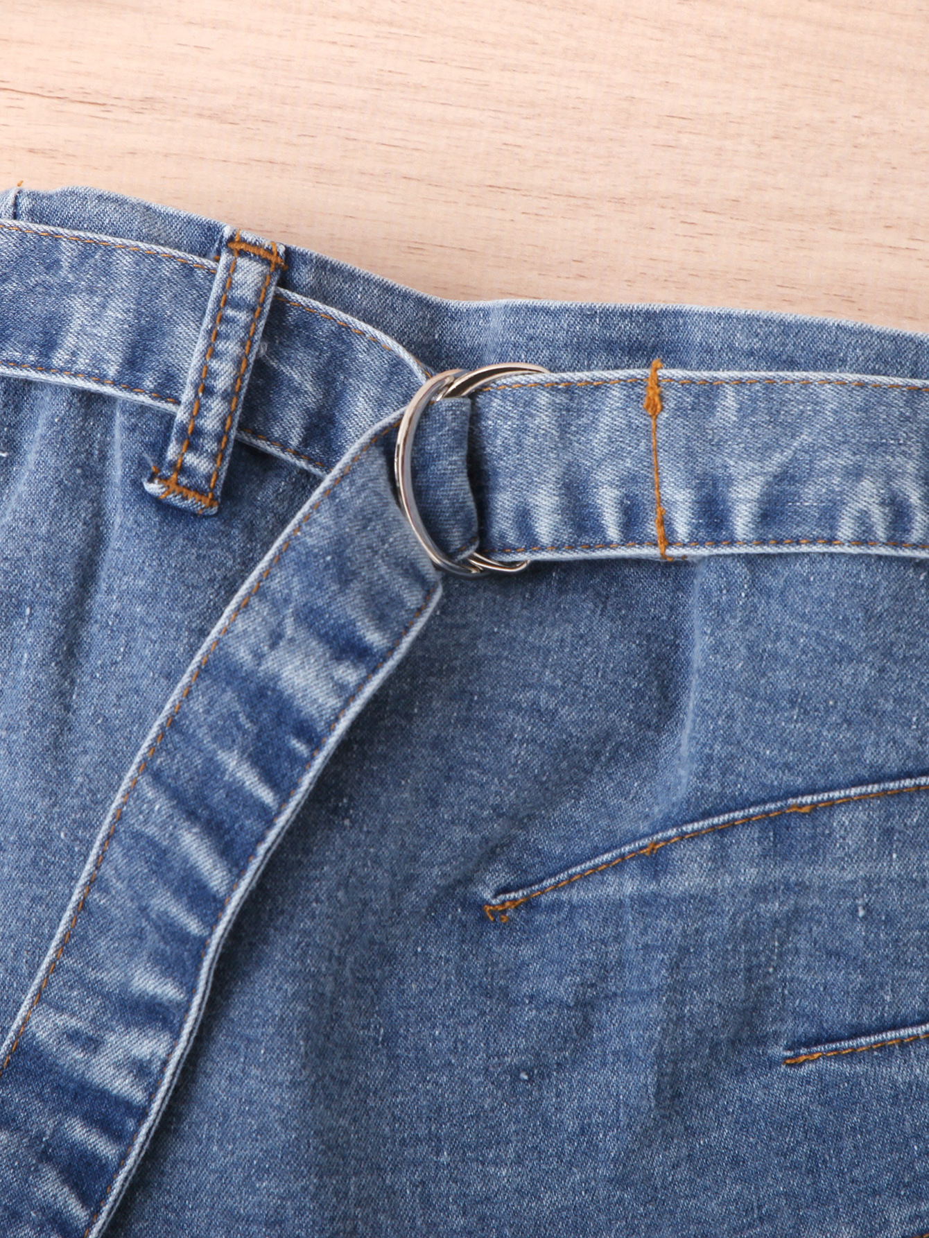 아마존 국경 아동복 소녀 솔리드 컬러 웨이스트 코트 짧은 소매 탑 데님 오픈 백 주름 치마 세트 벨트스토어 가기