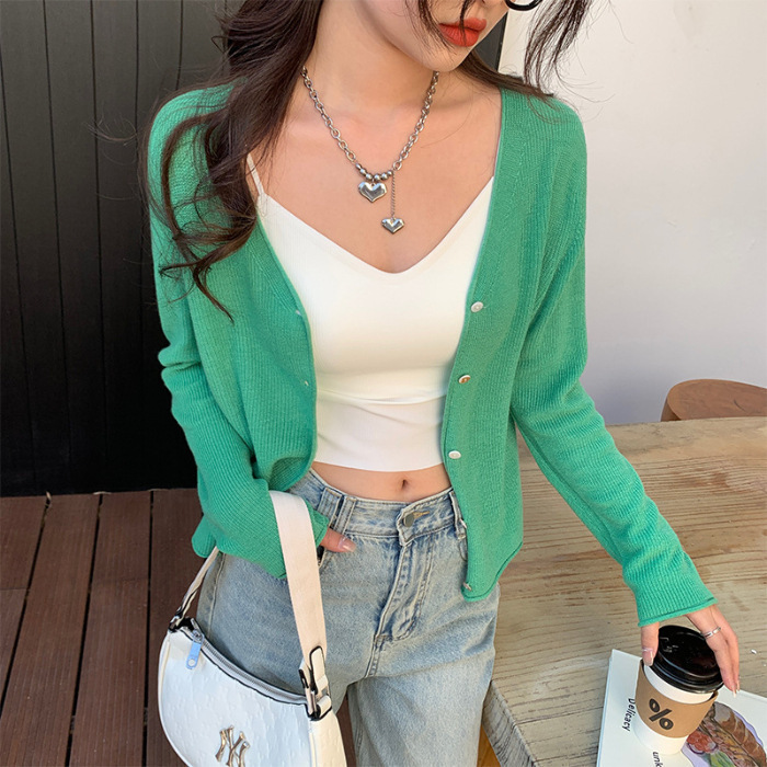Abes ~ 선 스크린 카디건 얇은 여성용 아이스 실크 니트 코트 여름 오버 셔츠 탑 화이트 에어컨 셔츠