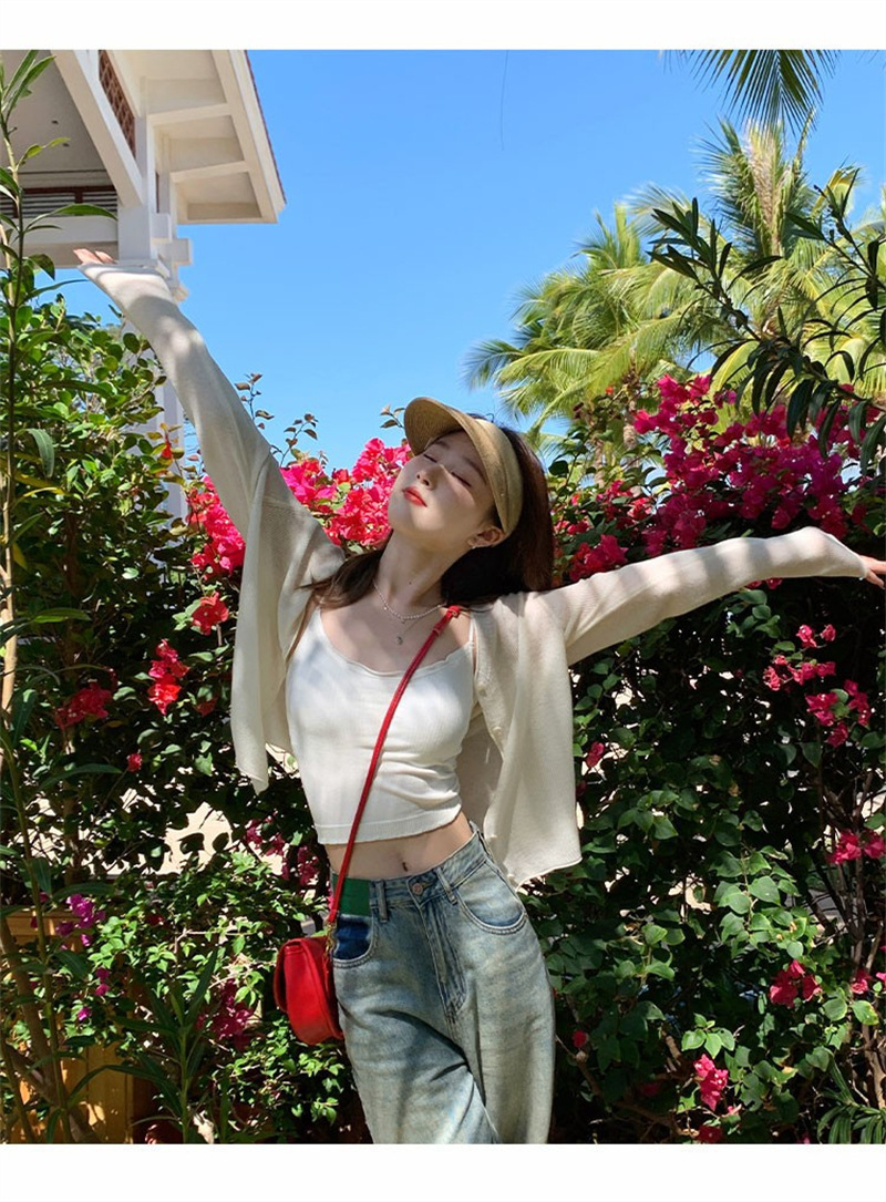 Abes ~ 선 스크린 카디건 얇은 여성용 아이스 실크 니트 코트 여름 오버 셔츠 탑 화이트 에어컨 셔츠스토어 가기