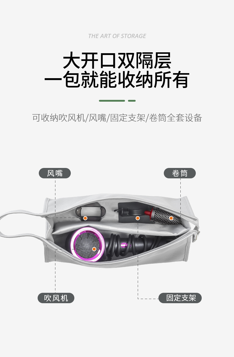 헤어드라이어 수납가방, 헤어드라이어 액세서리 수납, 대용량, 고급스러운 느낌, 국경을 넘는 다기능 컬링 아이언 수납가방