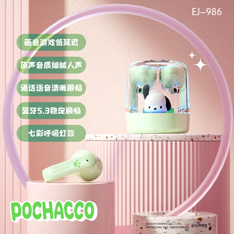 새로운 Sanrio 무선 블루투스 헤드셋 만화 Kulomi 투명 헤드셋 학생 파티 높은 색상 가치 선물 재고스토어 가기