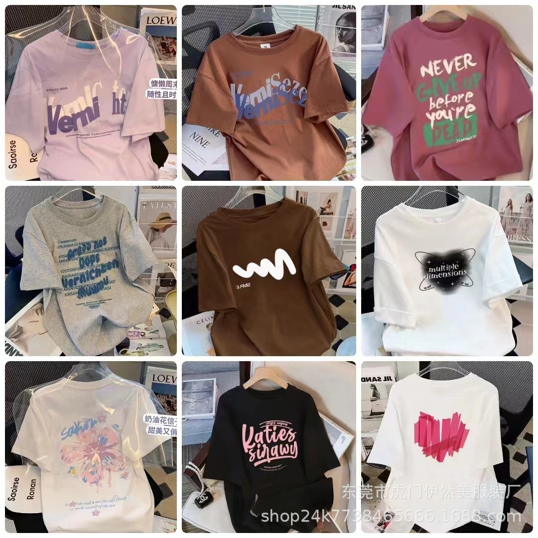 2025 노점 여성 의류 도매 여름 9.9 무료 배송 여성용 반팔 티셔츠 광저우 1 위안 2 위안 의류