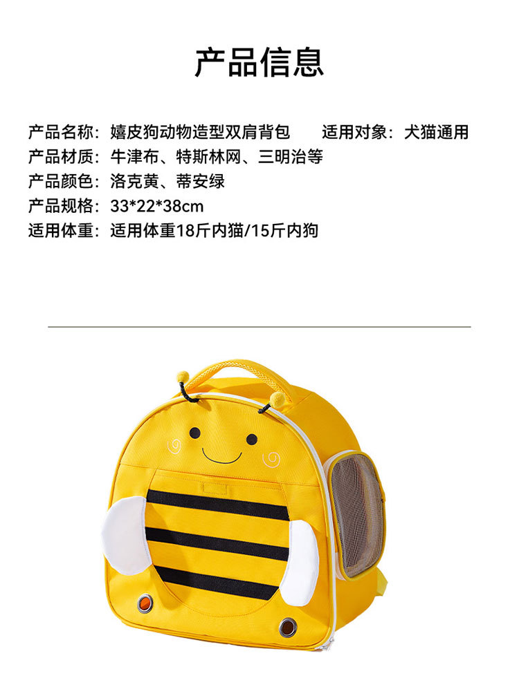 나가는 가방 동물 모양의 배낭 작은 꿀벌 고양이 가방 작고 중간 크기의 개 외출 봄과 여름 통기성 애완 동물 용품