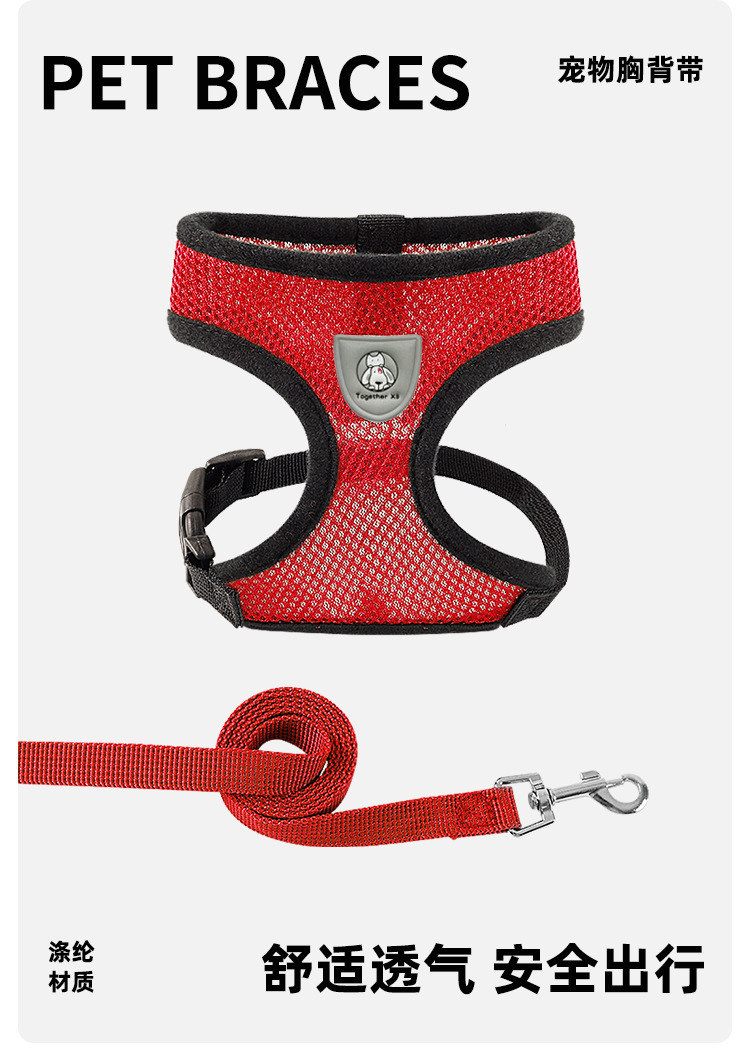 狗狗牵引绳背心式幼犬小型犬胸背带比熊泰迪博美遛狗绳小狗链子