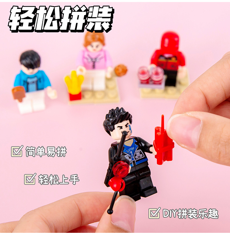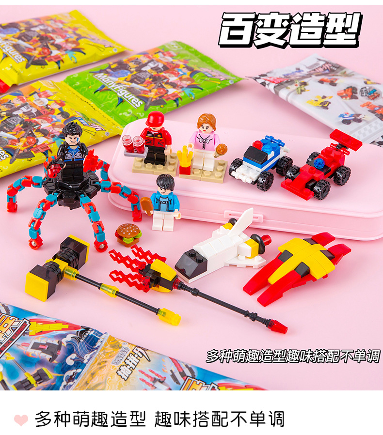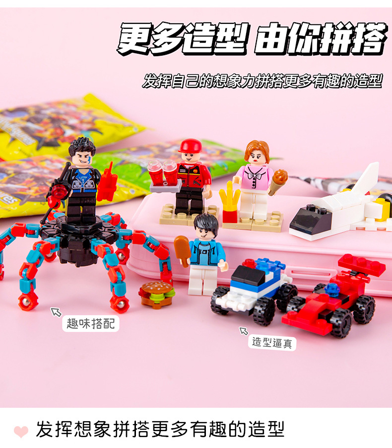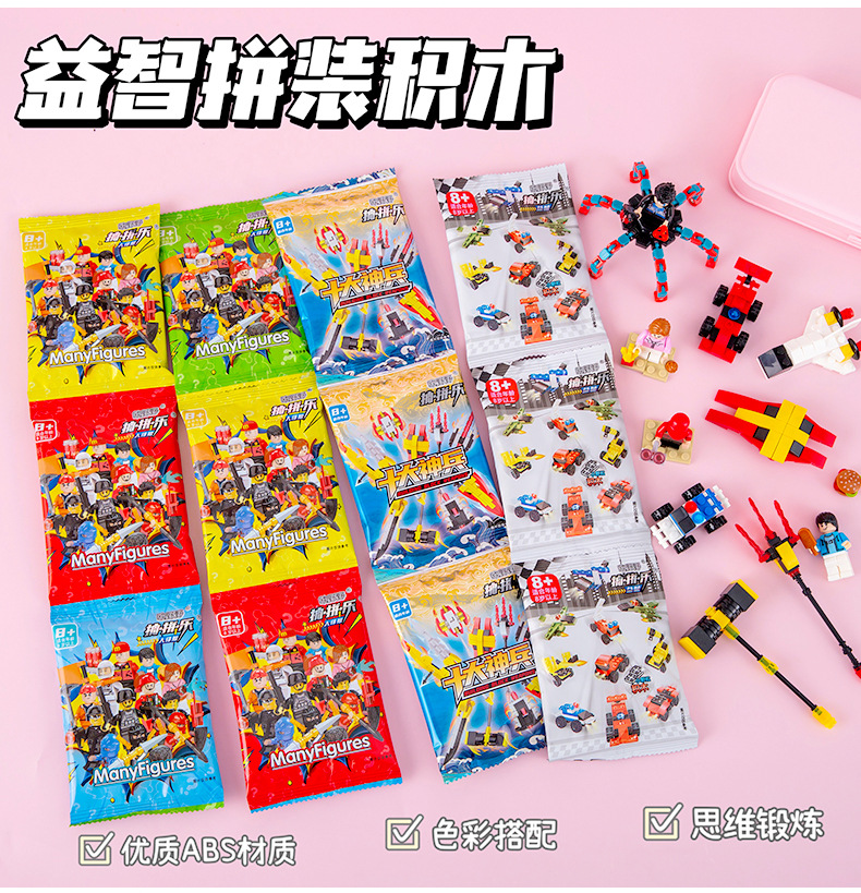 만화 블라인드 가방 빌딩 블록 귀여운 교육 조립 장난감 작은 입자 6-1 장난감 초등 학생 보상 작은 선물스토어 가기