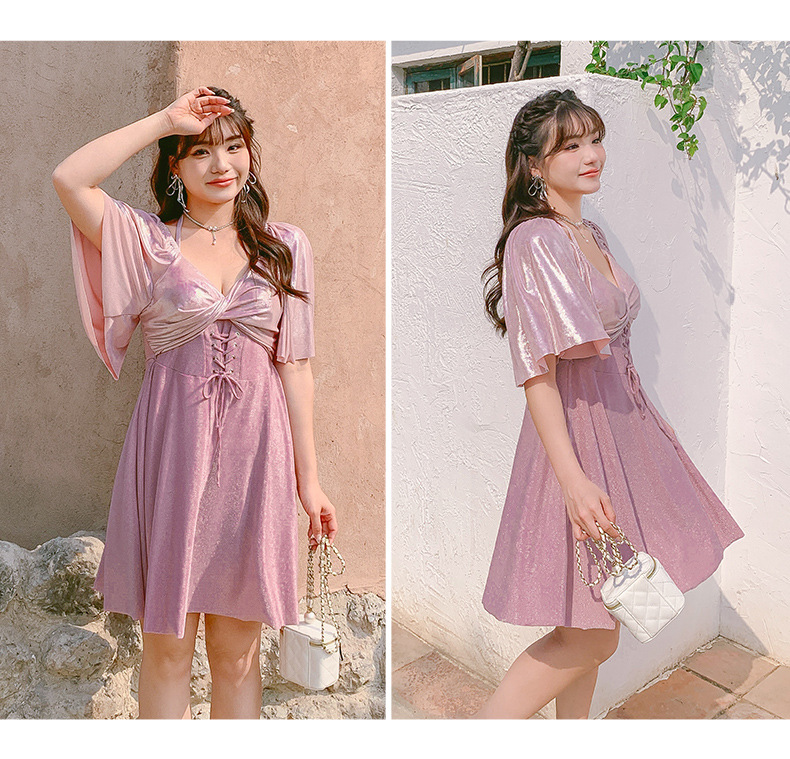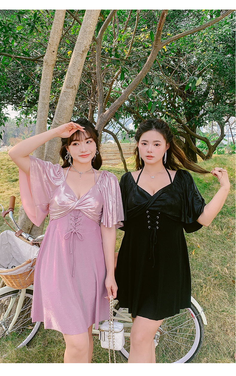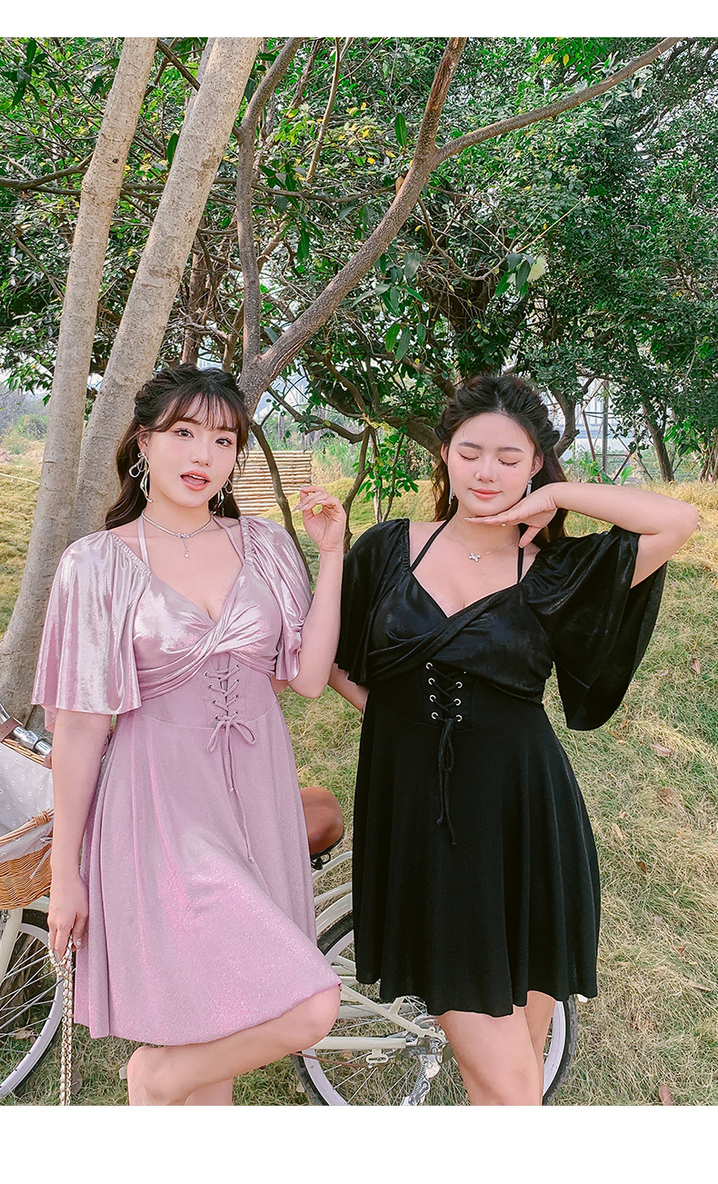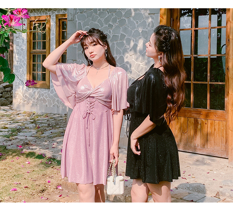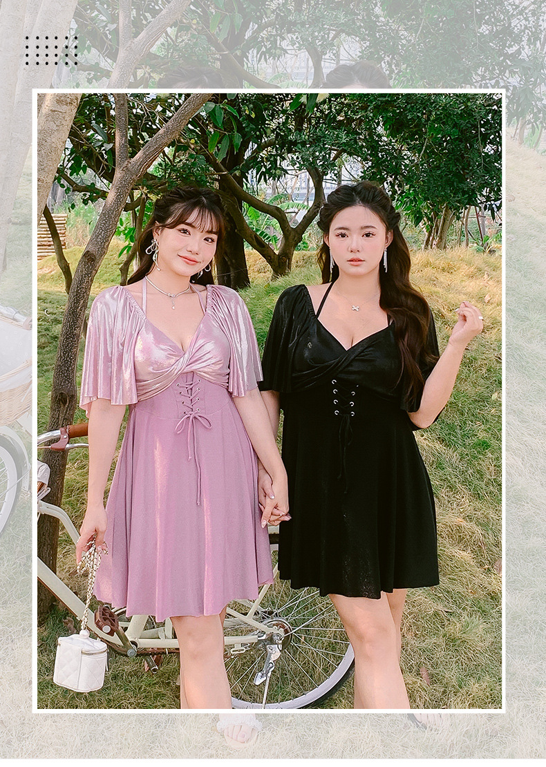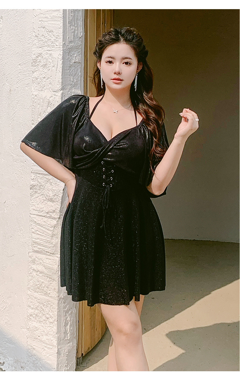 수영복 여성용 2024 유행 슬림 배꼽 치마 스타일 스틸 펀치 업 플러스 사이즈 통통녀 온천 수영복스토어 가기
