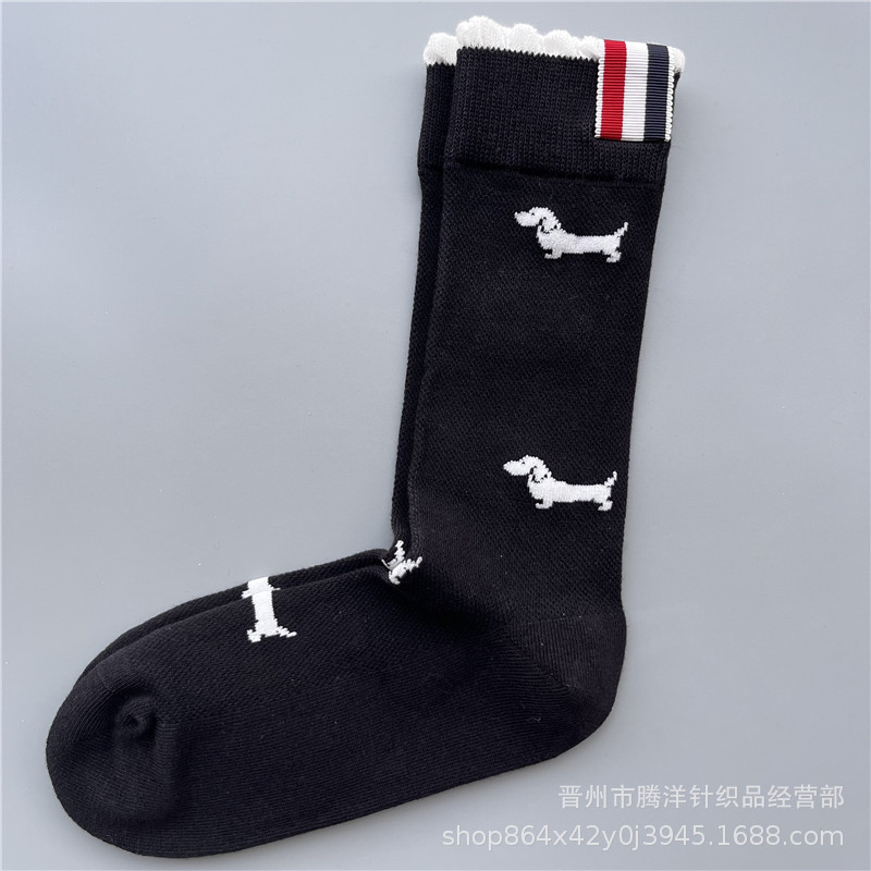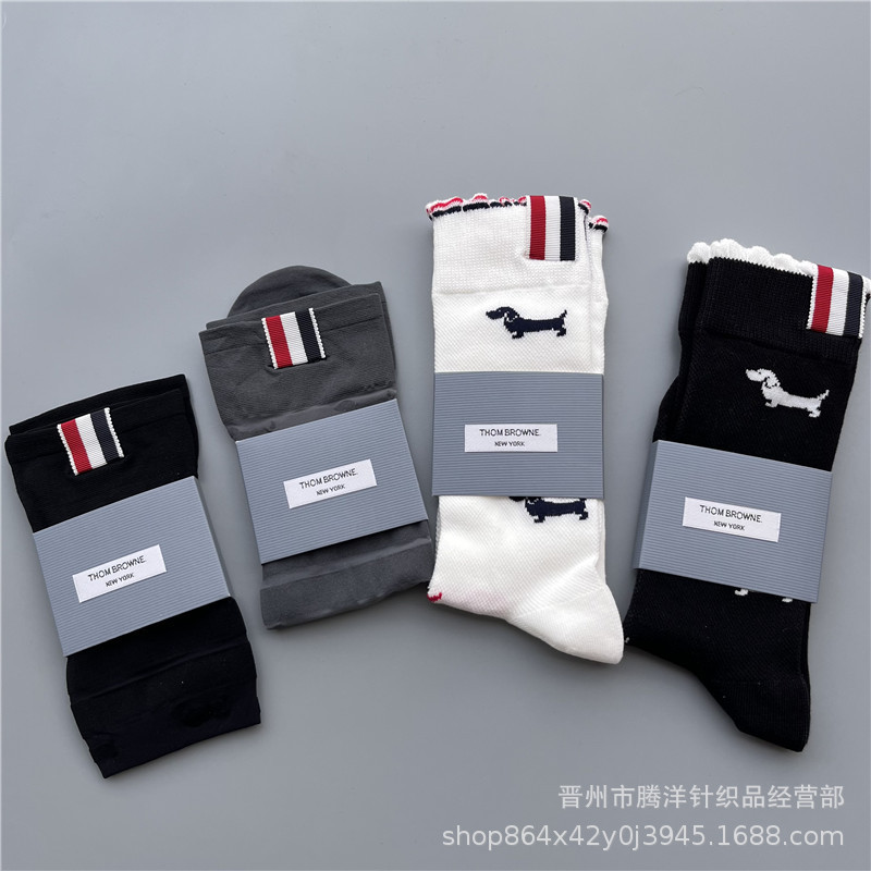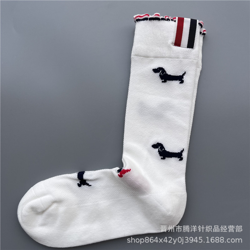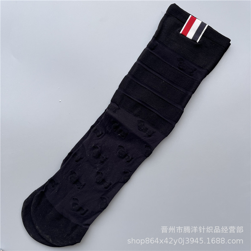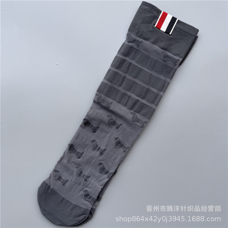 새로운 다크 브라운 양말 여름 얇은 메쉬 통기성 여성 실크 스타킹 강아지 짜는 꽃 올 매치 스트라이프 대학 패션