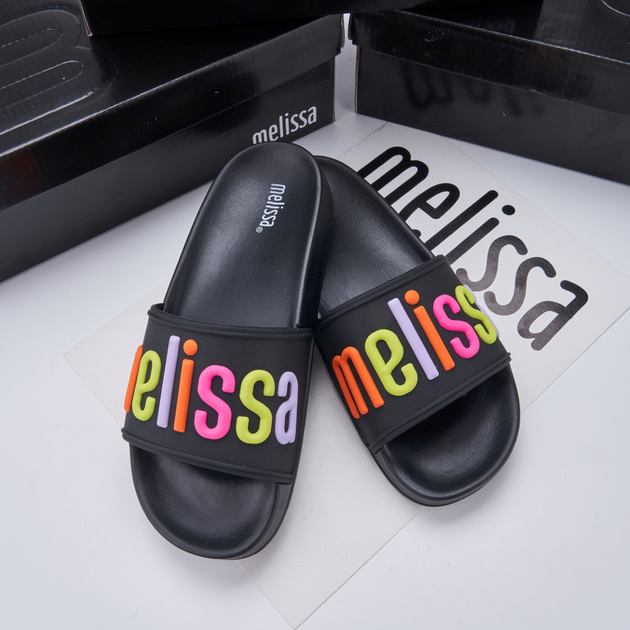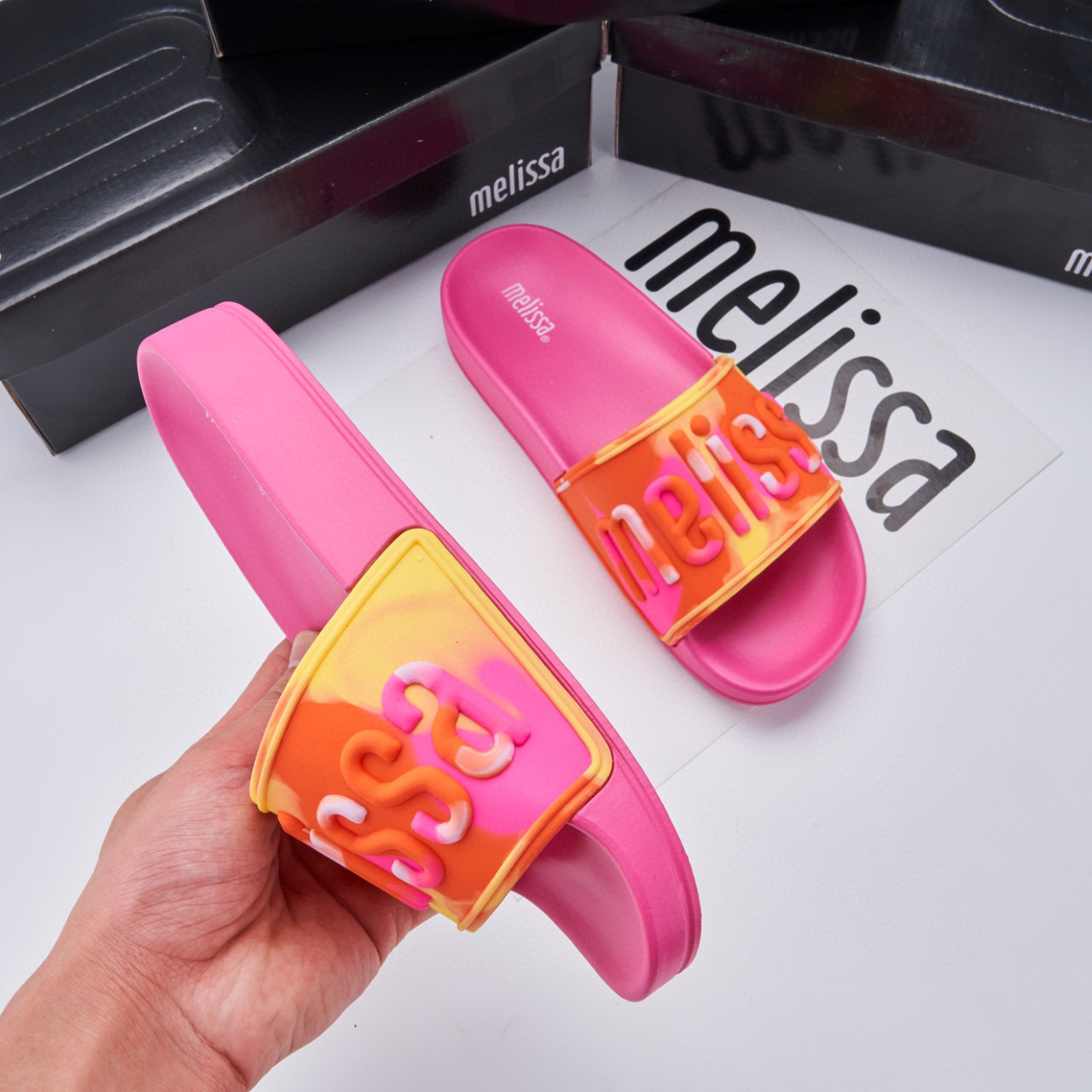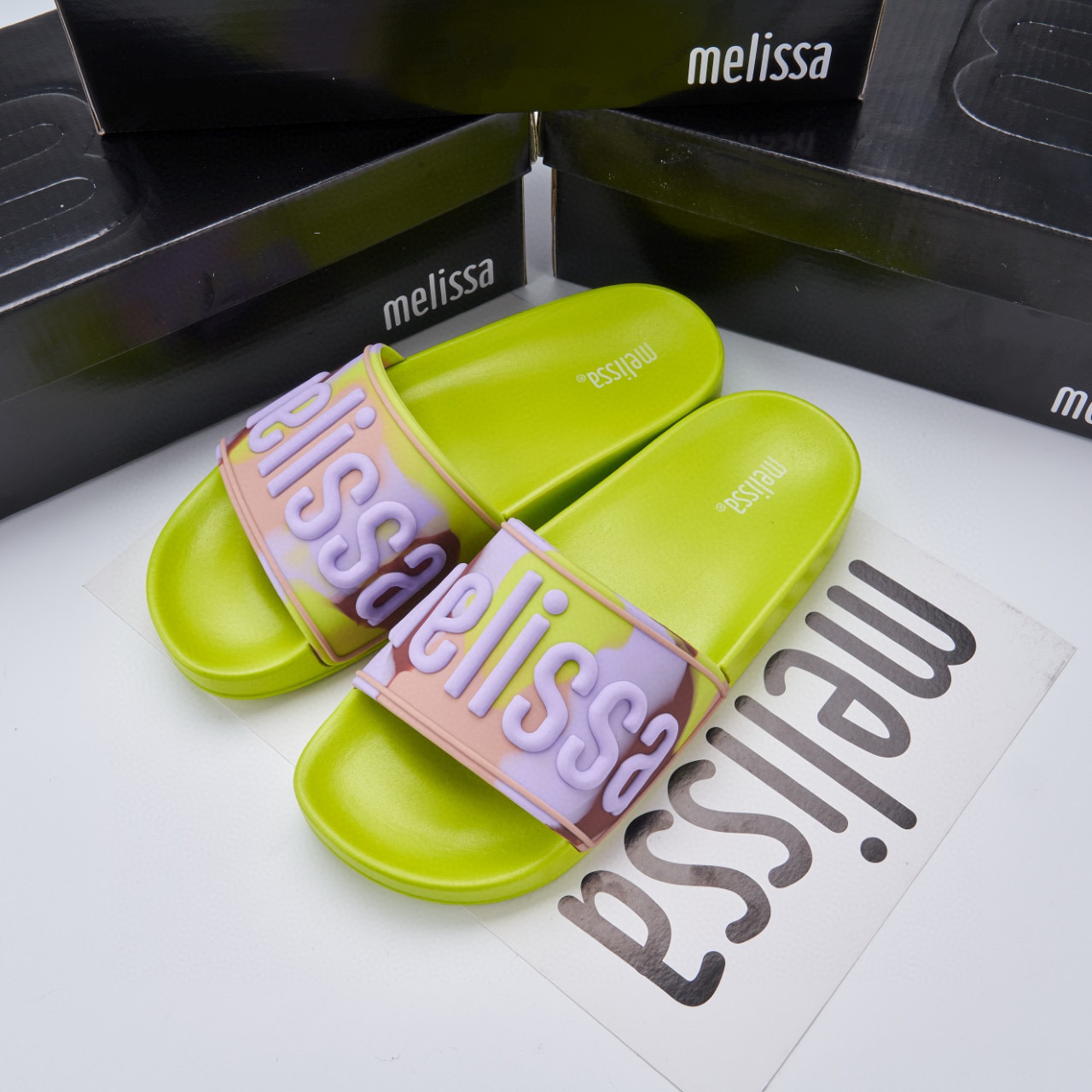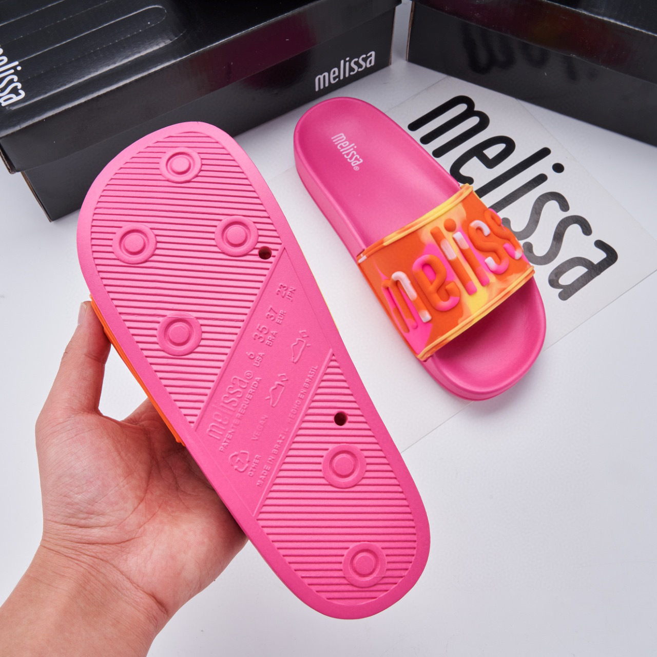 2024 멜리사 멜리사 두꺼운 밑바닥 미끄럼 방지 방수 캐주얼 슬라이드 m 외부 착용 컬러 레터 슬리퍼스토어 가기
