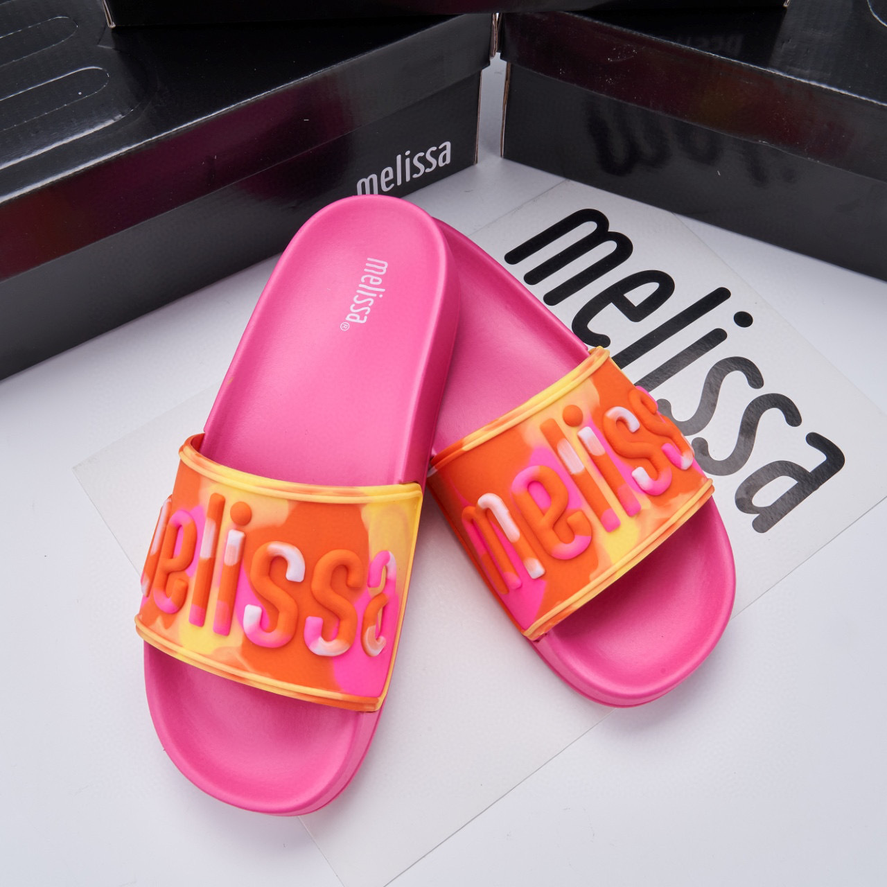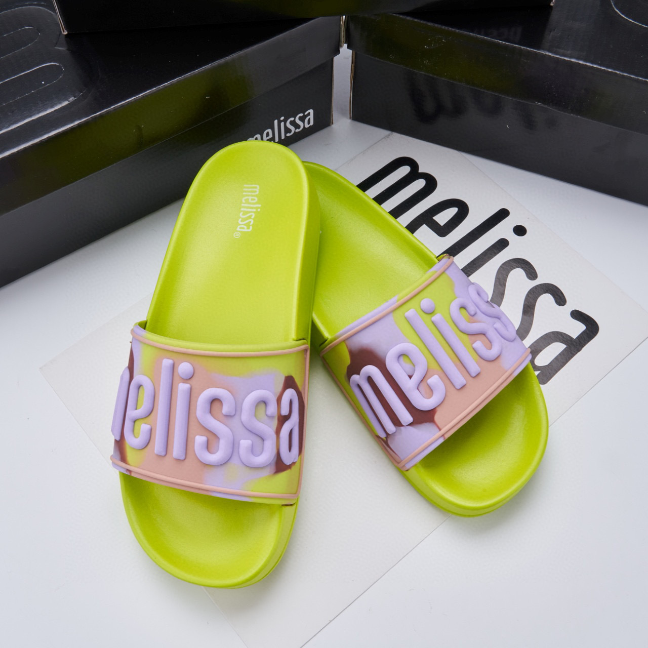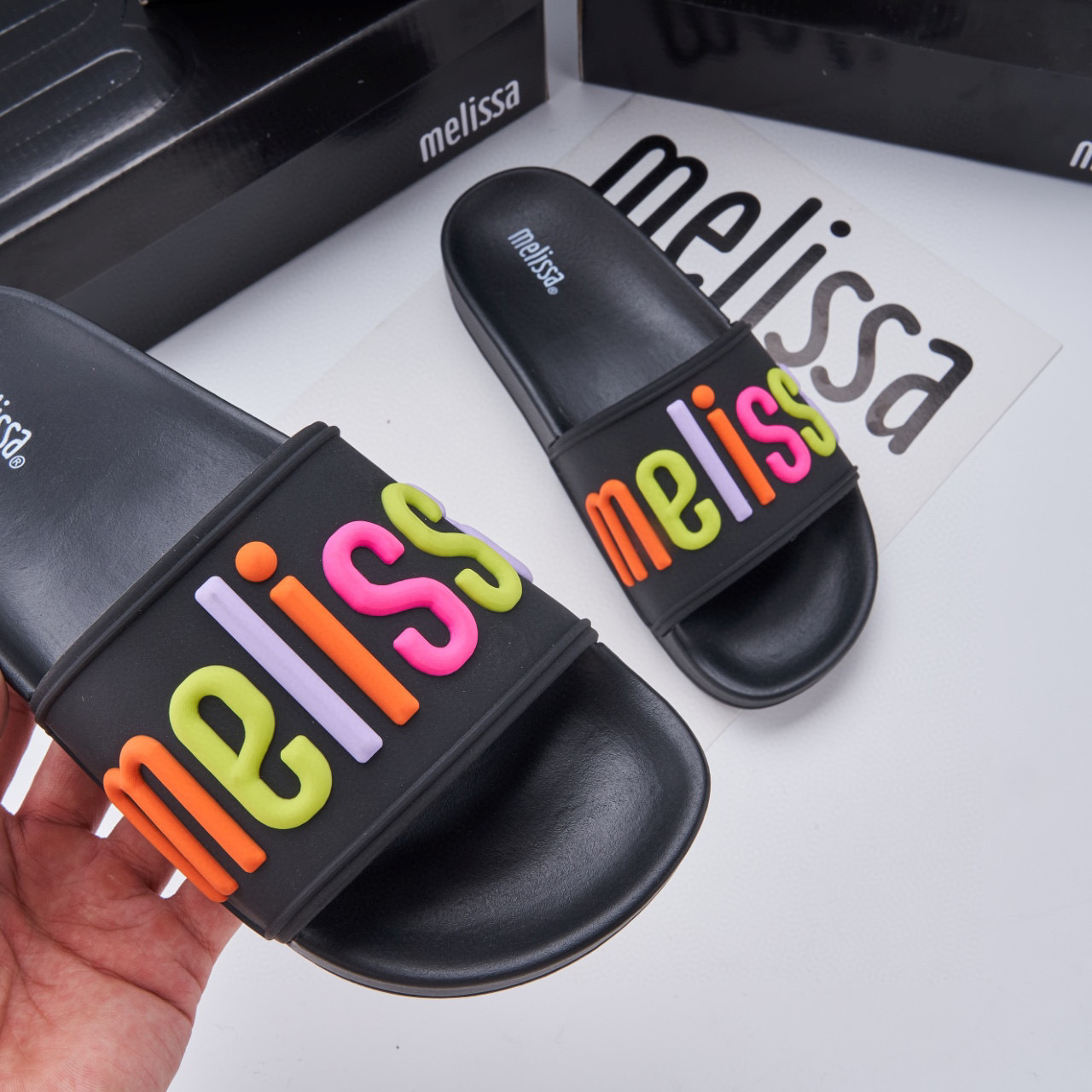 2024 멜리사 멜리사 두꺼운 밑바닥 미끄럼 방지 방수 캐주얼 슬라이드 m 외부 착용 컬러 레터 슬리퍼스토어 가기