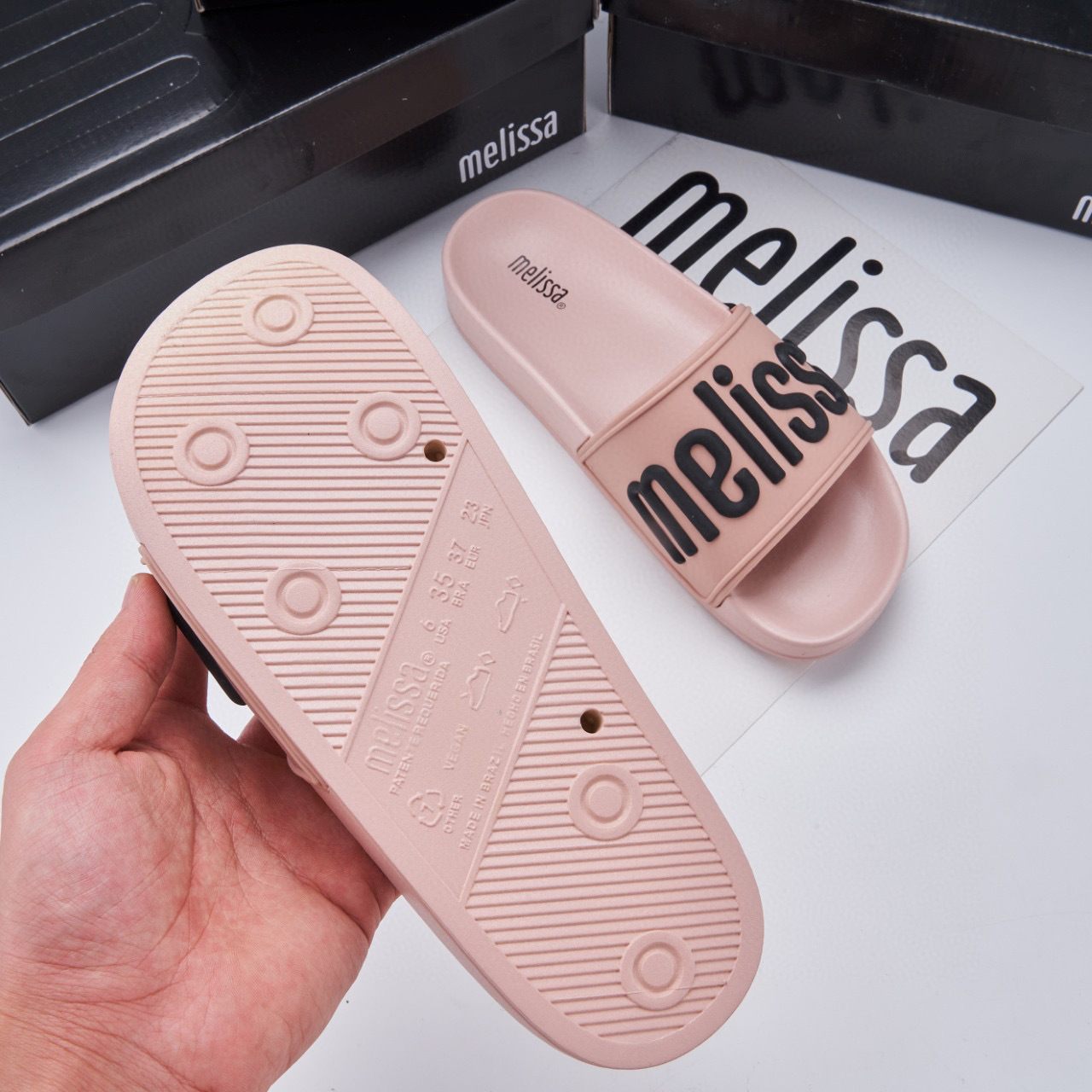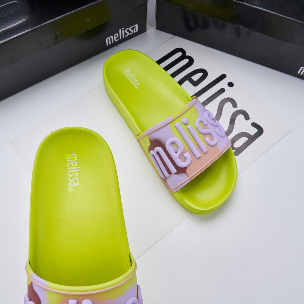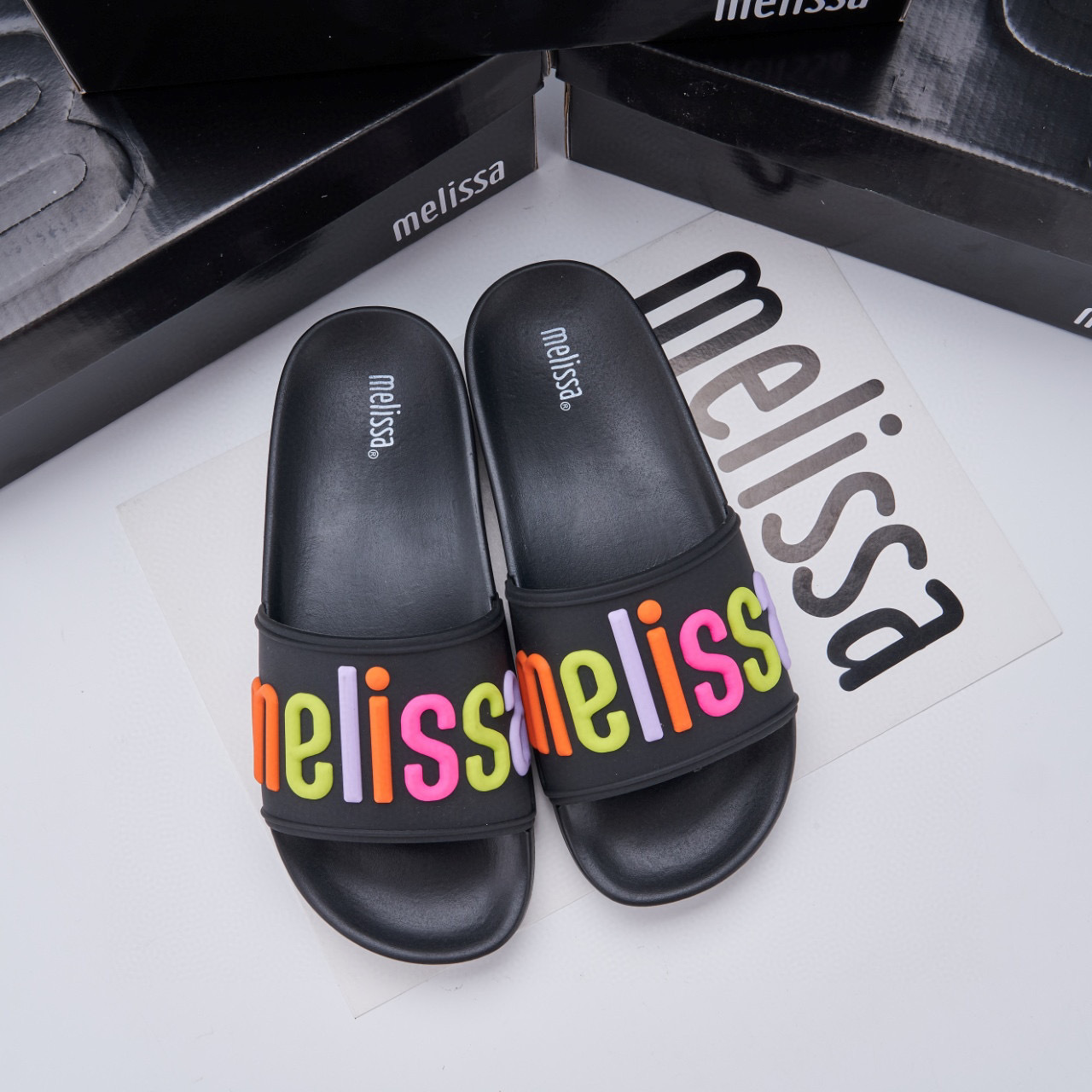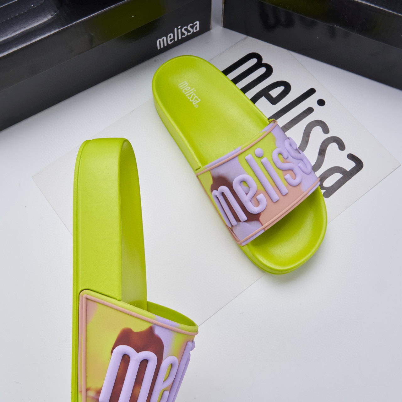 2024 멜리사 멜리사 두꺼운 밑바닥 미끄럼 방지 방수 캐주얼 슬라이드 m 외부 착용 컬러 레터 슬리퍼스토어 가기