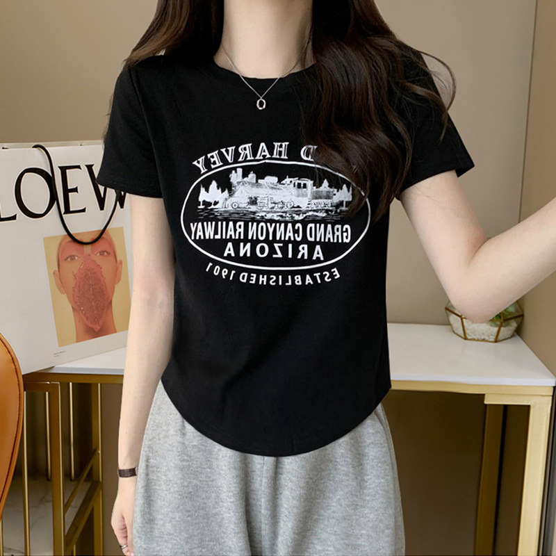 국경 간 동남아시아 여름 새로운 블랙 반팔 티셔츠 여성용 곡선 바닥 둥근 목 어깨 티셔츠 탑스토어 가기