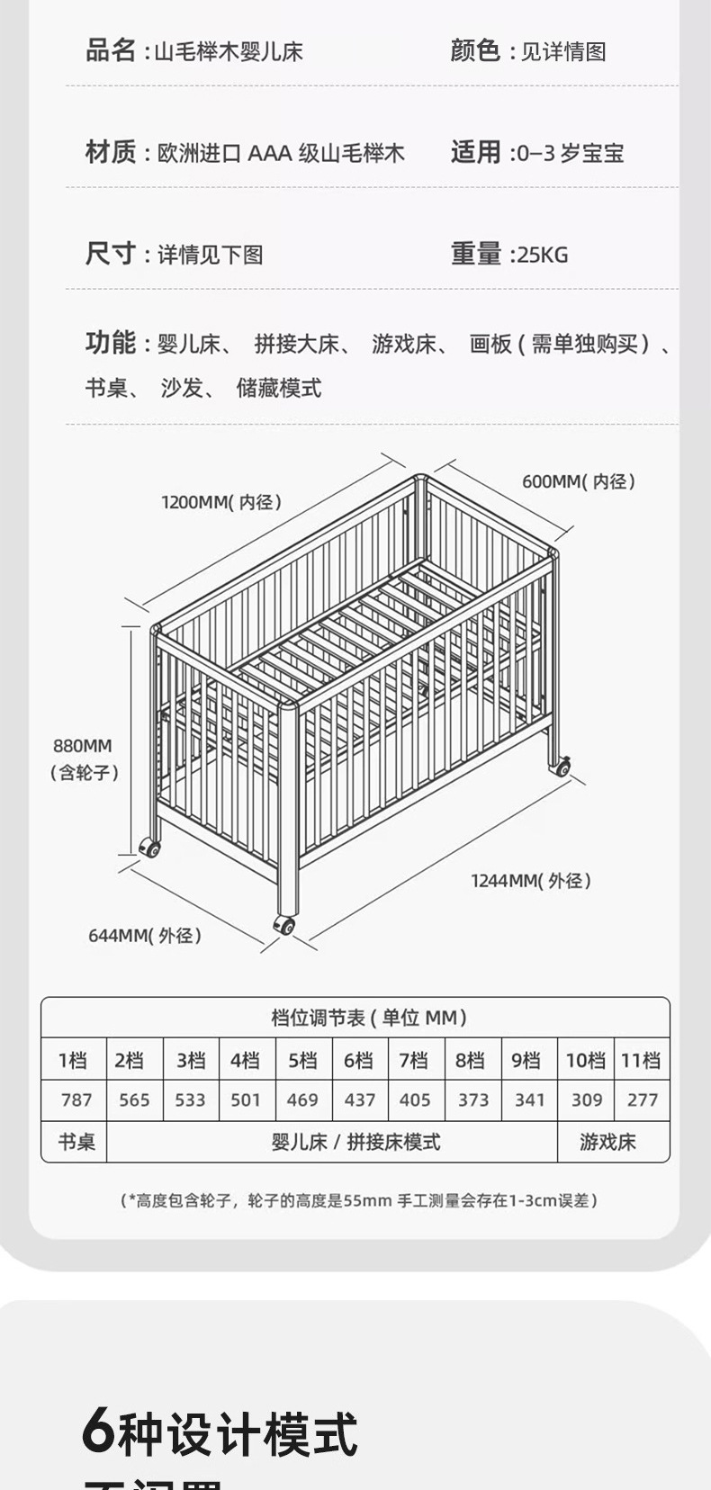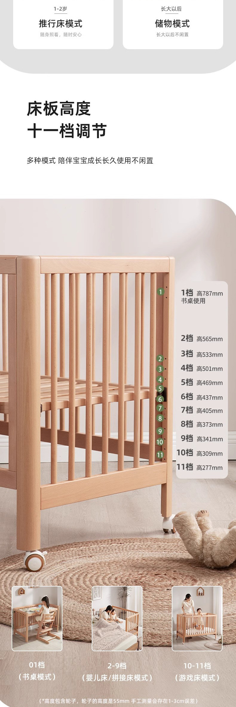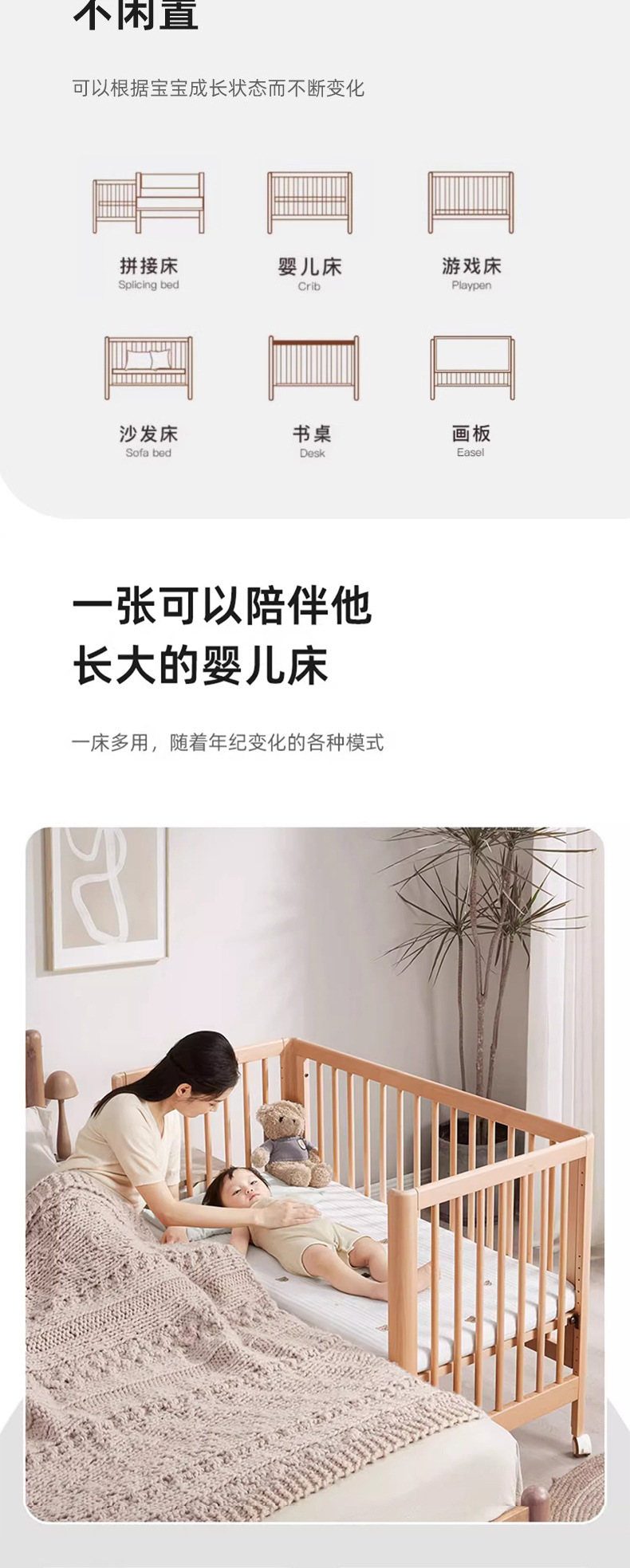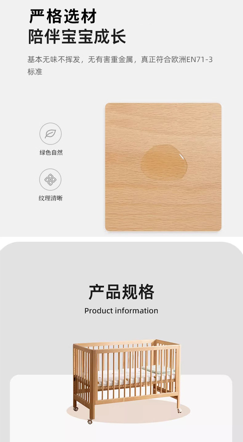 너도밤 나무 침대 접합 침대 이동식 침대 단단한 나무 다기능 신생아 아기 침대 조절 어린이 침대