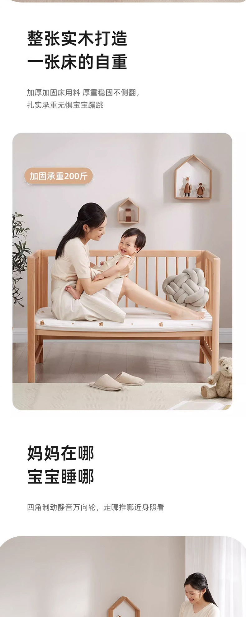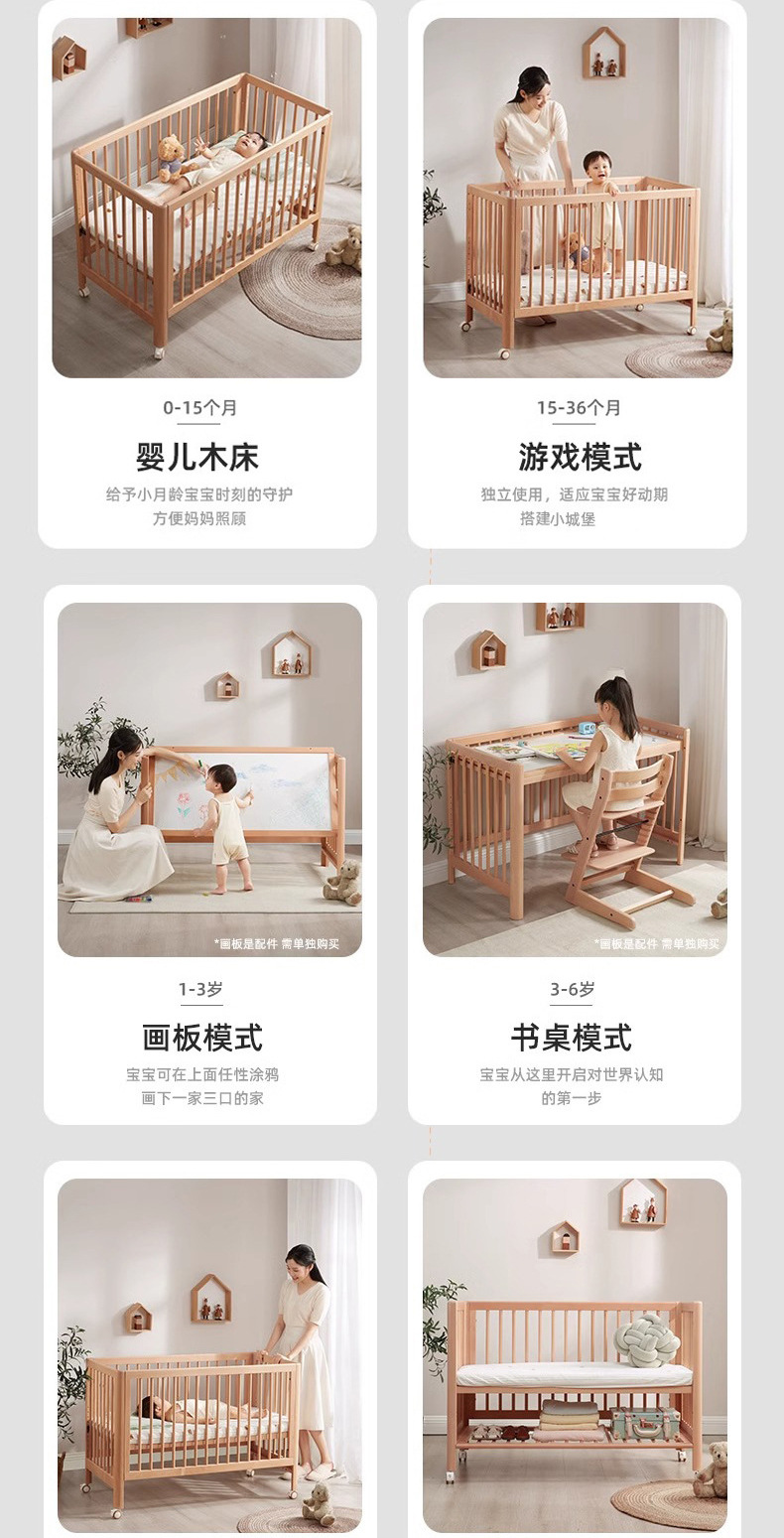 너도밤 나무 침대 접합 침대 이동식 침대 단단한 나무 다기능 신생아 아기 침대 조절 어린이 침대스토어 가기