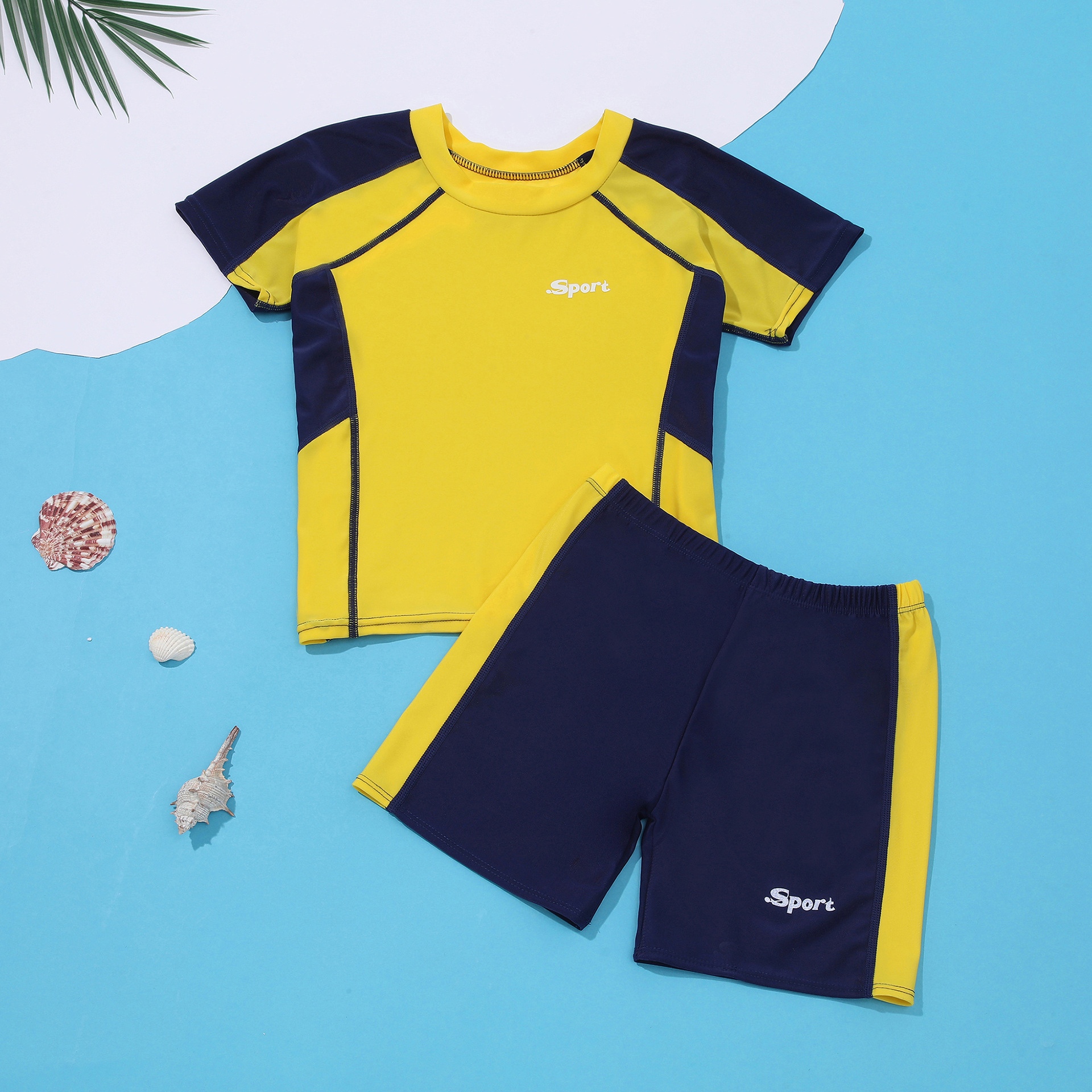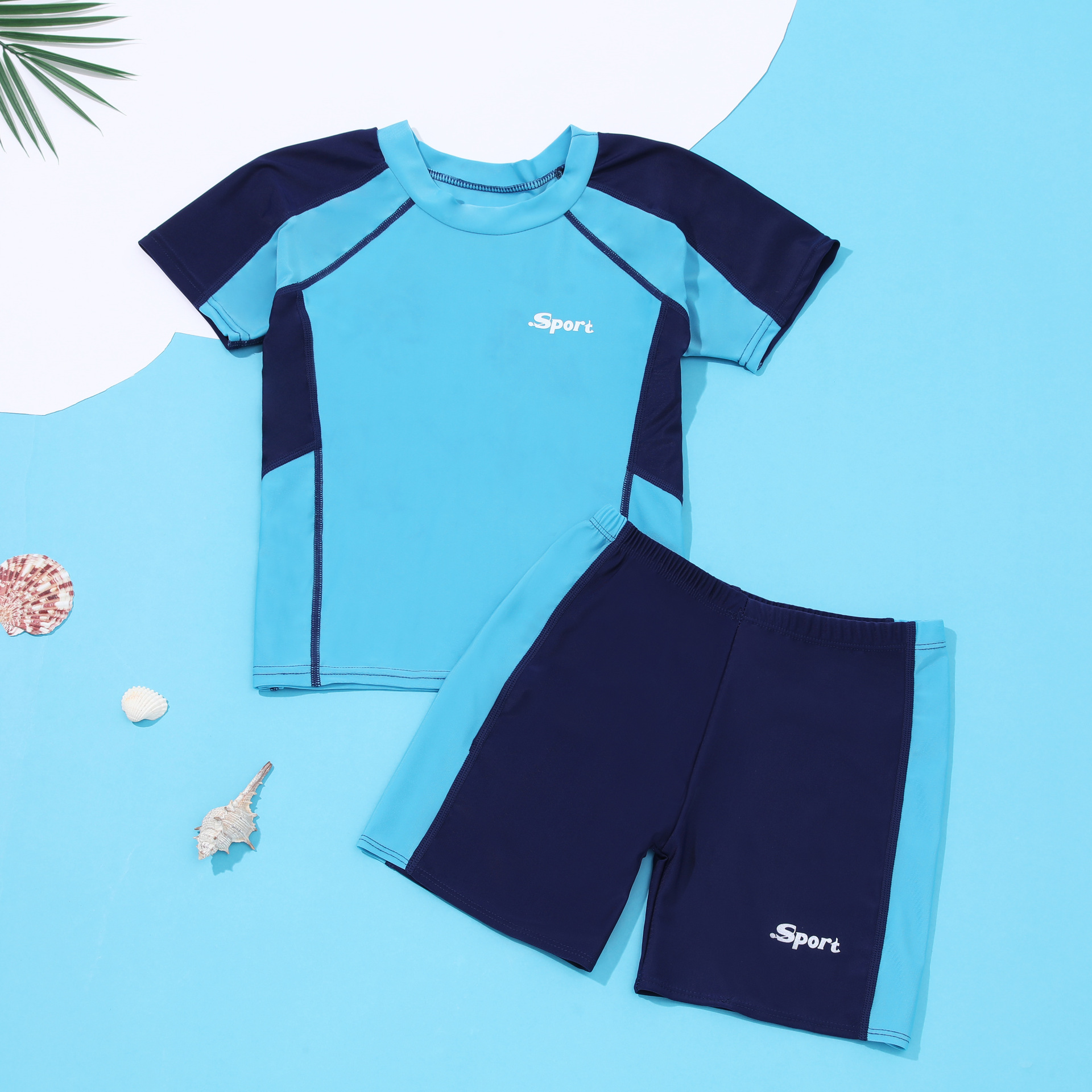어린이 수영복 세트 소년 분할 속건 수영복 야외 해변 수영 트렁크 워터 파크 온천 수영복