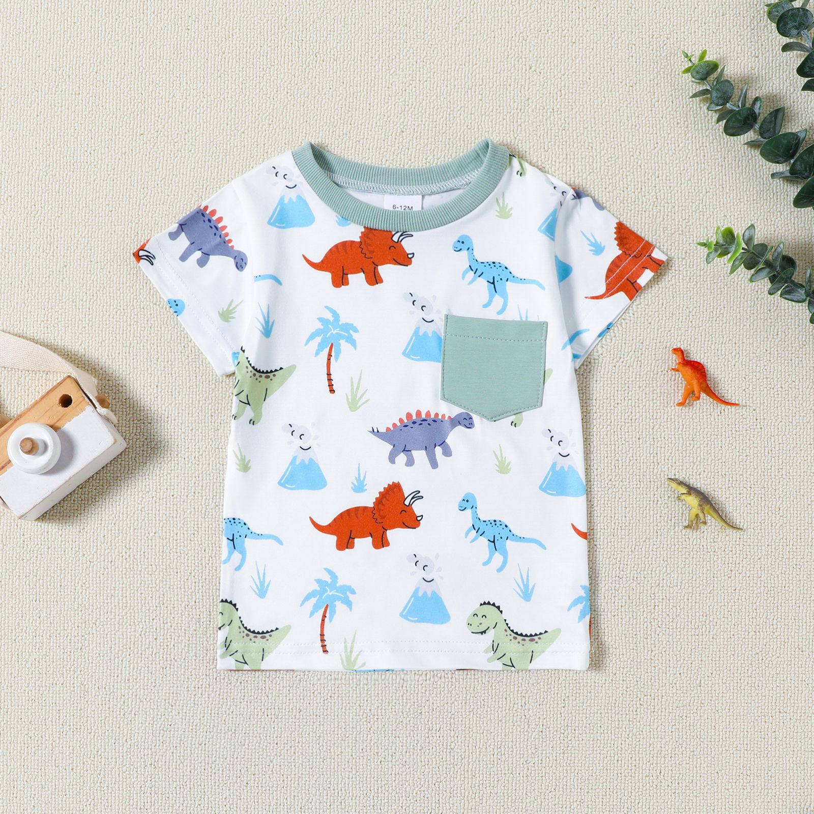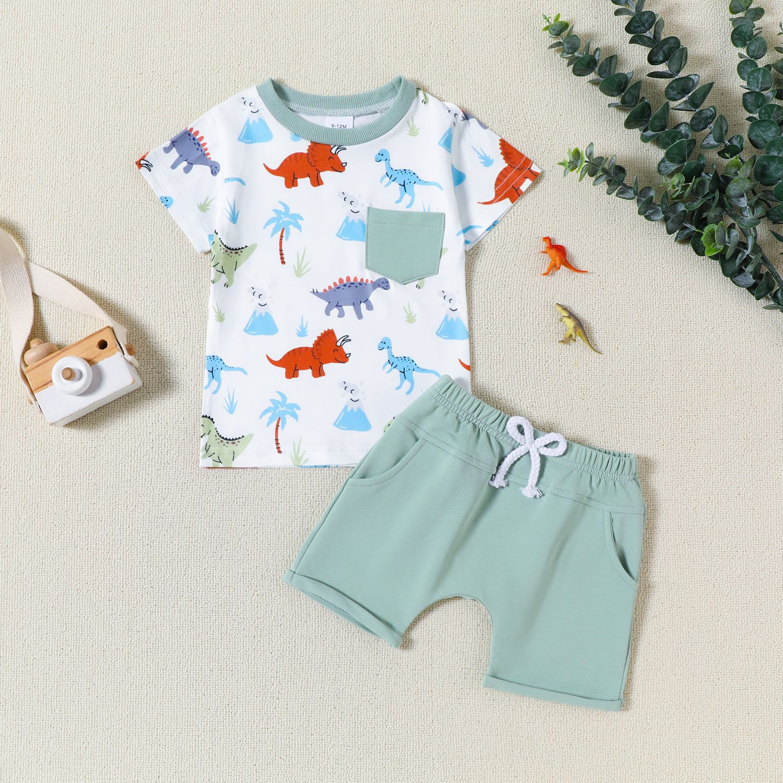 2024 크로스 국경 새로운 아기 아기 공룡 트럭 인쇄 짧은 소매 포켓 상단 반바지 소년 여름 세트스토어 가기