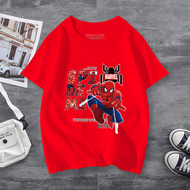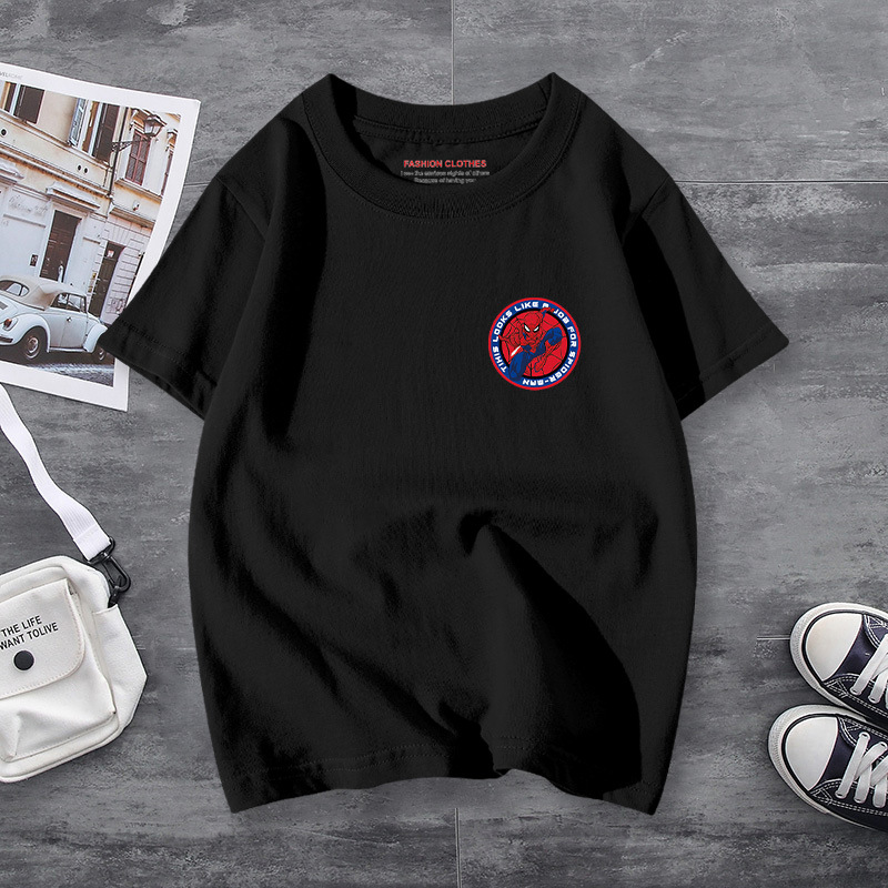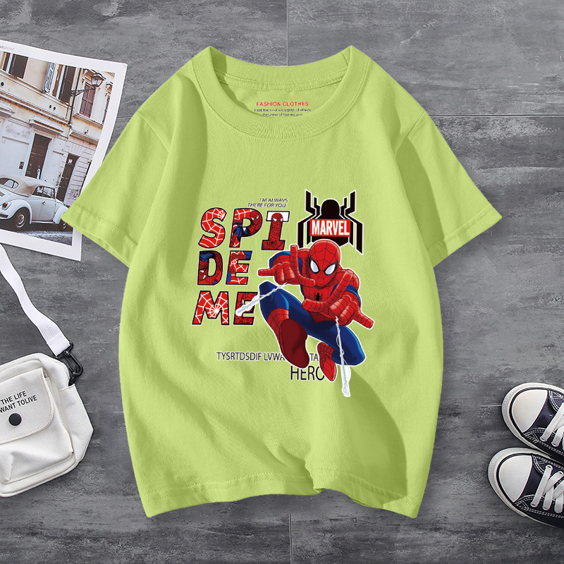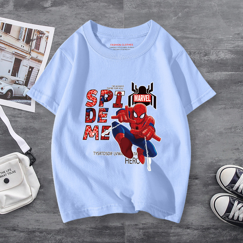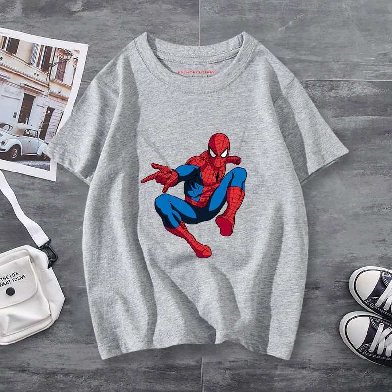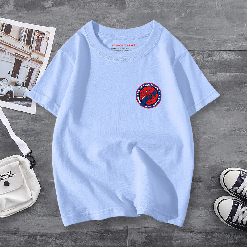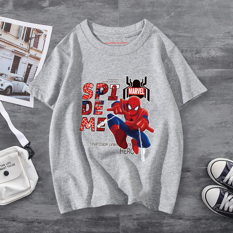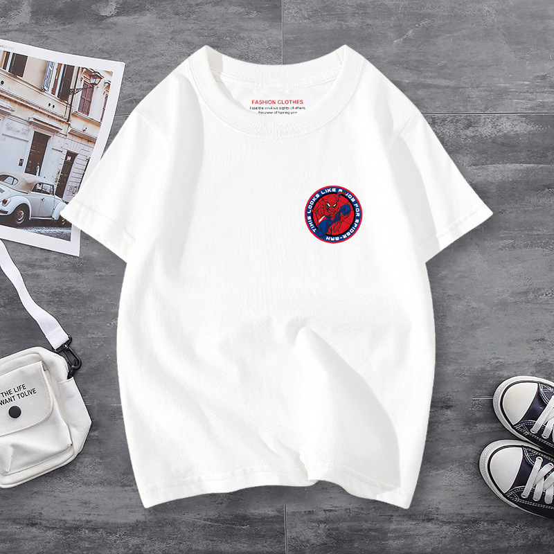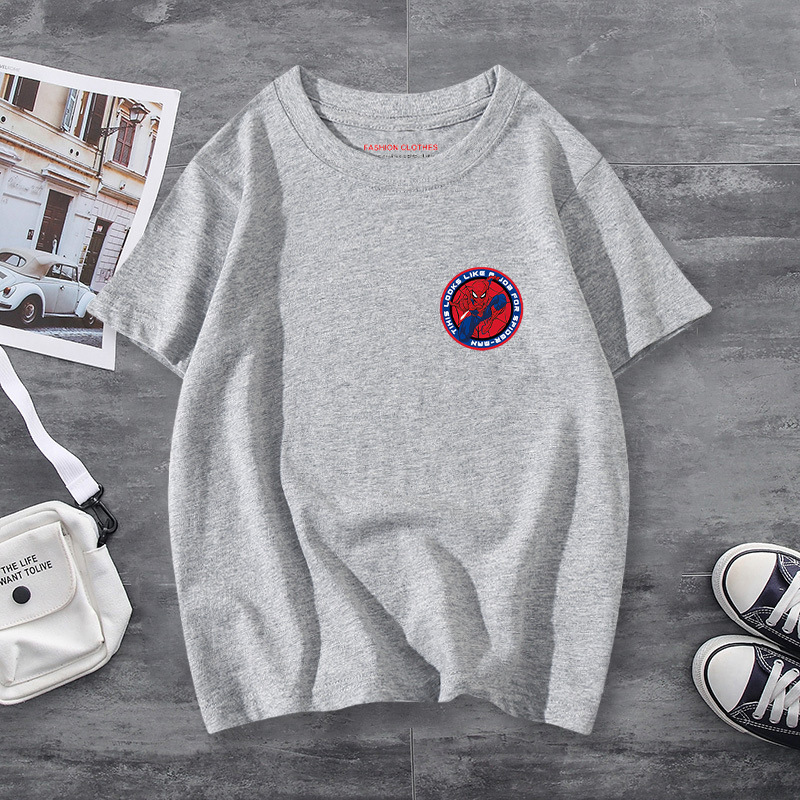 남학생 반소매 티셔츠 얇은 탑 스파이더 맨 반소매 여름 어린이 티셔츠 남자 여름 아기 중 큰 어린이 패션