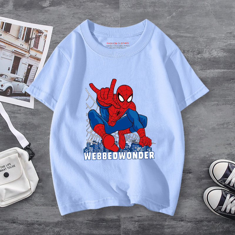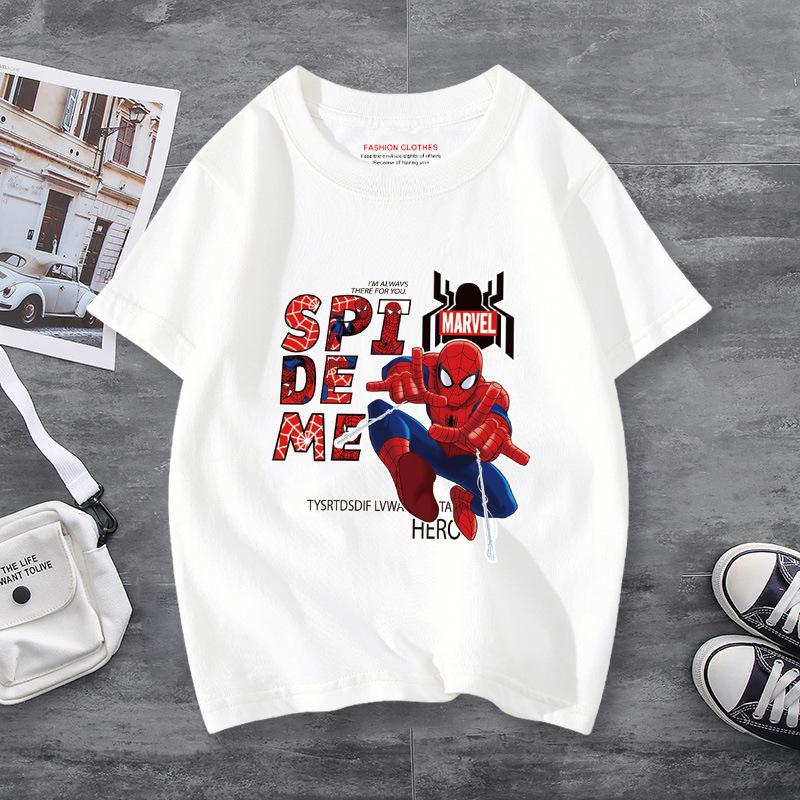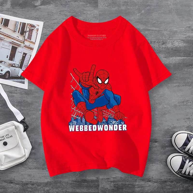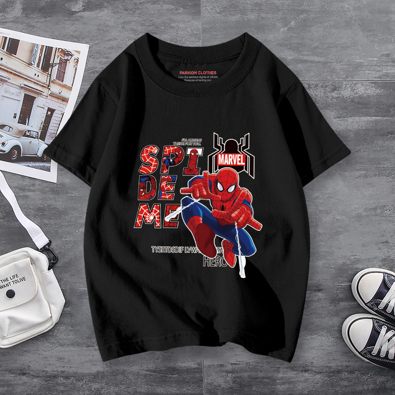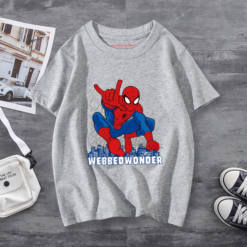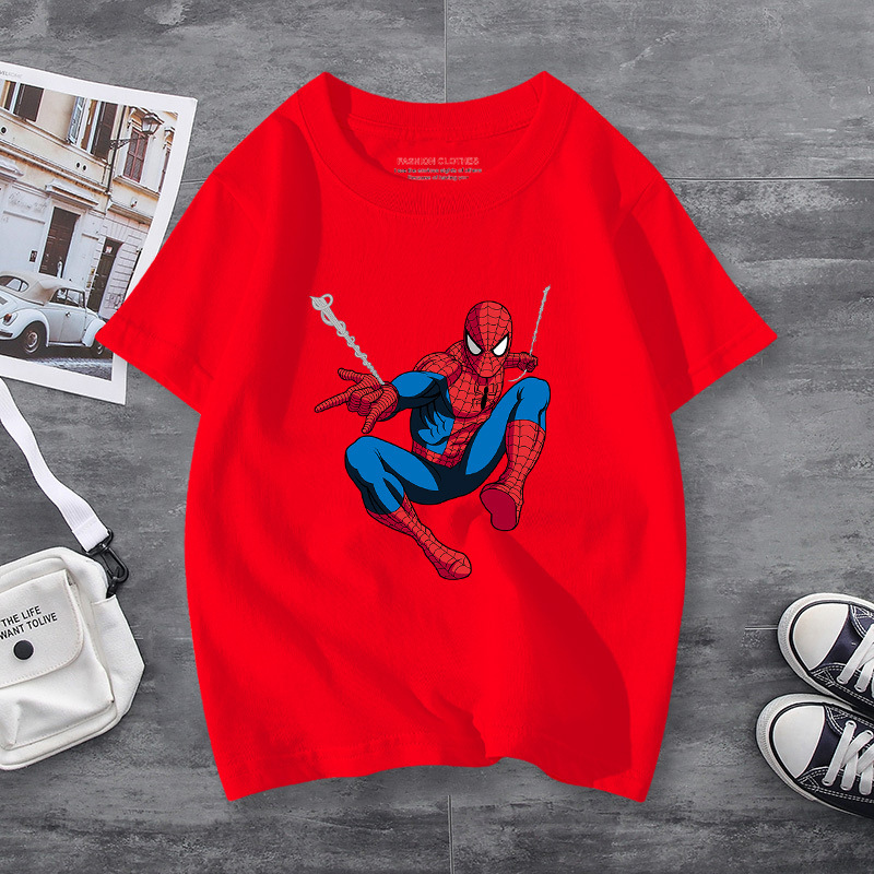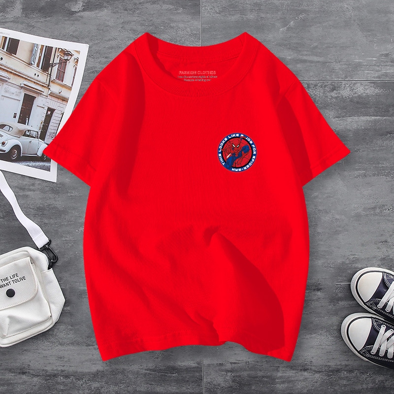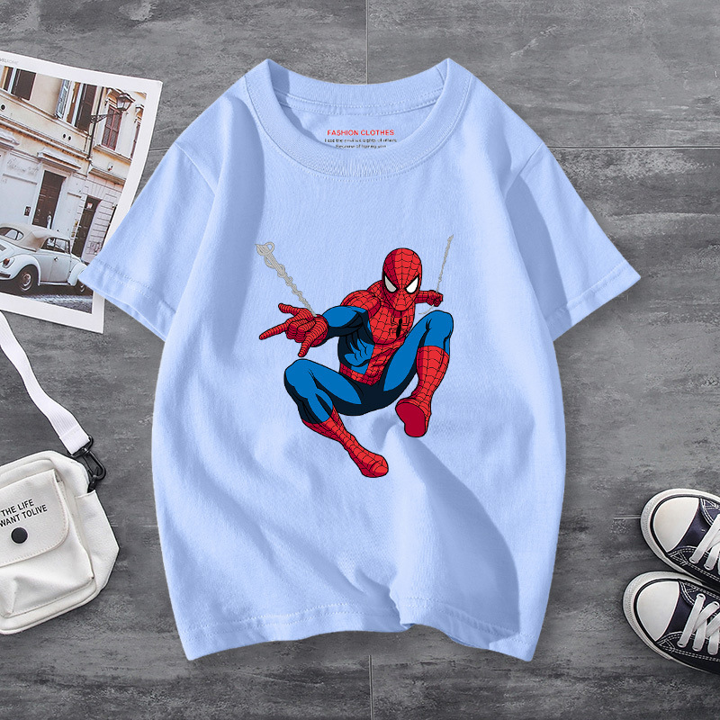 남학생 반소매 티셔츠 얇은 탑 스파이더 맨 반소매 여름 어린이 티셔츠 남자 여름 아기 중 큰 어린이 패션
