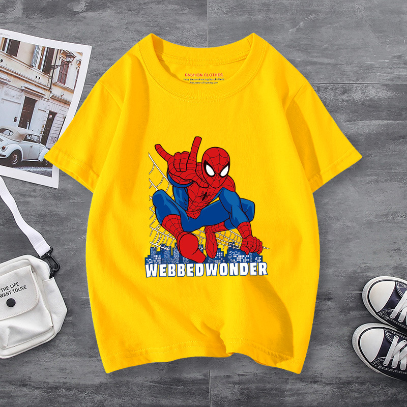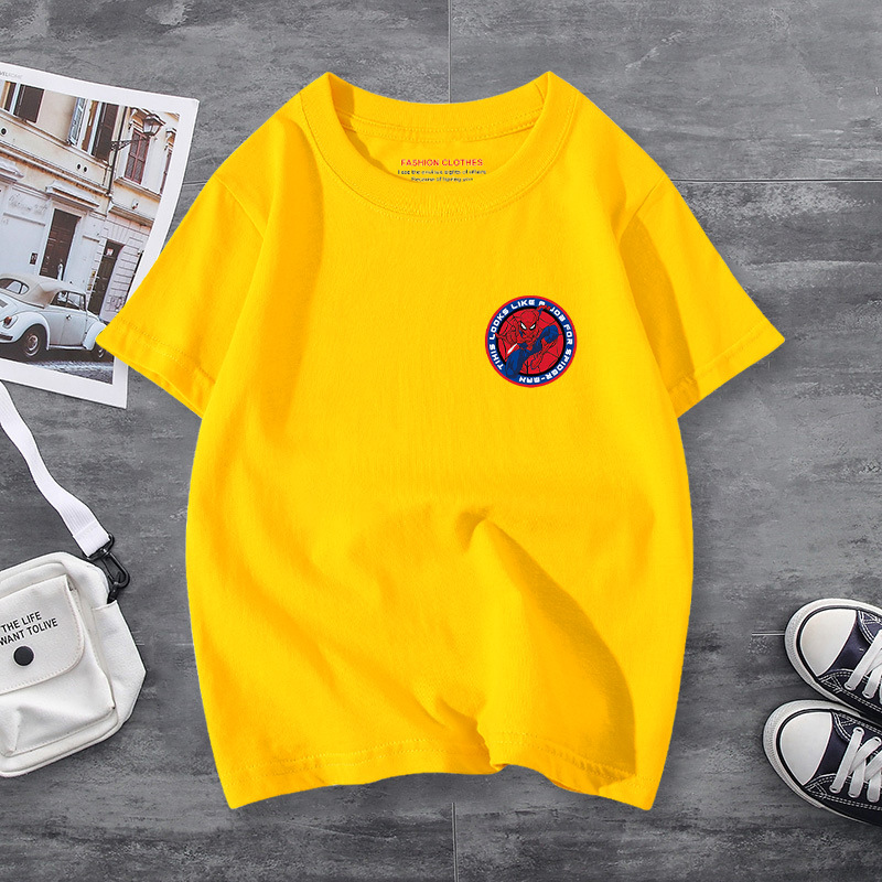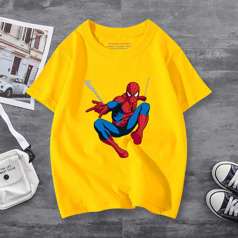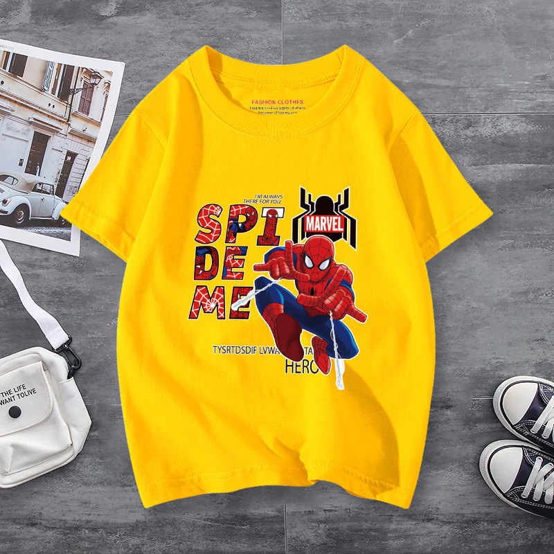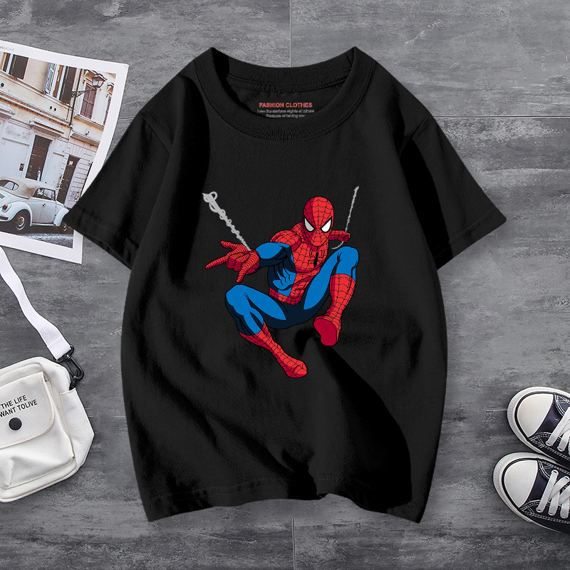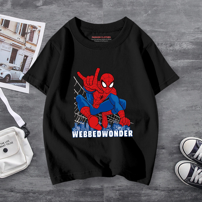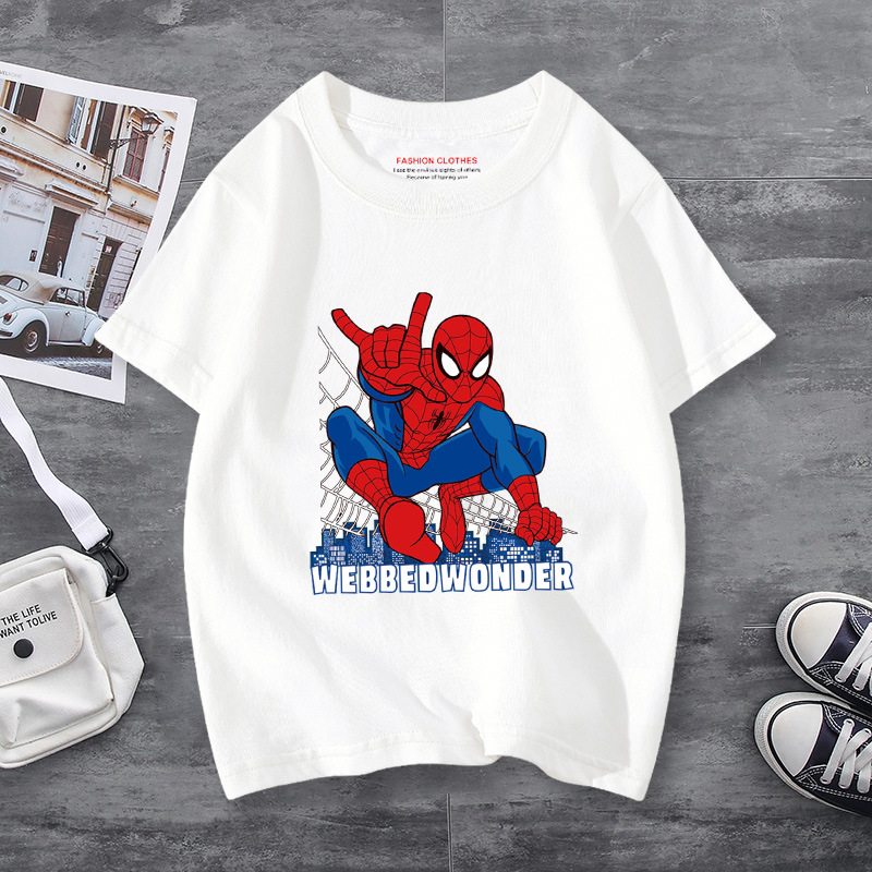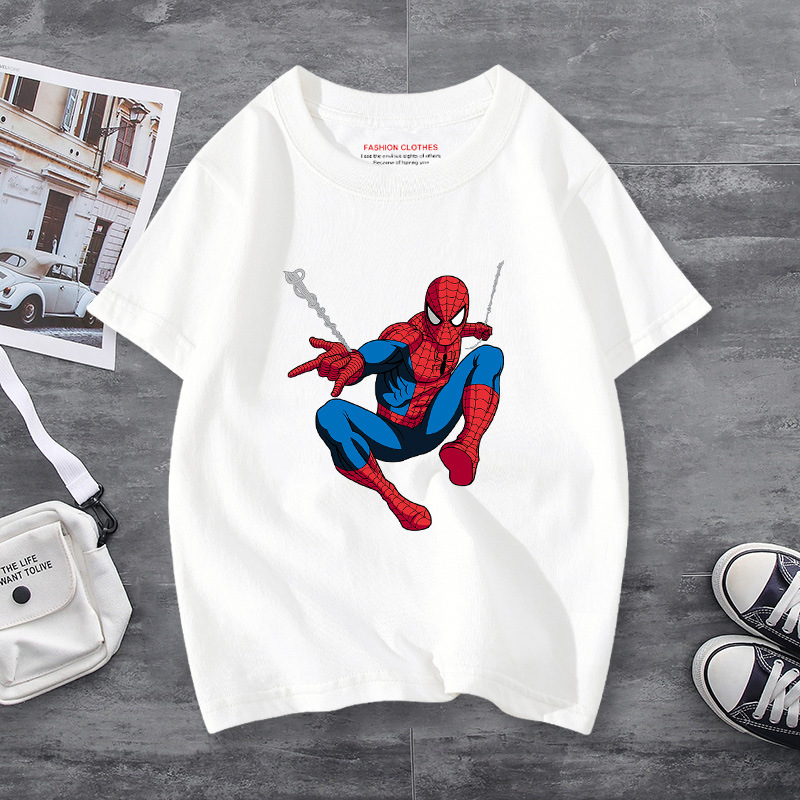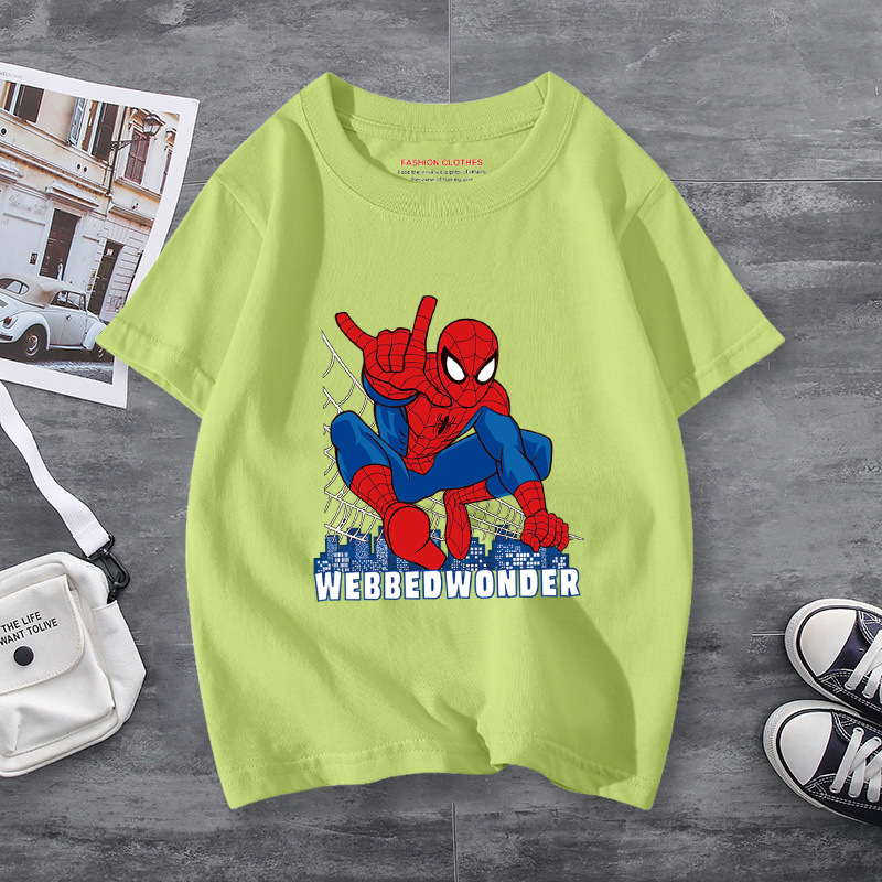 남학생 반소매 티셔츠 얇은 탑 스파이더 맨 반소매 여름 어린이 티셔츠 남자 여름 아기 중 큰 어린이 패션