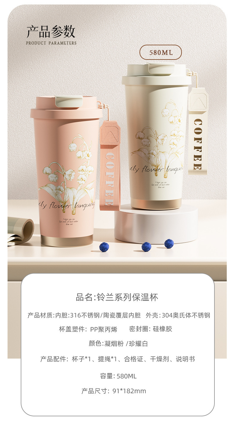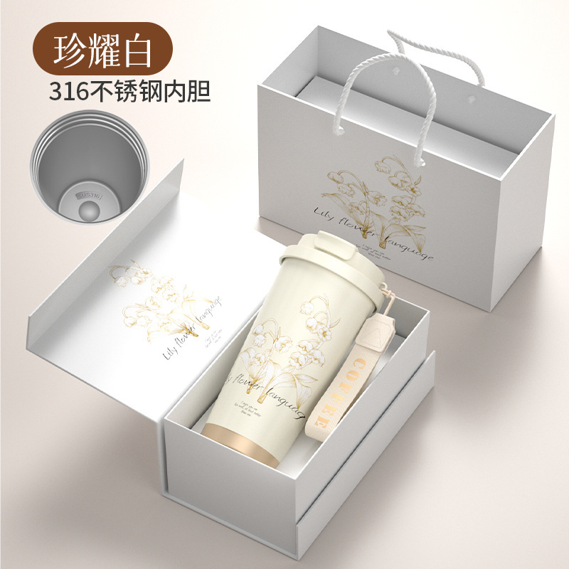 3월 8일 여성의 날 선물 세라믹 커피잔 선물세트 스테인리스 보온컵 여성용 316 은방울꽃 비즈니스컵