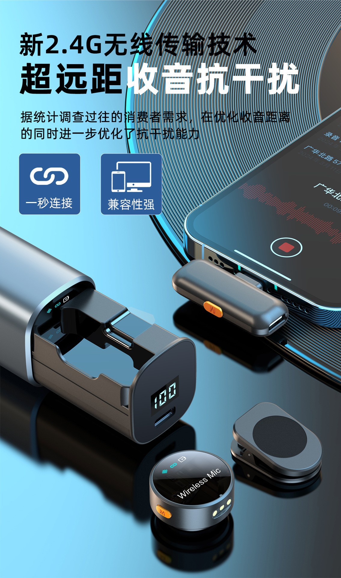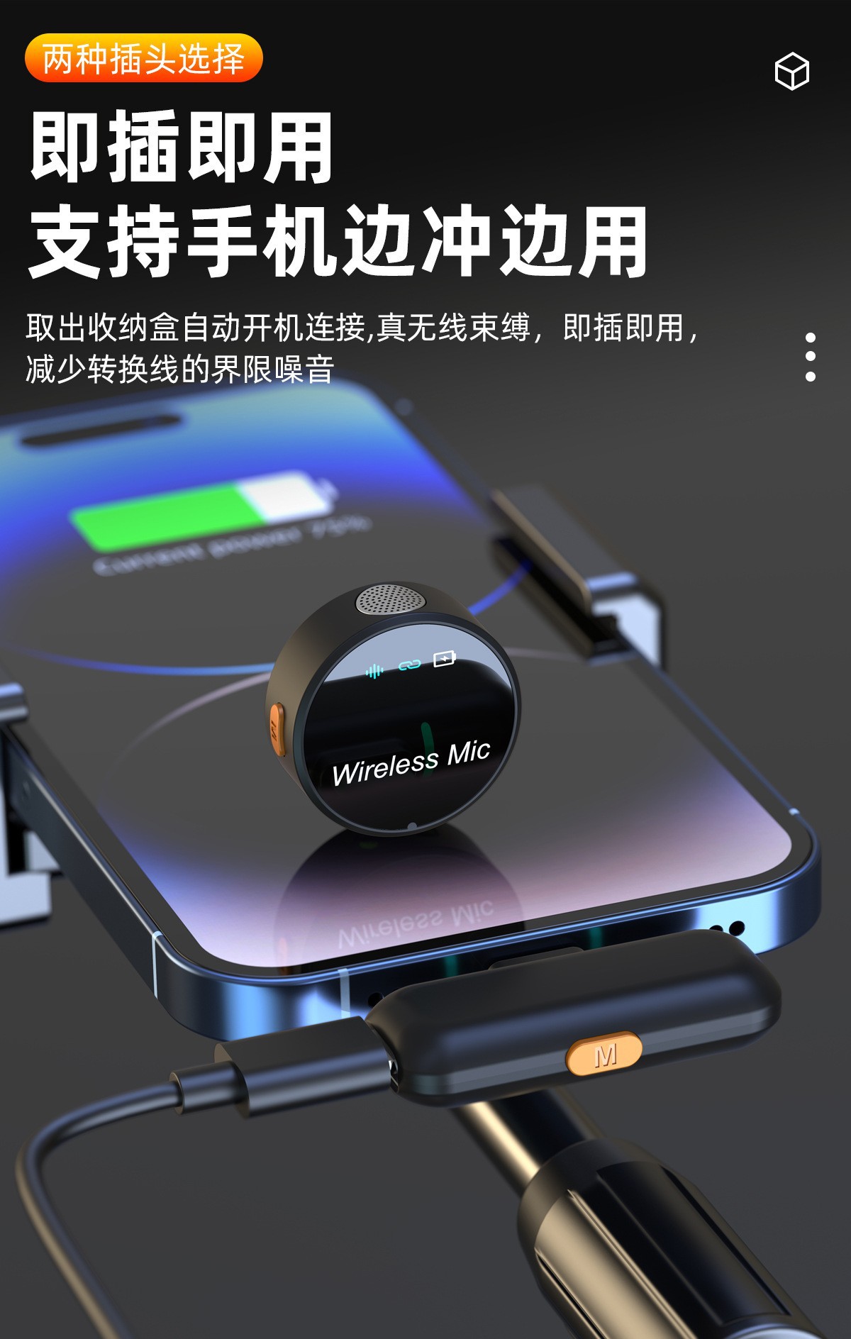 핫한 크로스보더 무선 라발리에 마이크, 야외 휴대폰 라이브 방송용 소음 감소 마이크, 라발리에 타입스토어 가기
