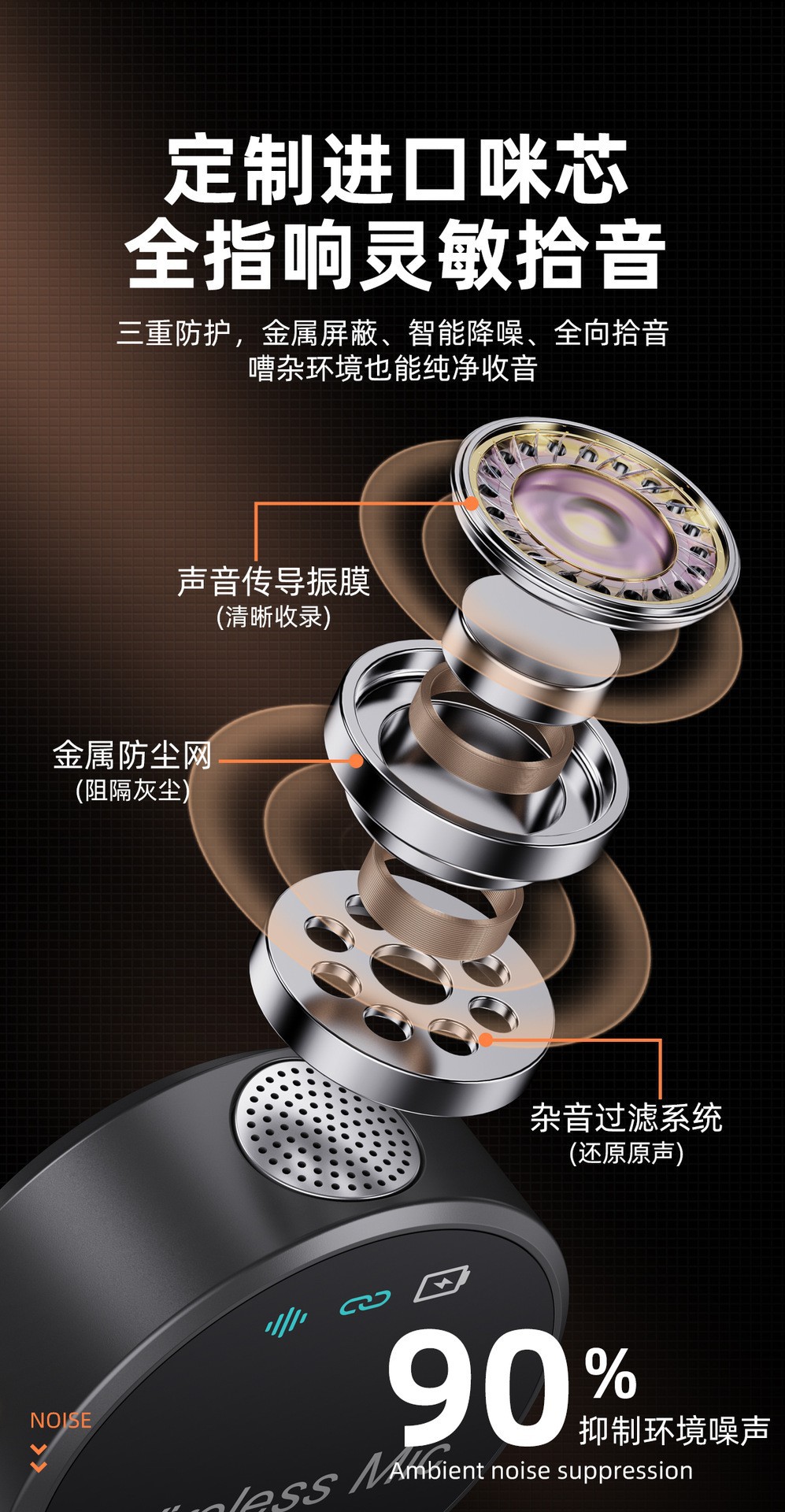 핫한 크로스보더 무선 라발리에 마이크, 야외 휴대폰 라이브 방송용 소음 감소 마이크, 라발리에 타입