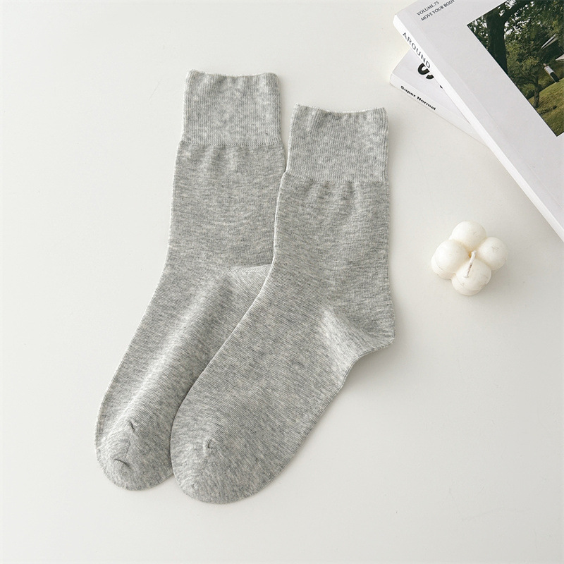 슈퍼 높은 레포 비율 양말 안티-필링 솔리드 컬러 본리스 스택 양말 회색 중간 면 양말 여성의 봄과 여름 얇은