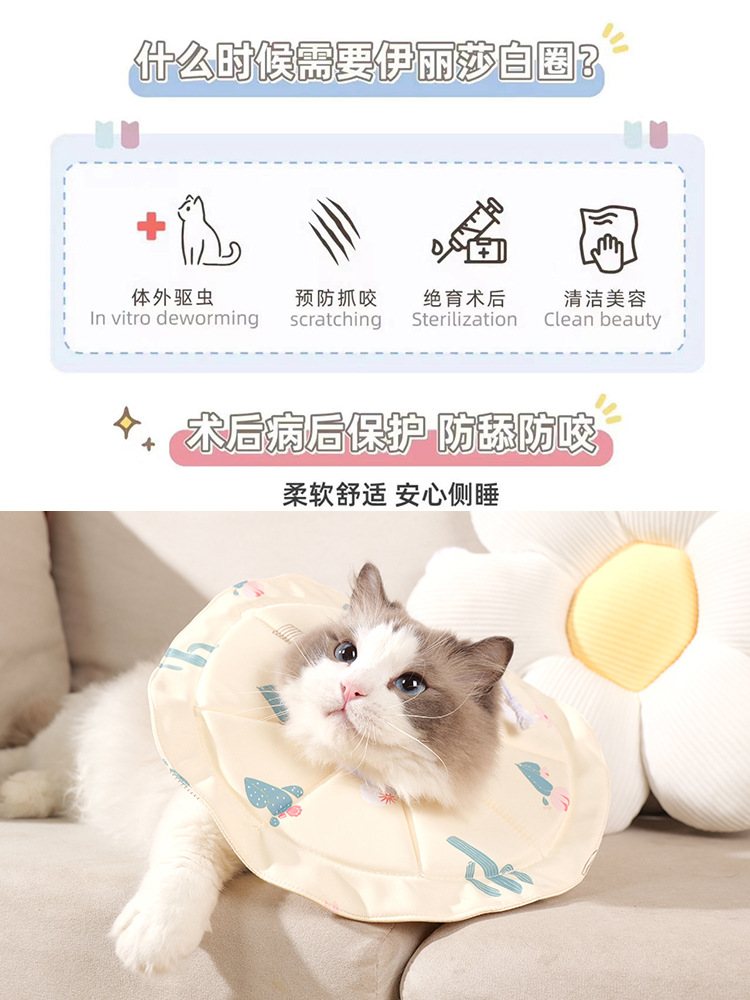 엘리자베스 서클 고양이 개 얇은 목 커버 안티 핥기 안티 긁힘 애완 동물 스카프 수치심 원형 고양이 살균 용품스토어 가기
